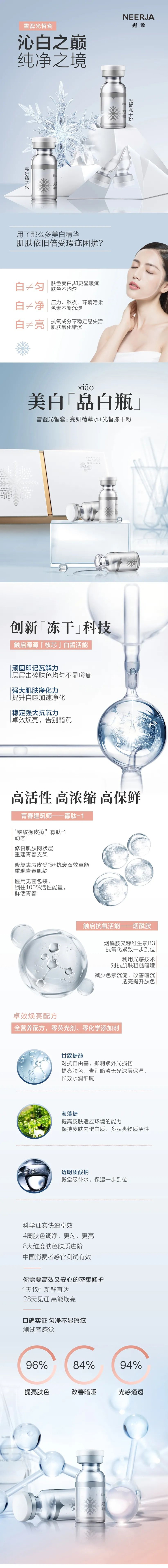 妮致雪瓷光皙套新品晶透凝脂套皛白瓶(亮妍精粹水+光皙冻干粉)7对