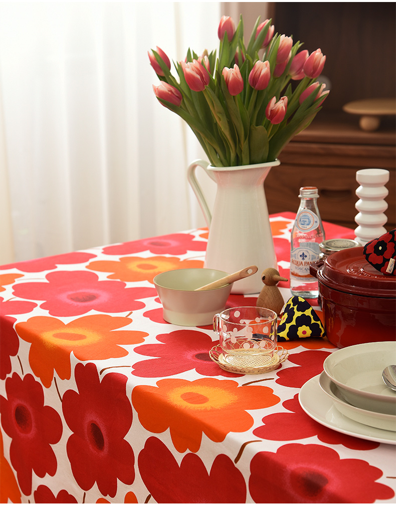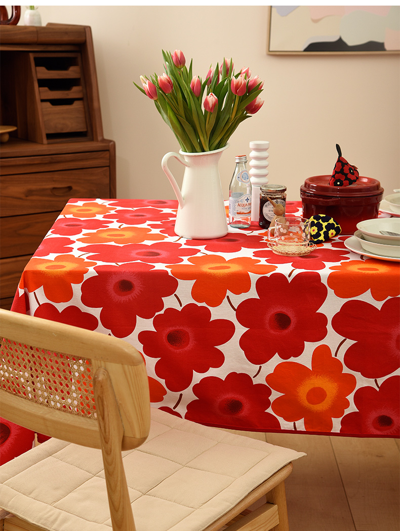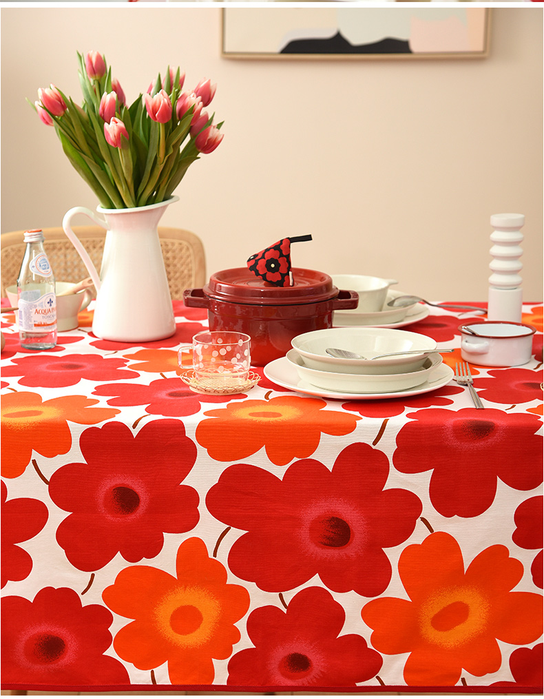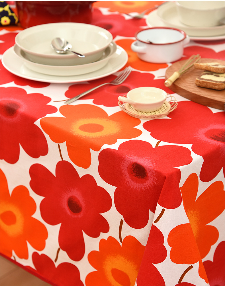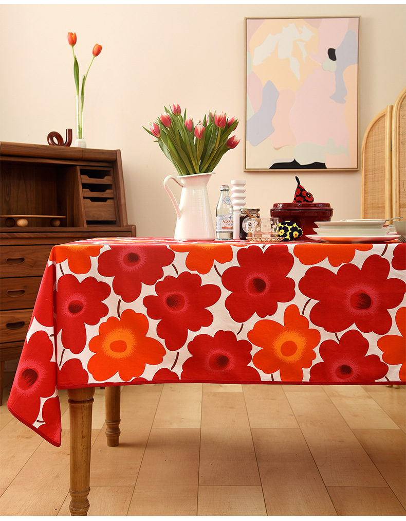 西柚红花朵桌布花卉桌布红色新年餐桌布