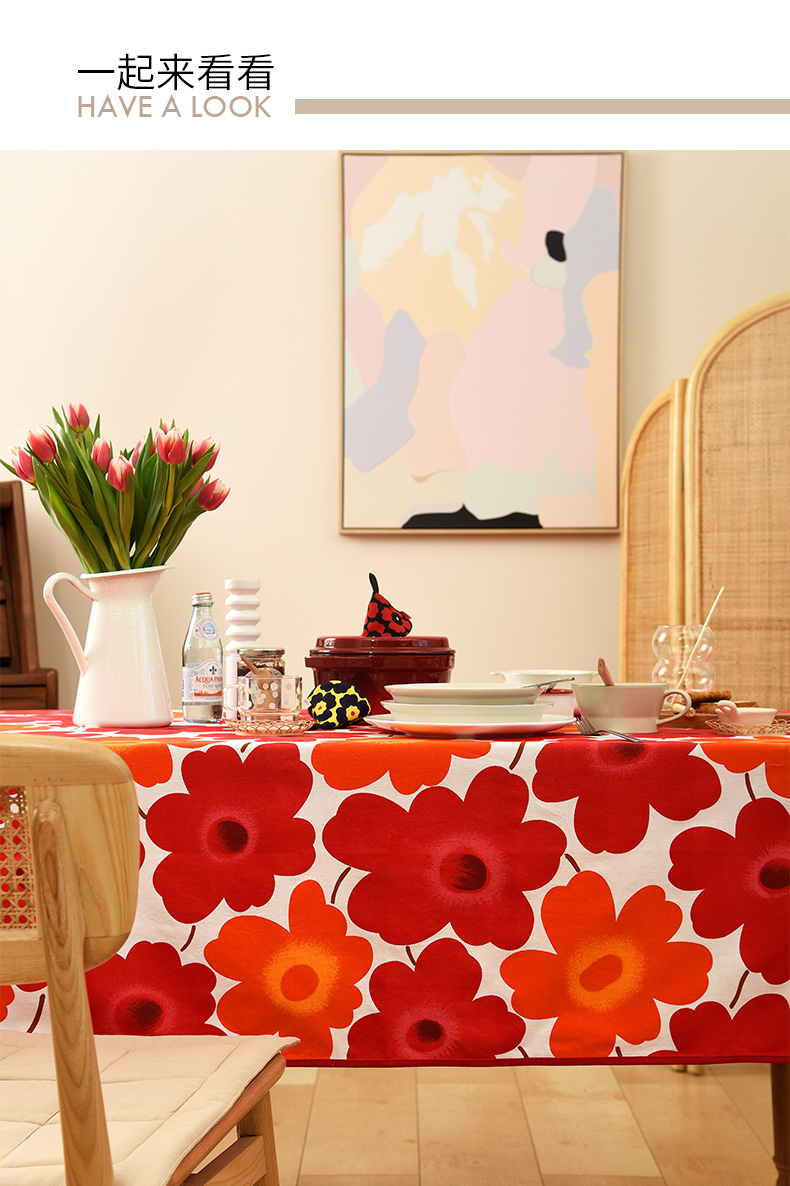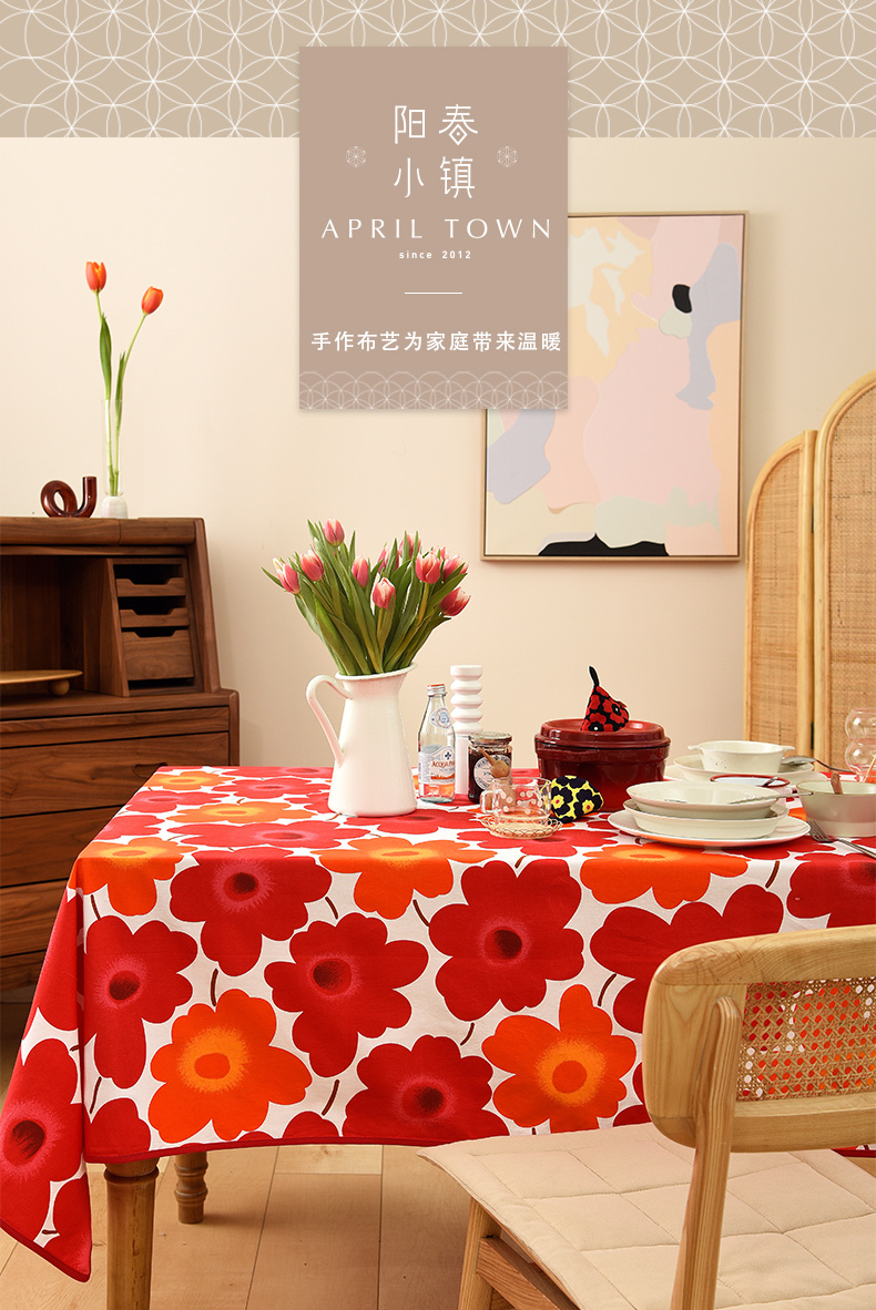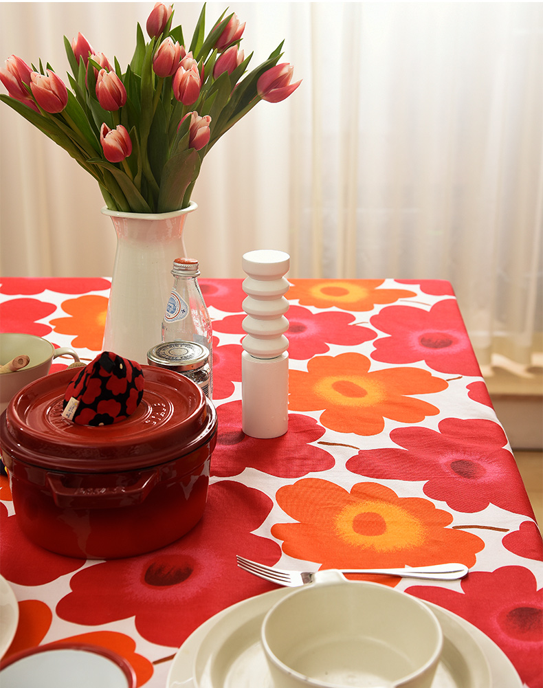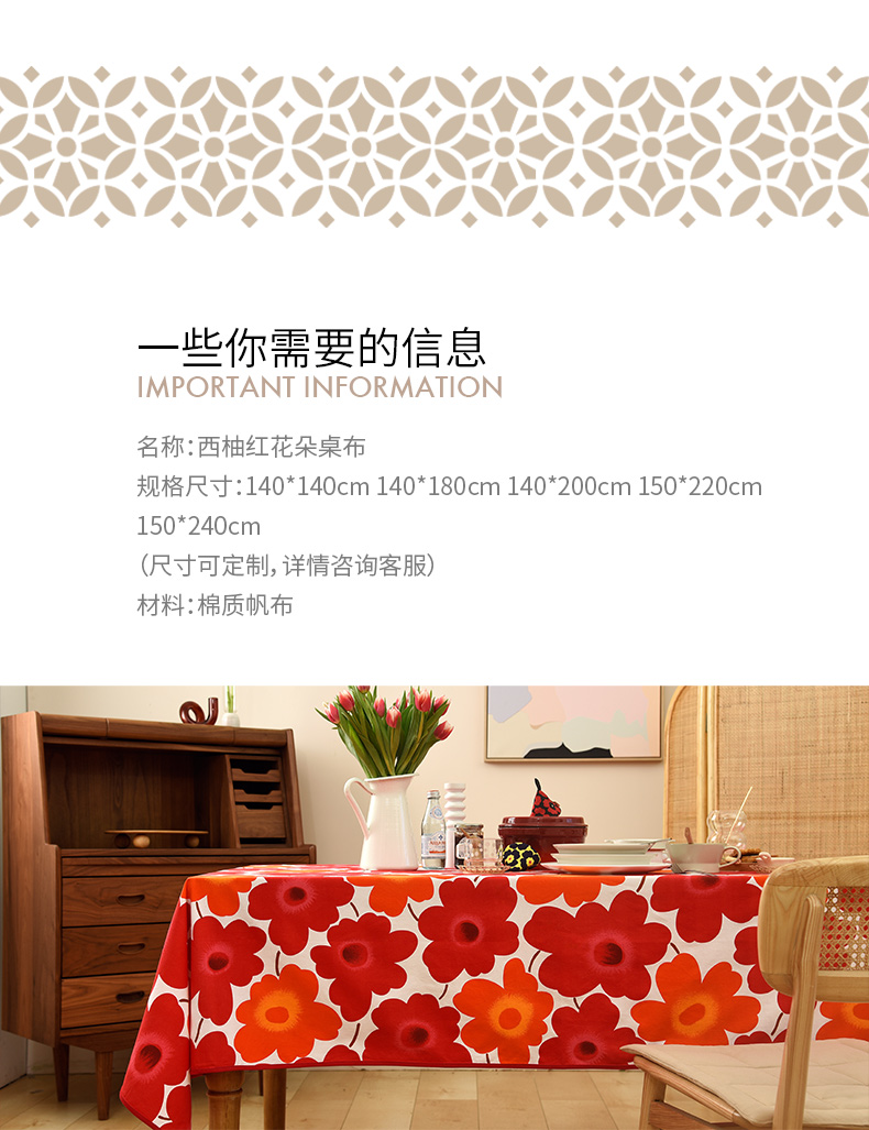 西柚红花朵桌布花卉桌布红色新年餐桌布