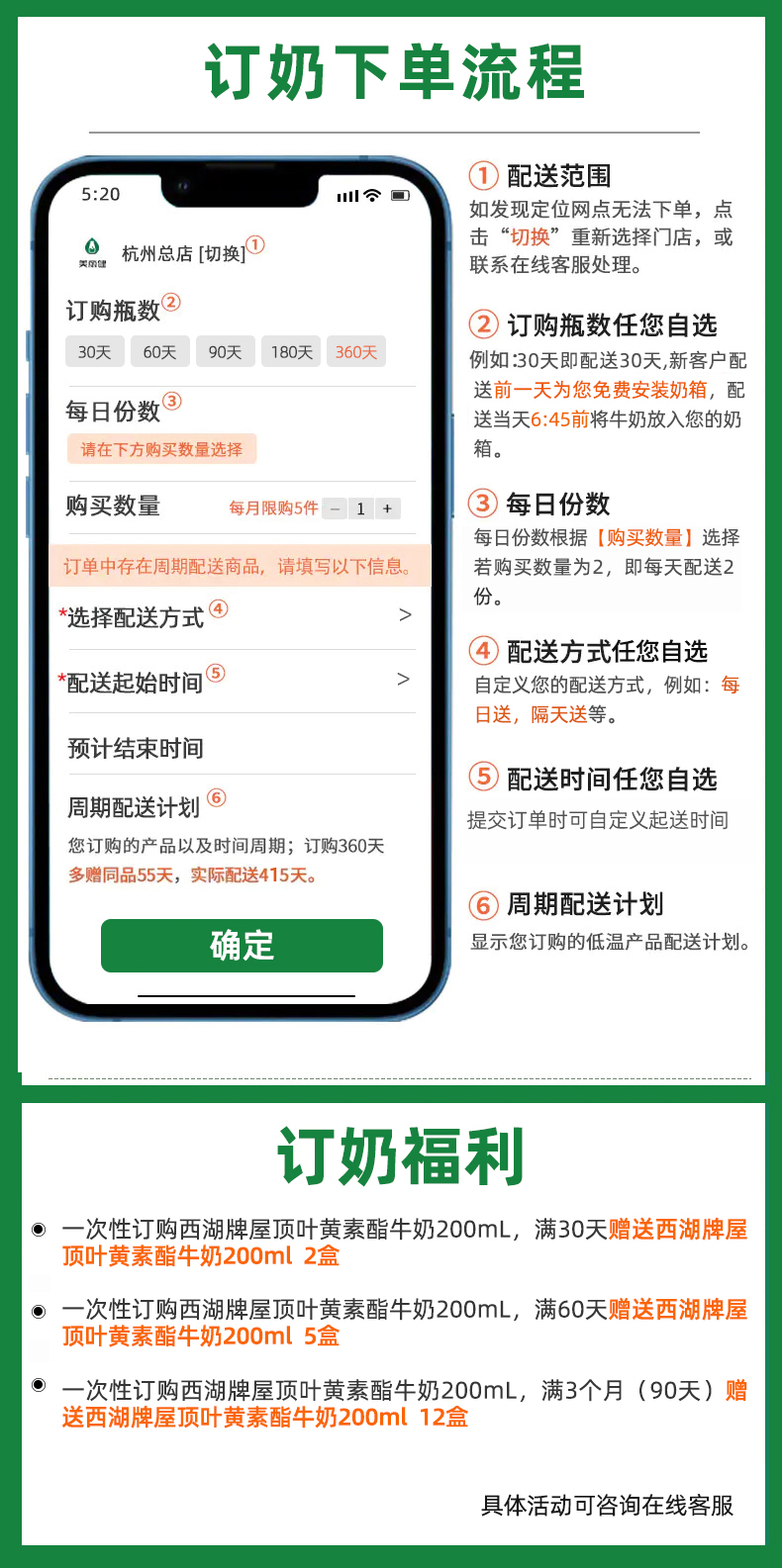 【预售付定】西湖牌屋顶叶黄素酯牛奶200ml(低温鲜奶,月套餐,每日配送)