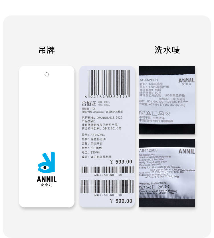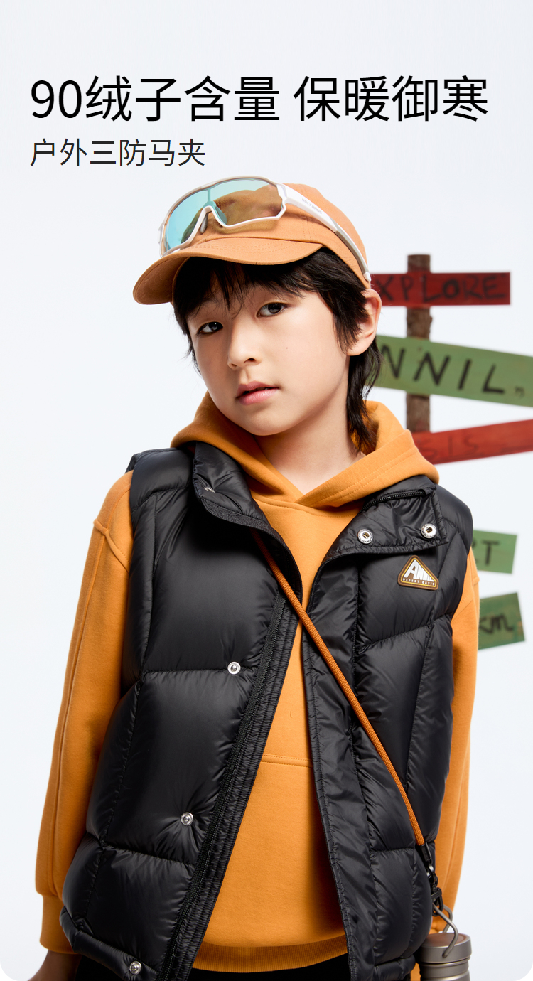 【御寒-5~5℃】男童户外三防羽绒马夹冬季新款安奈儿童装实体店同款AB442603