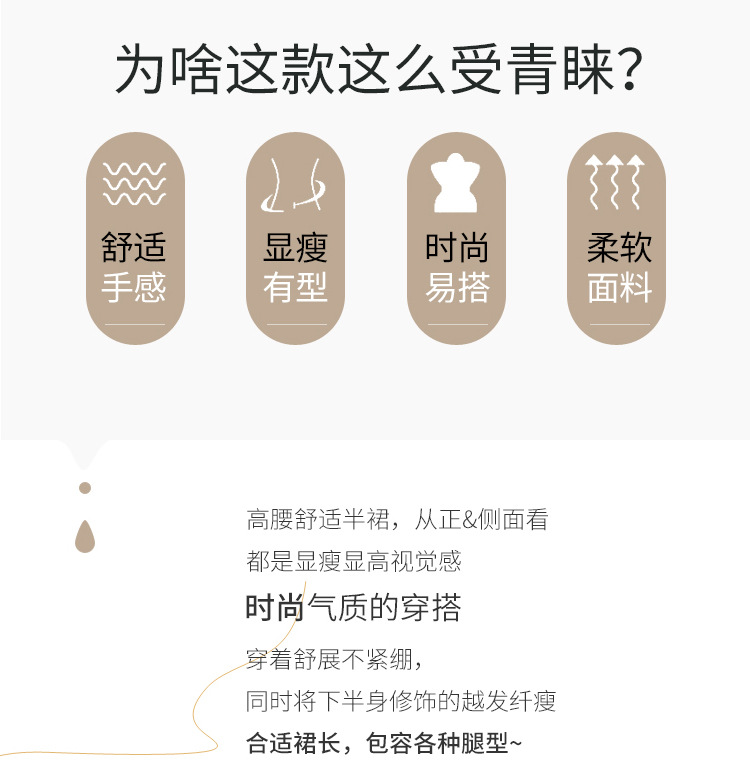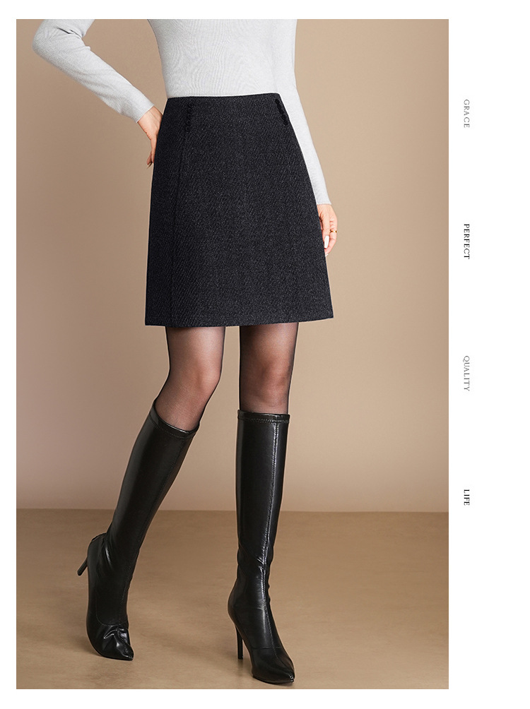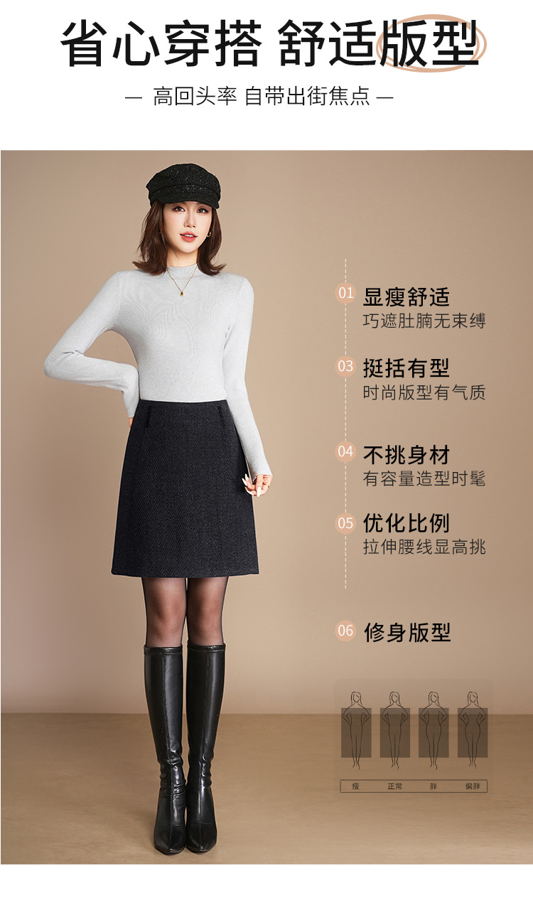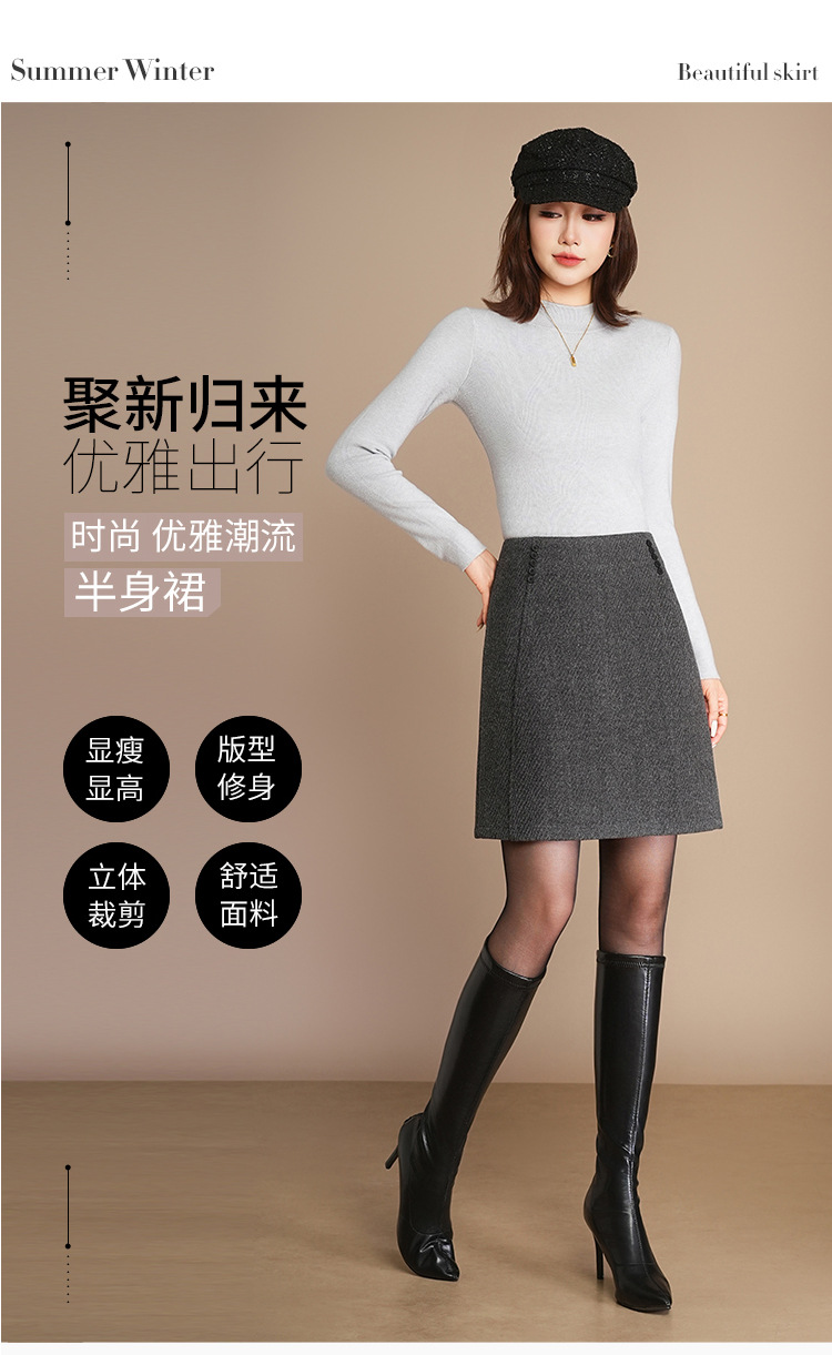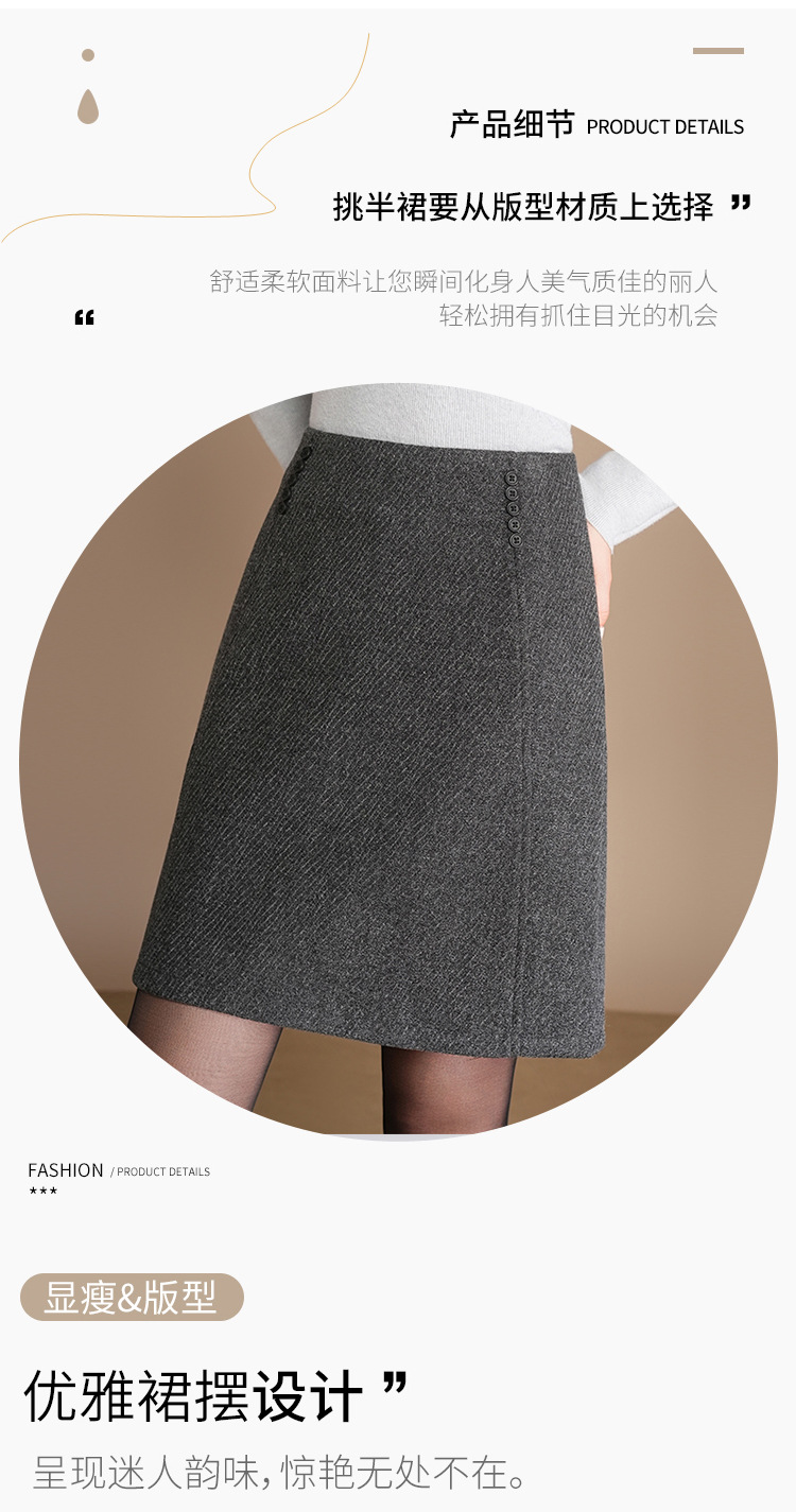QYM 7122-Y毛呢包臀裙高腰半身裙时尚气质A字裙 商品图3