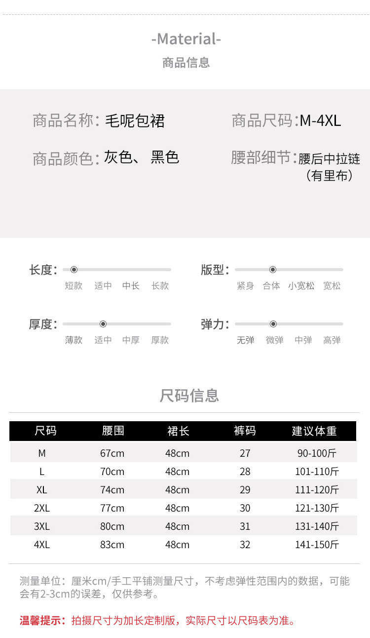 QYM 7122-Y毛呢包臀裙高腰半身裙时尚气质A字裙 商品图4