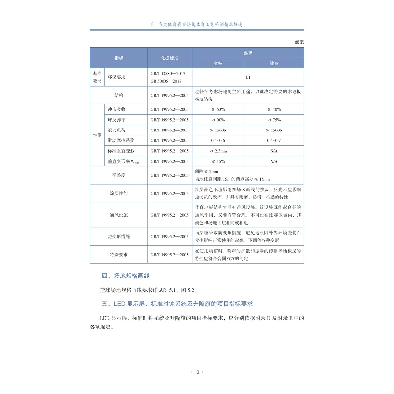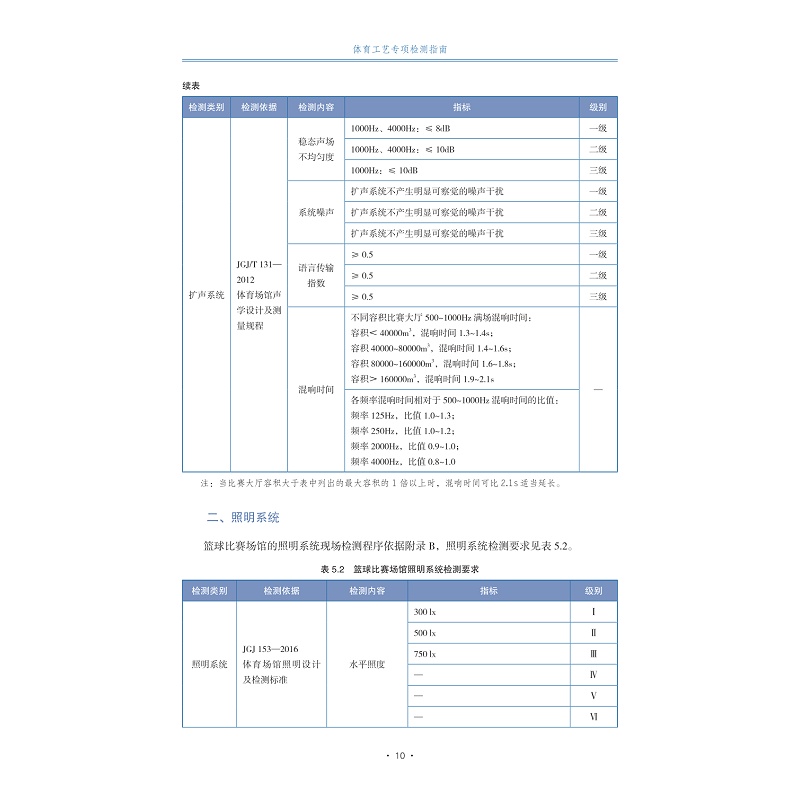 当前市场上缺乏完善、具体的体育工艺检测指南,场馆在建设、检测验收及监管过程中均需要查询大量文件、标准及国际联合会规则。尤其是对于大型赛事场馆建设项目,如奥运会、亚运会、省运会等,由于涉及多类型的运动场馆,所需查阅的资料数量非常庞大。本指南对包括篮球、足球、田径等共二十九类赛事场馆的规格尺寸、面层系统、照明系统、扩声系统等指标进行了系统性的总结,介绍体育工艺并阐述体育工艺检测的意义所在,明确体育工艺专项检测机构的资质要求,以及检测相关程序。重点对各类体育赛事场地体育工艺指标要求及检测程序进行了概述,对各类主要体育赛事场地的规格尺寸、面层系统、照明系统和扩声系统等指标进行了总结。