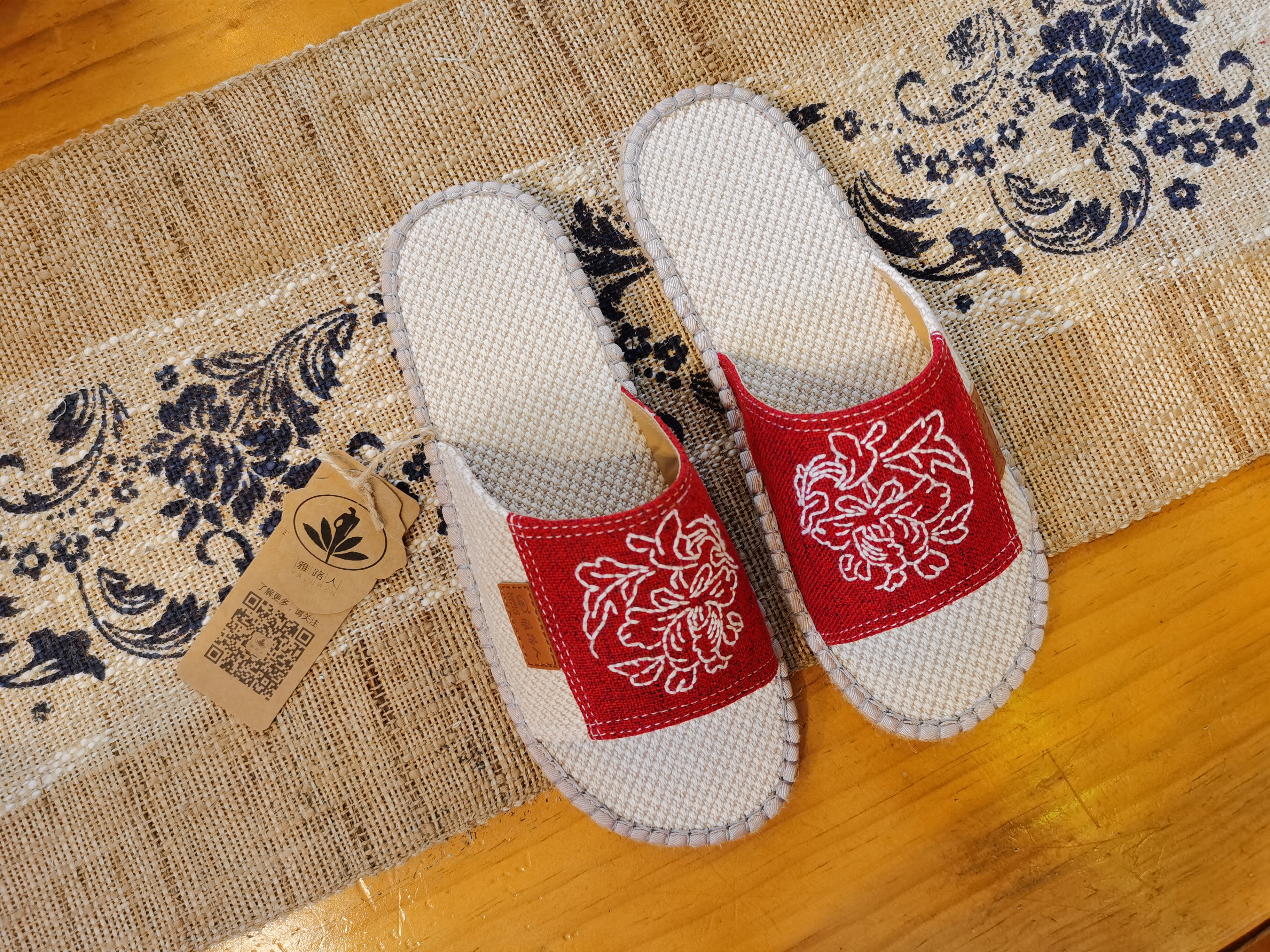 女士亚麻编织拖鞋甘谷麻鞋手工钩织刺绣居家防臭四季防滑环保地板拖鞋