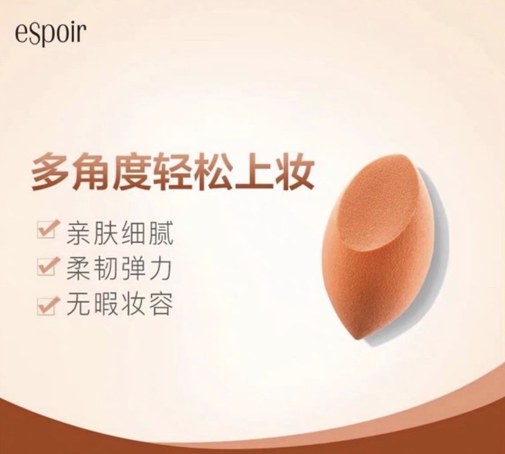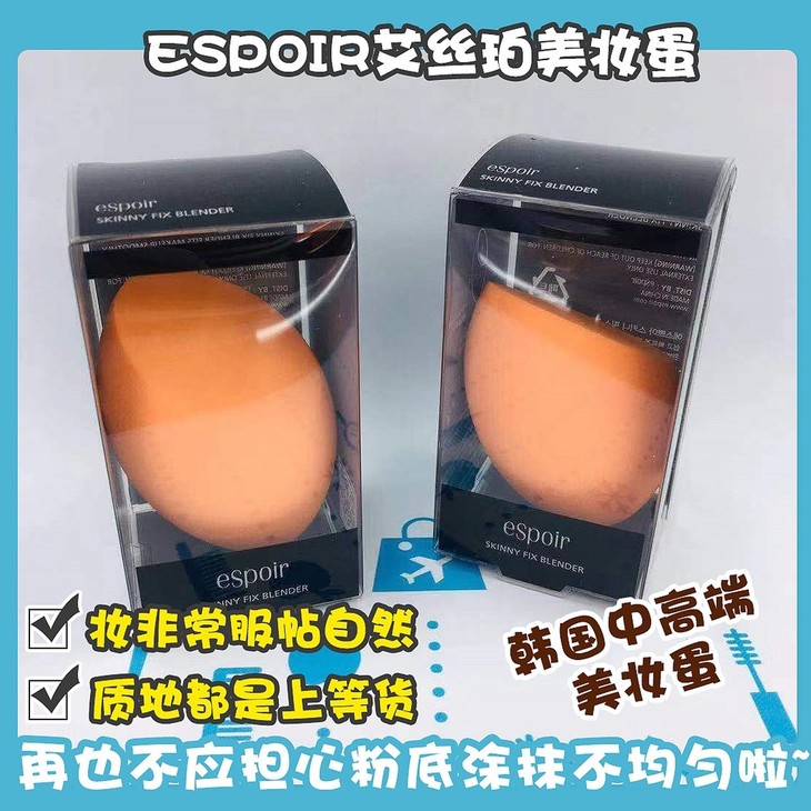 ESPOIR艾丝珀美妆蛋👍韩国中高端美妆蛋🇰🇷,是粉底液的固定搭配,质量,质地都是上等货⬆!每每上妆的时候💆,一层隔离,一层粉底,弄得手上黏黏糊糊的很不爽👿,你不妨试试espoir美妆蛋哦🤗,脸上的各个部分都能顾及上👅,大面积圆的地方可以负责上脸颊和额头😇,尖尖的圆头可以负责眼周边👀,这样上来的妆非常服帖自然,会有裸妆的效果,超级棒👏!再也不应担心粉底涂抹不均匀啦~
