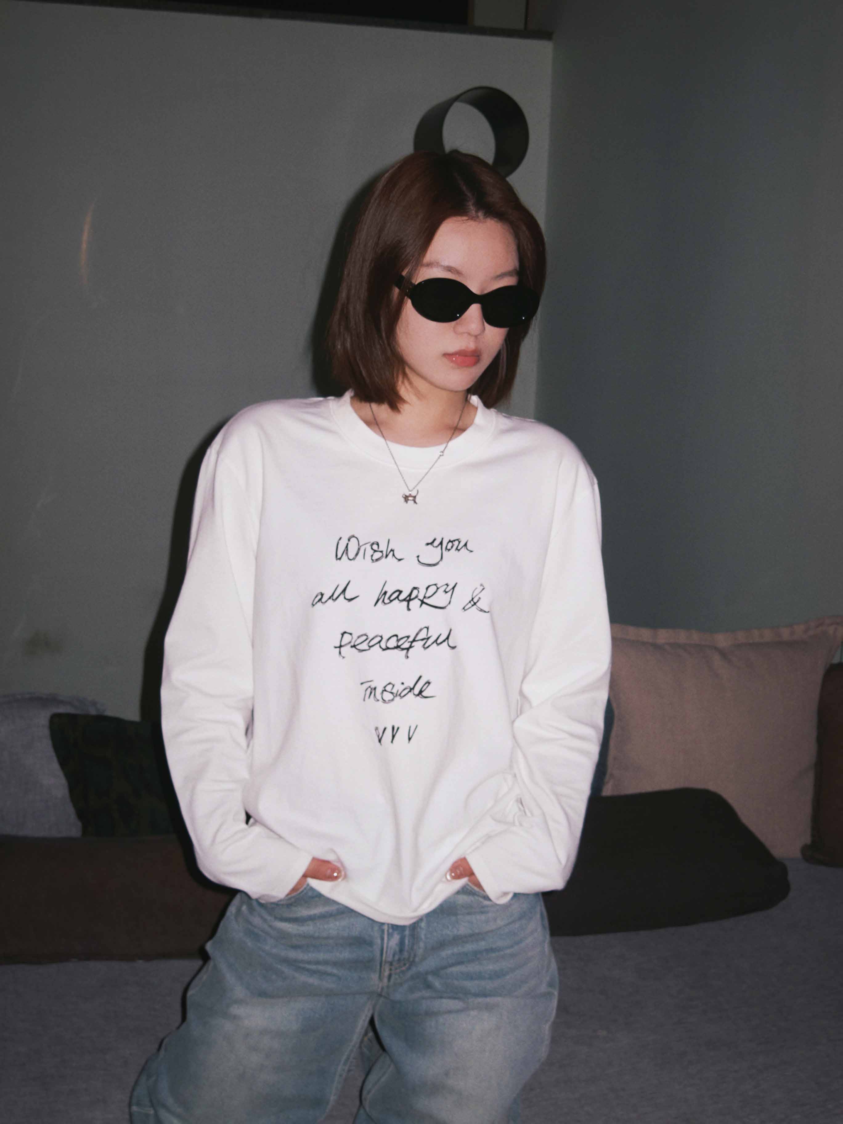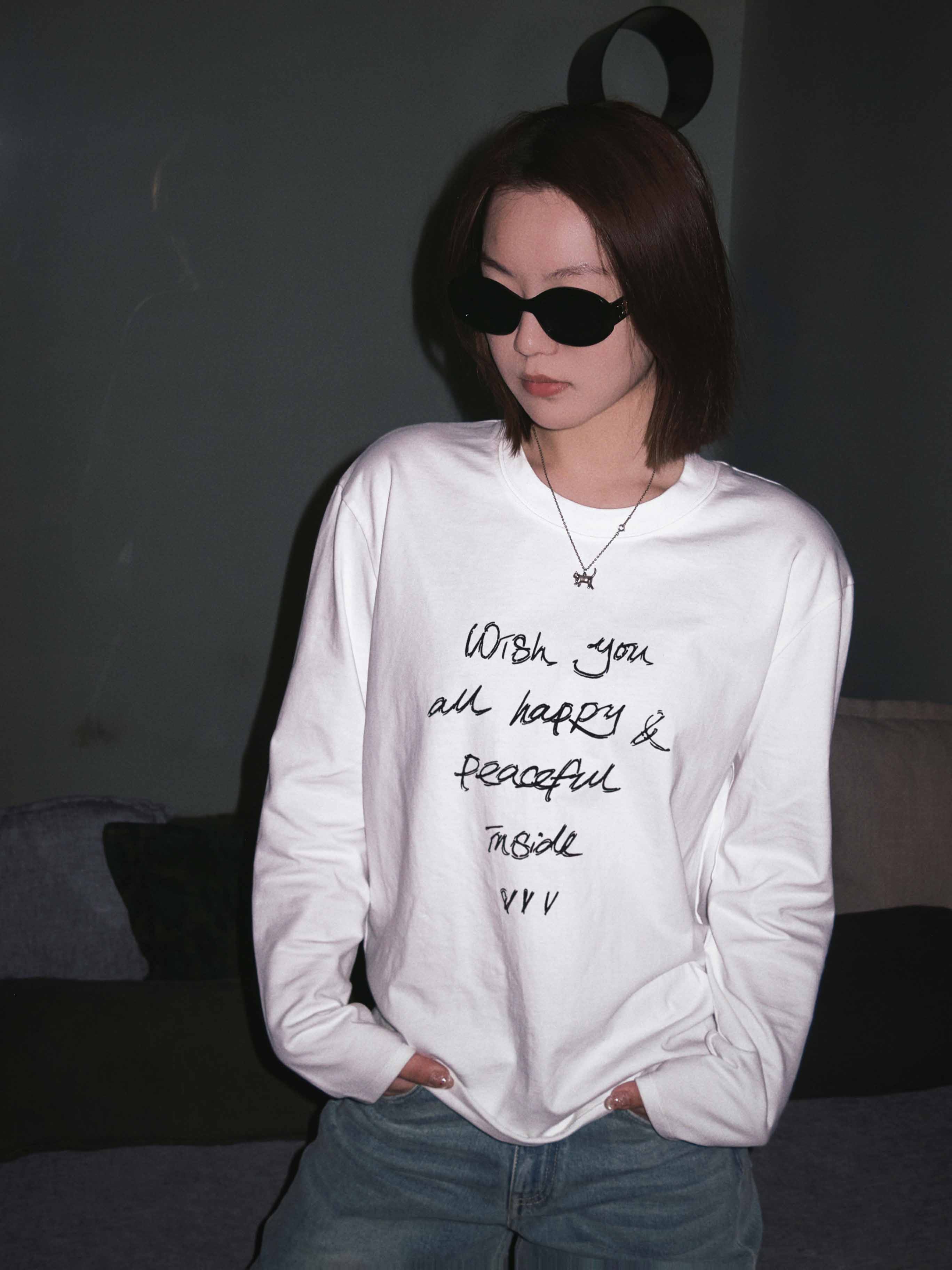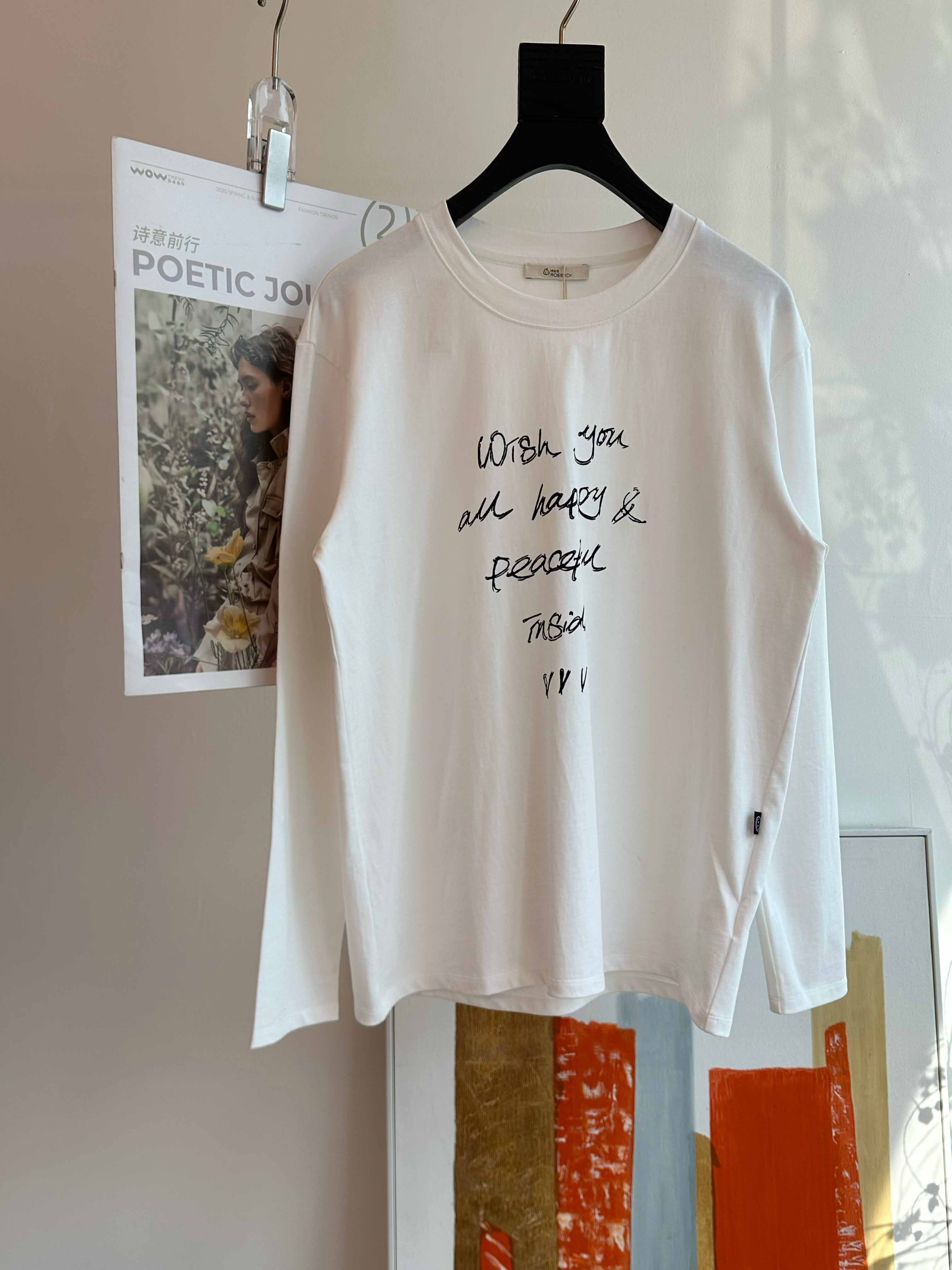 韩系休闲字母印花长袖T恤,宽松慵懒风,三季可穿