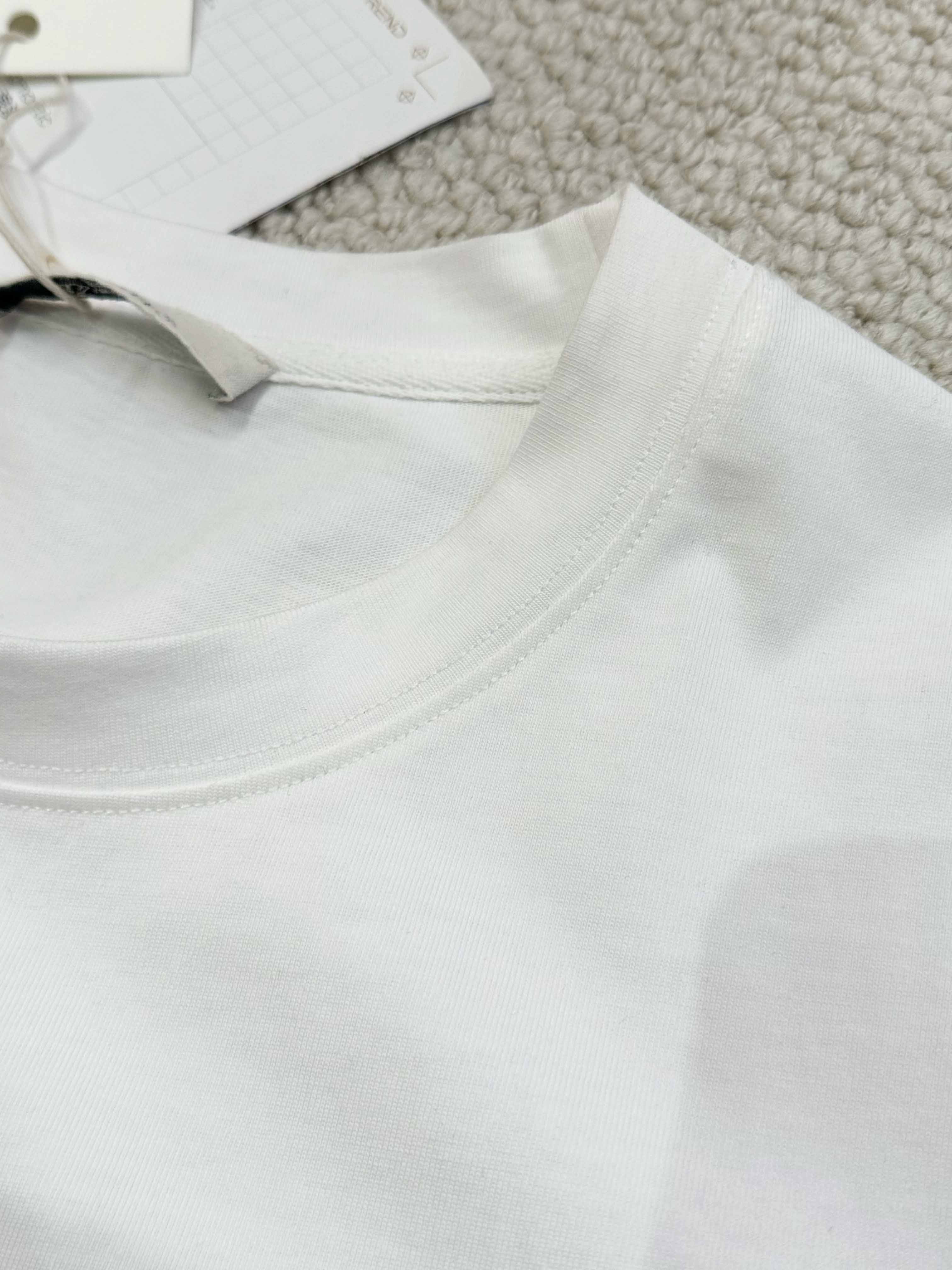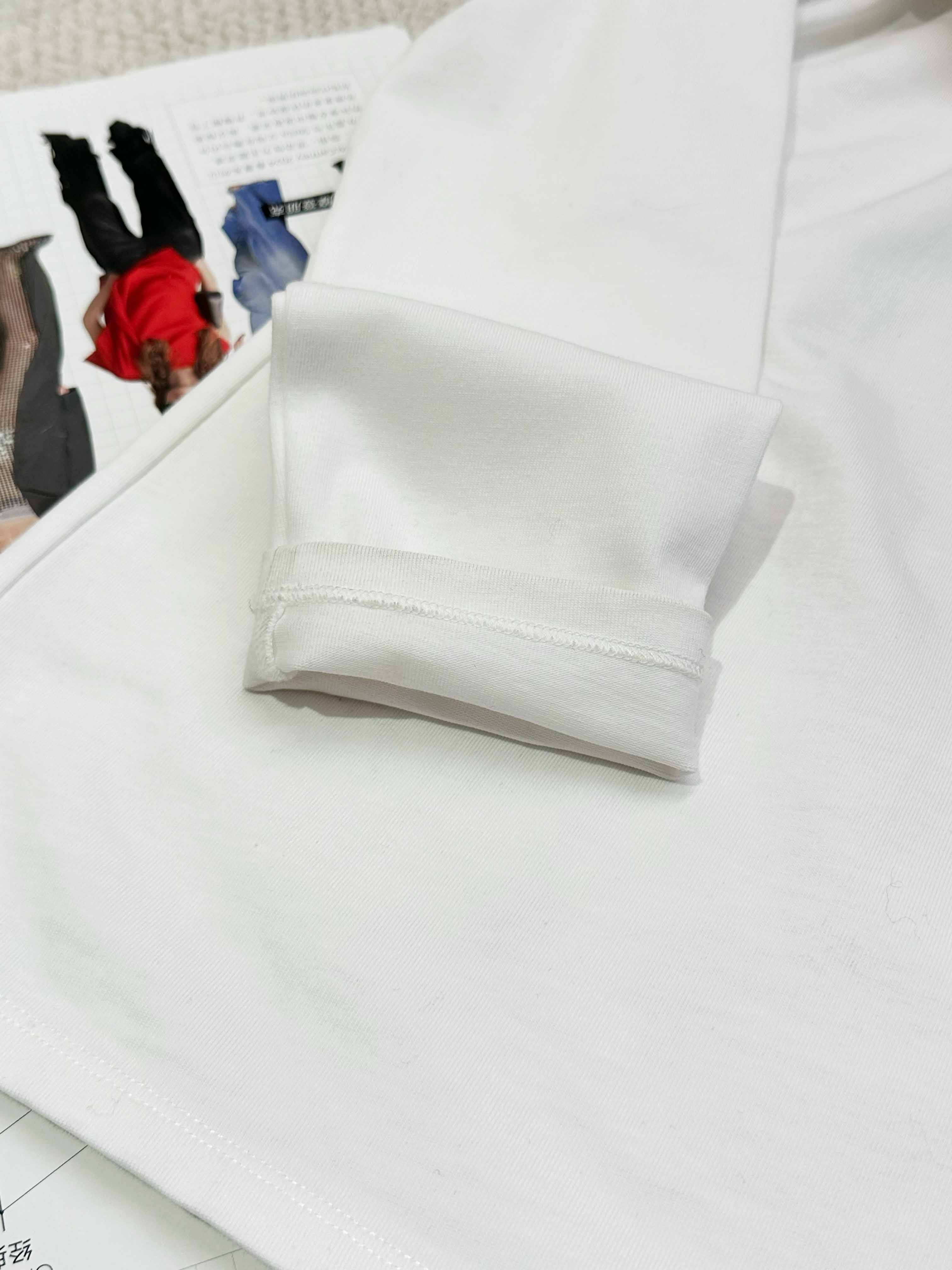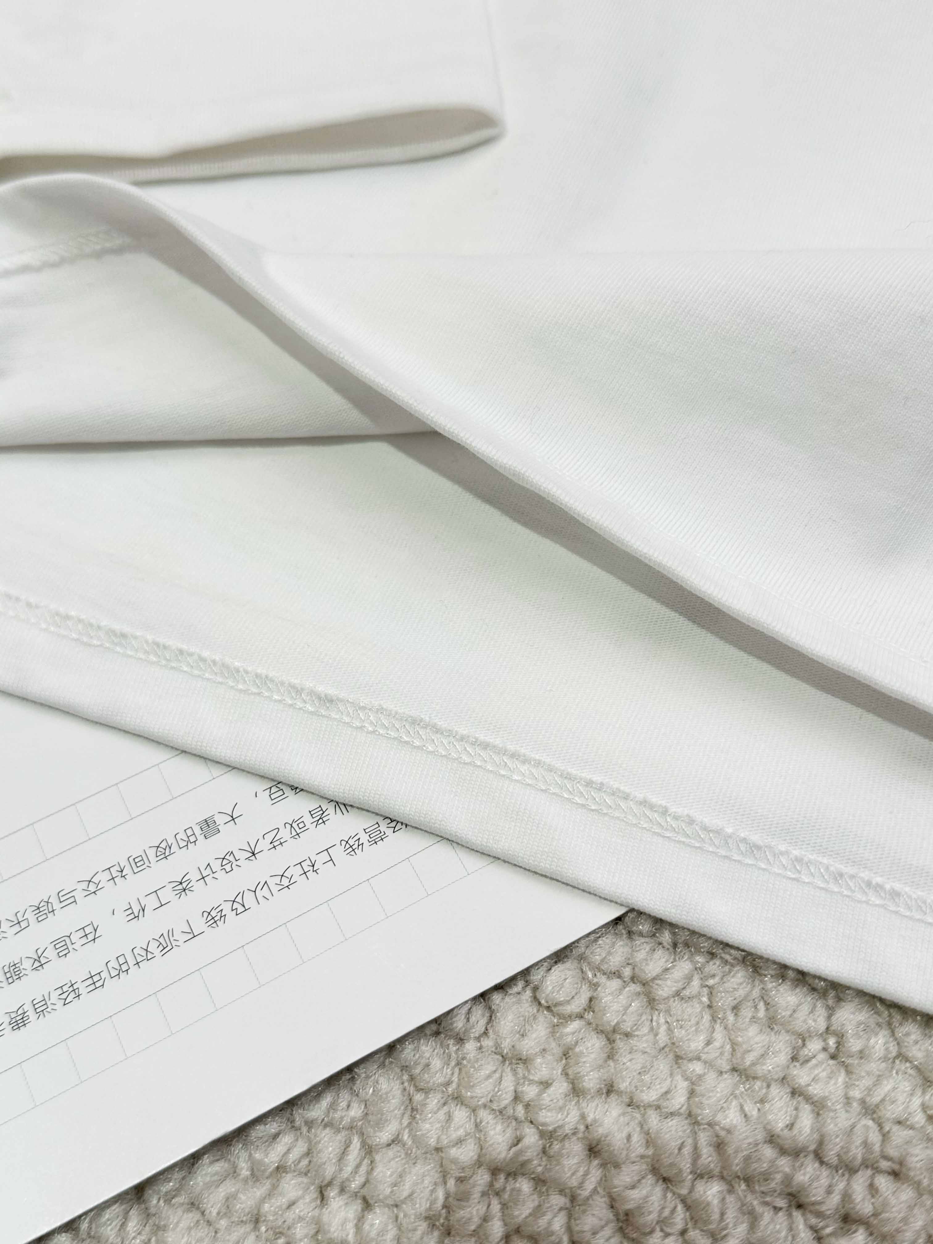 2.前幅印花。整件四线打边。左侧维跟纸样位定标牌。上领,后领车织带,面压0.80IM线。