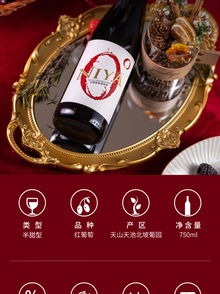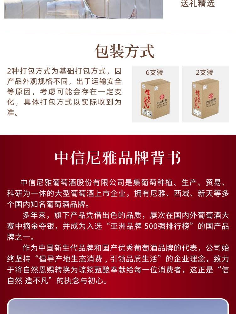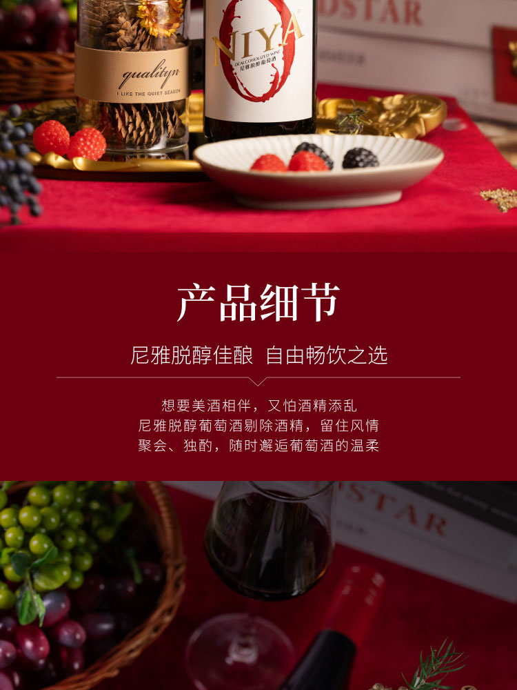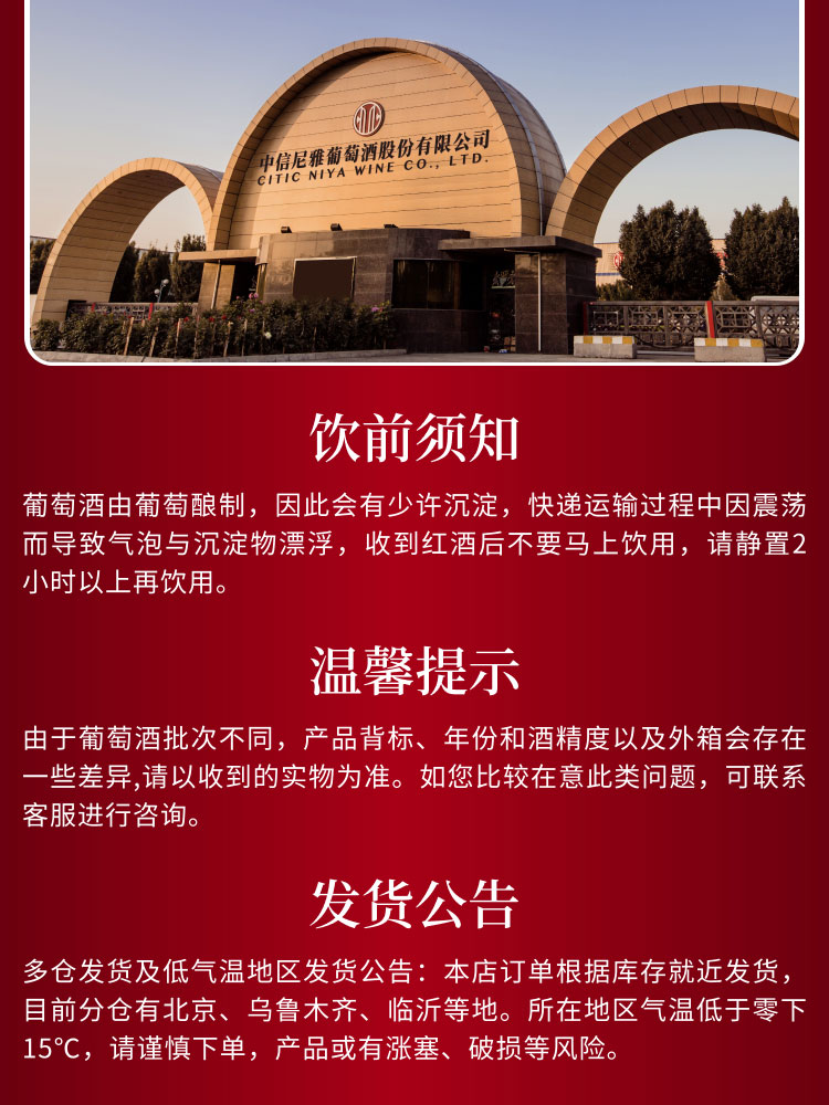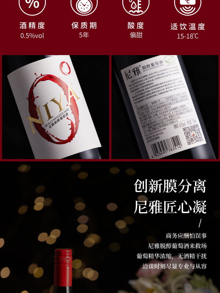 中信尼雅·尼雅0.5度脱醇葡萄酒 整箱 750mlX6瓶装,双支手袋,送黑领结酒杯