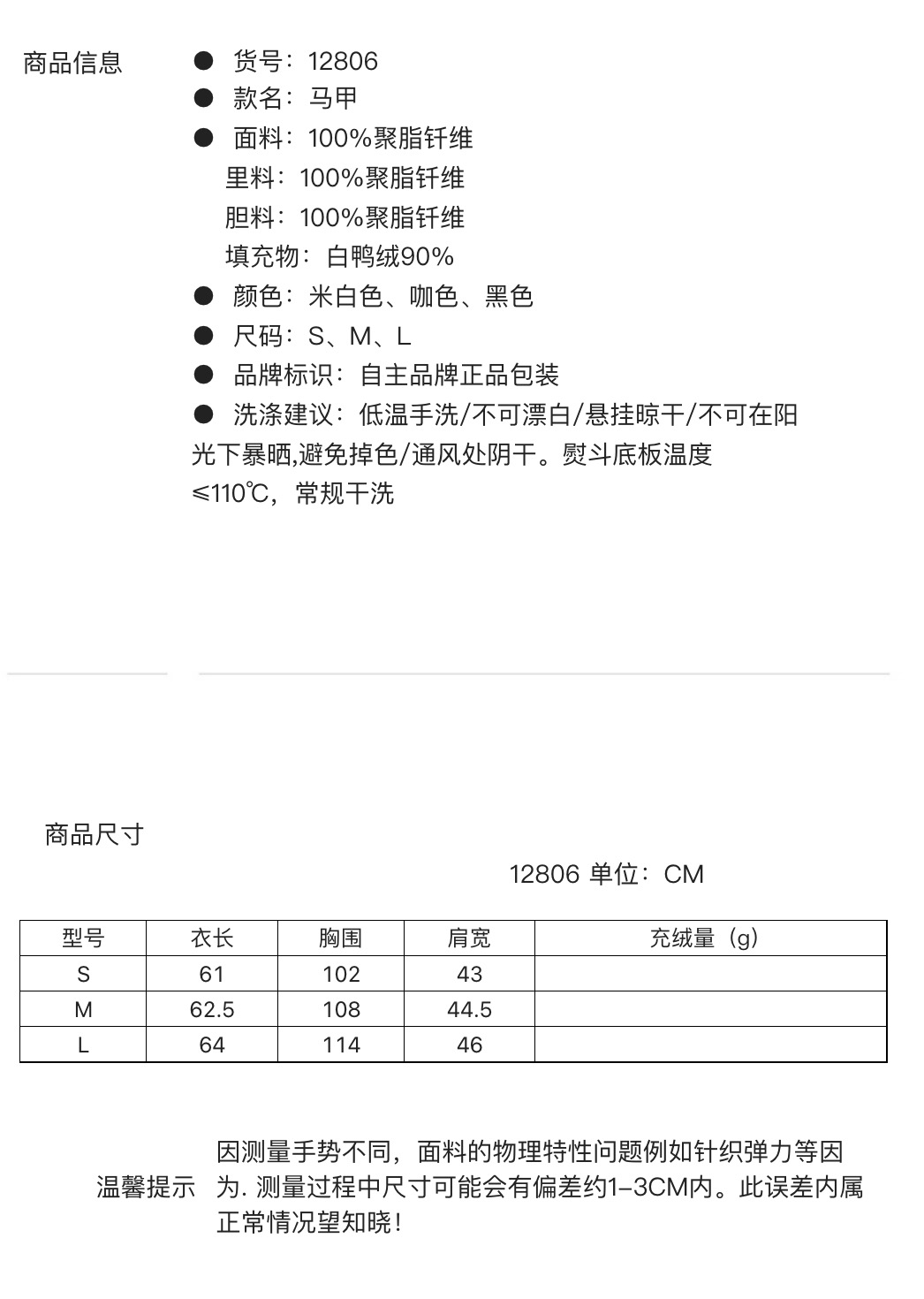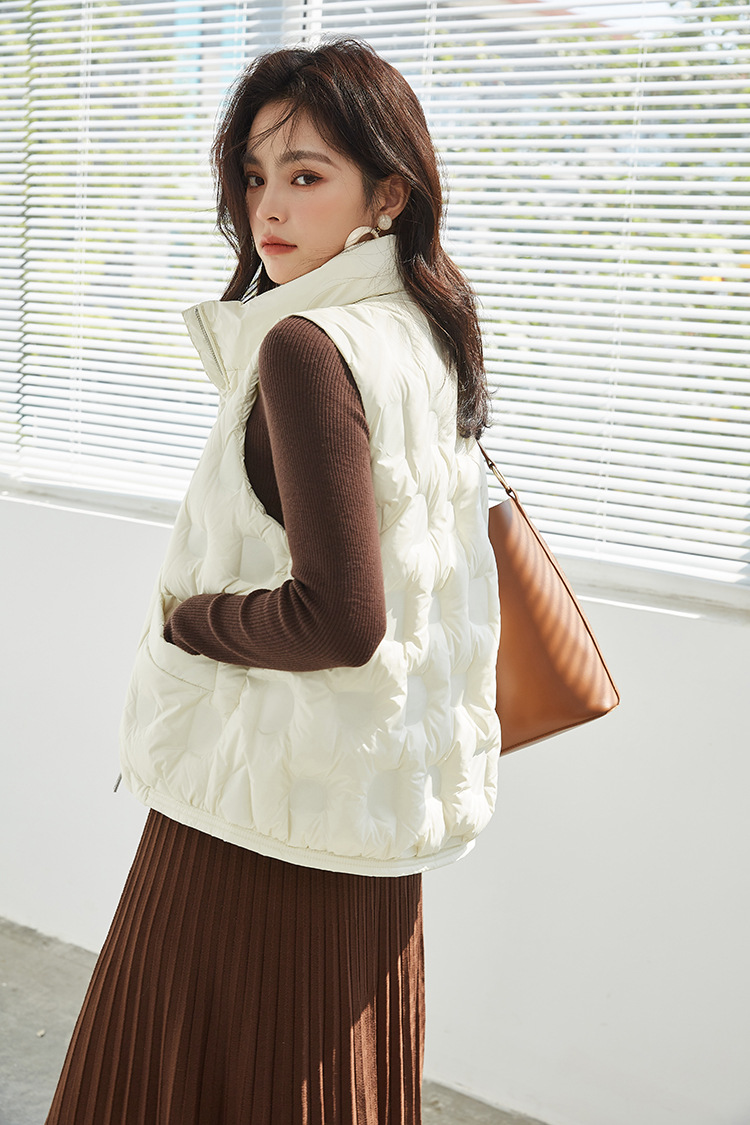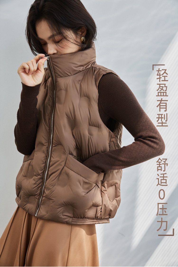 「高货sh」全新升级【铂金会员293/天猫399/差价106】(05019)洛诗琳新款白鸭绒立领马甲2025冬季气质通勤宽松保暖外套