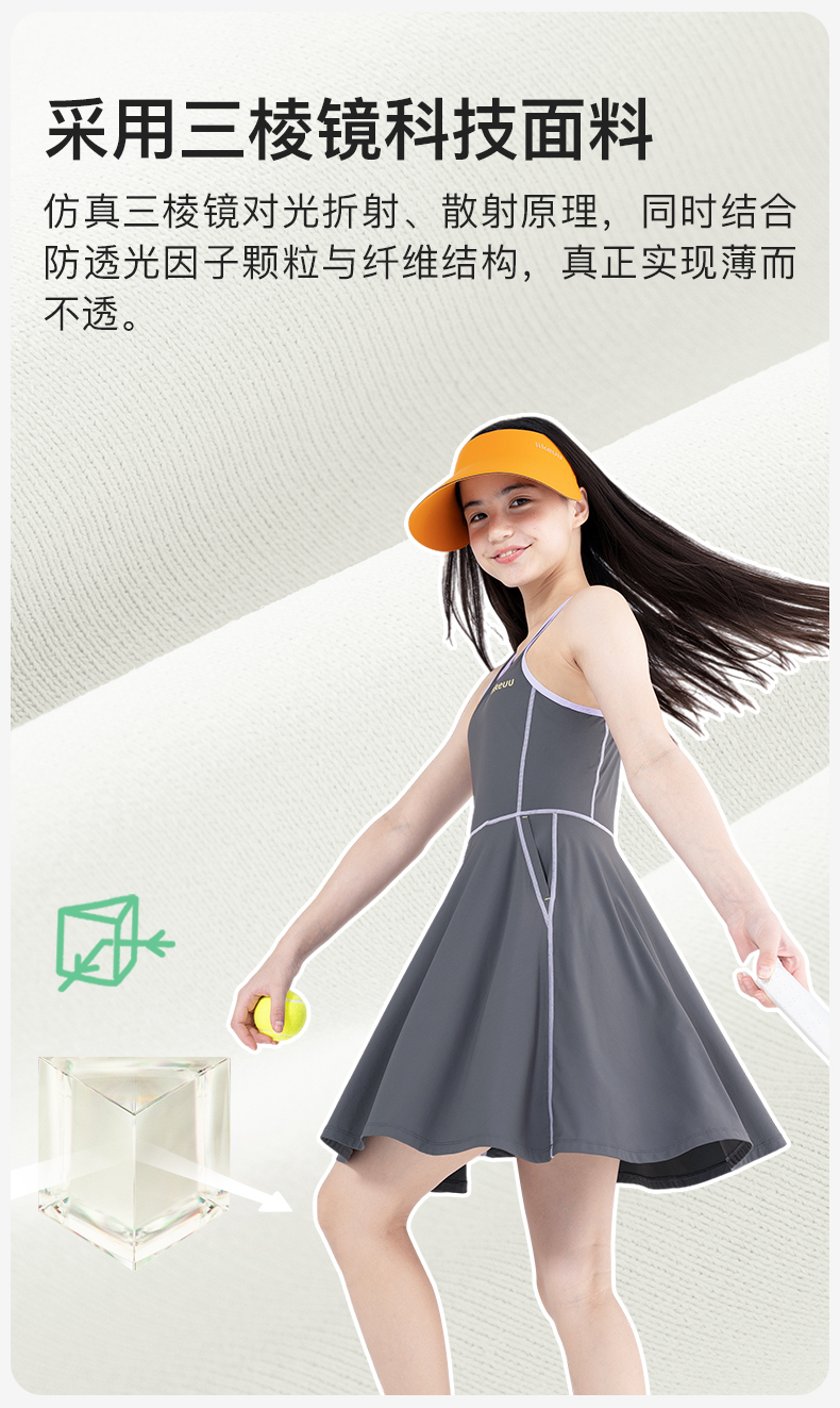 ubras旗下likeuu儿童女凉感吸湿速干连衣裙原纱防晒运动裙子夏季ZY