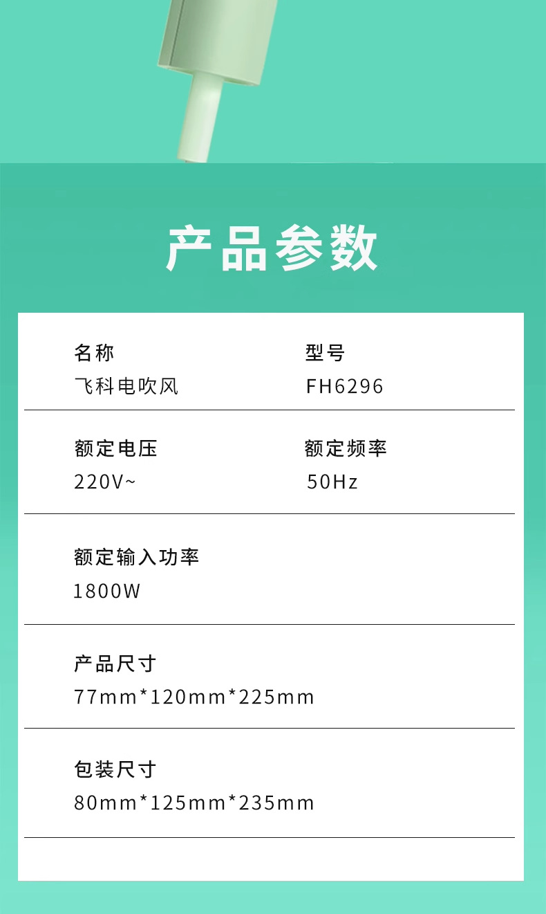 【热量均衡技术❗️双重过热保护】飞科电吹风机直筒网红吹风筒家用恒温护发大功率冷热风新款。jc