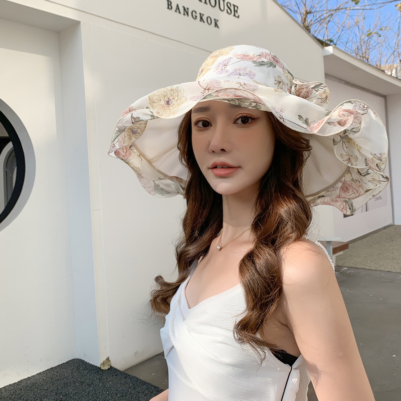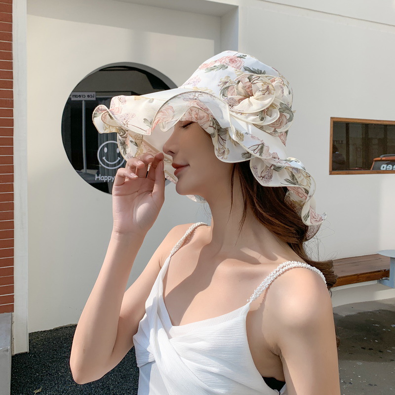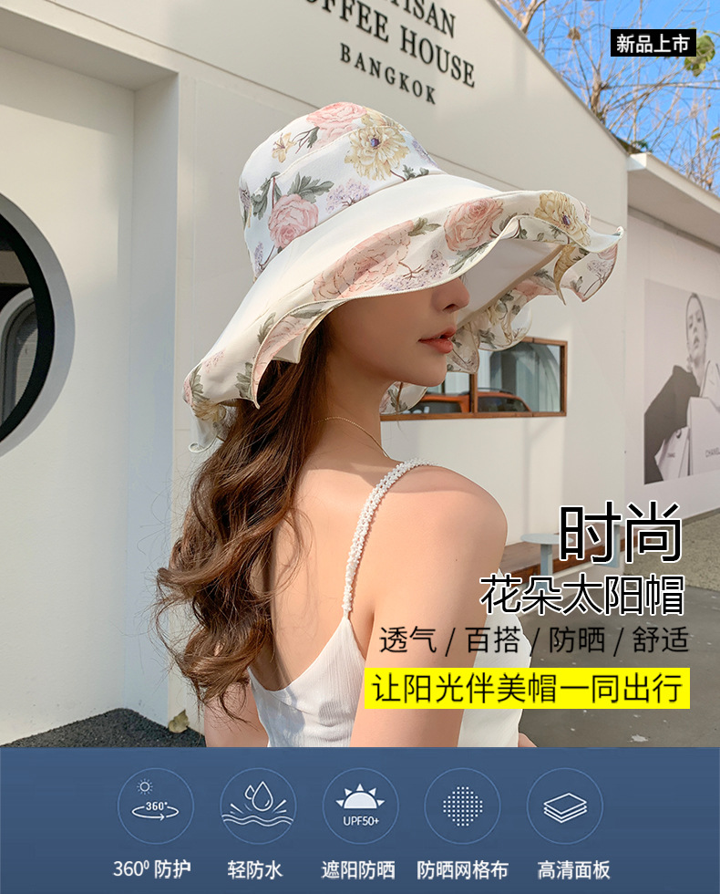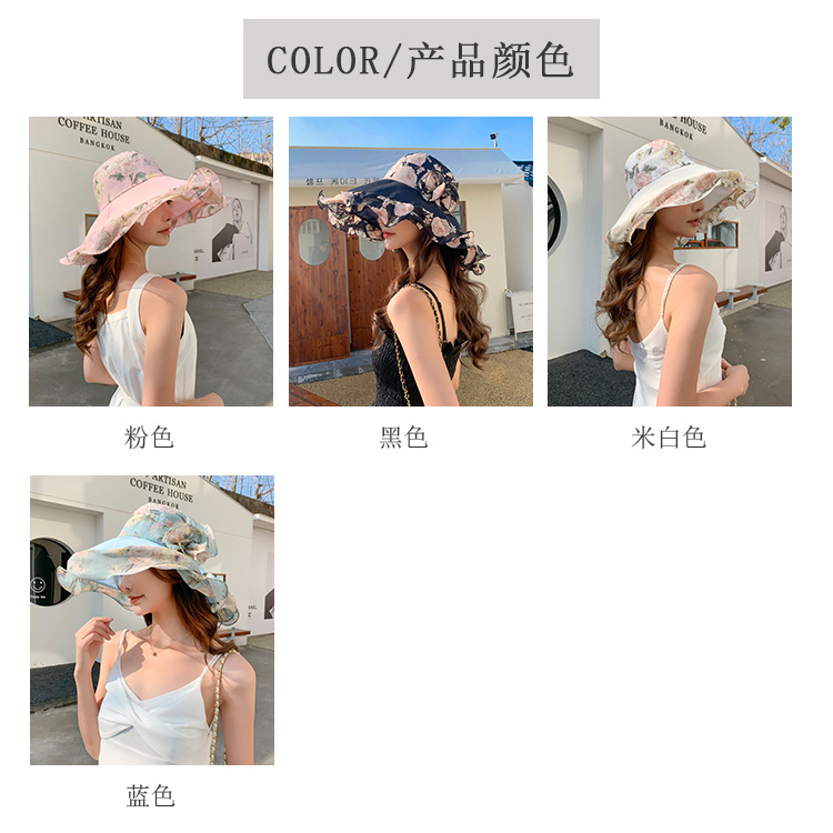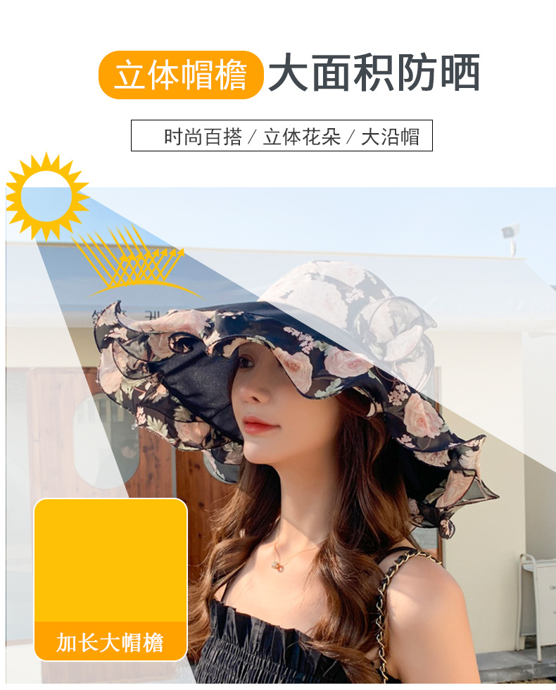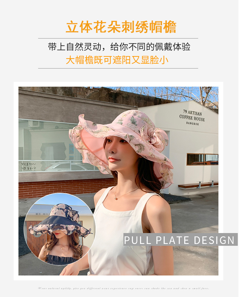 QM-QM0000707(xfy)沙滩遮阳帽子女 波浪边大檐太阳帽 花朵渔夫帽夏季出游大沿帽