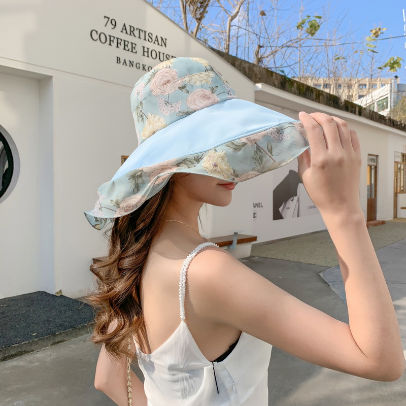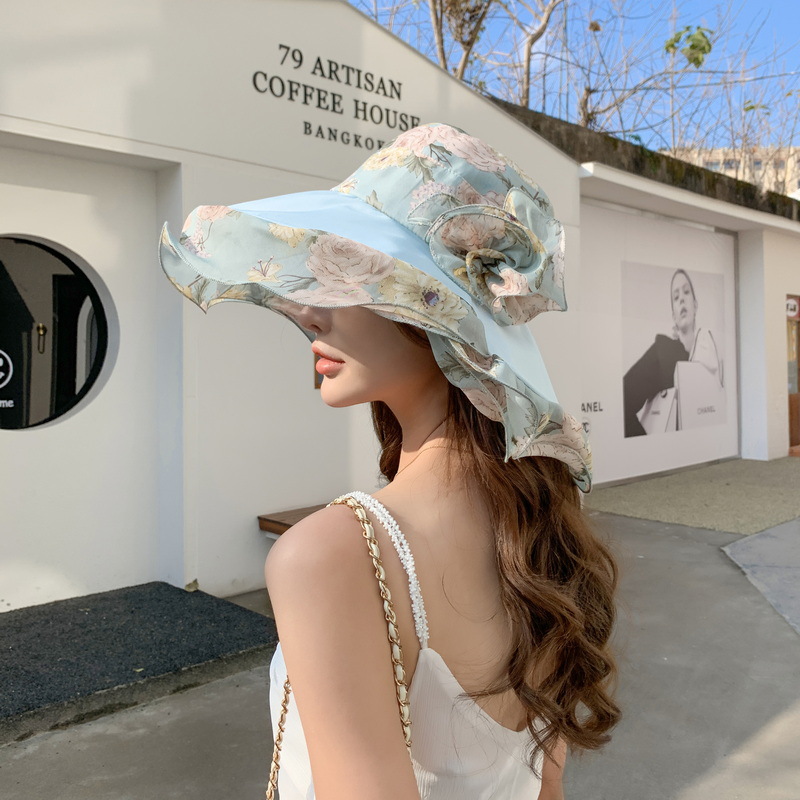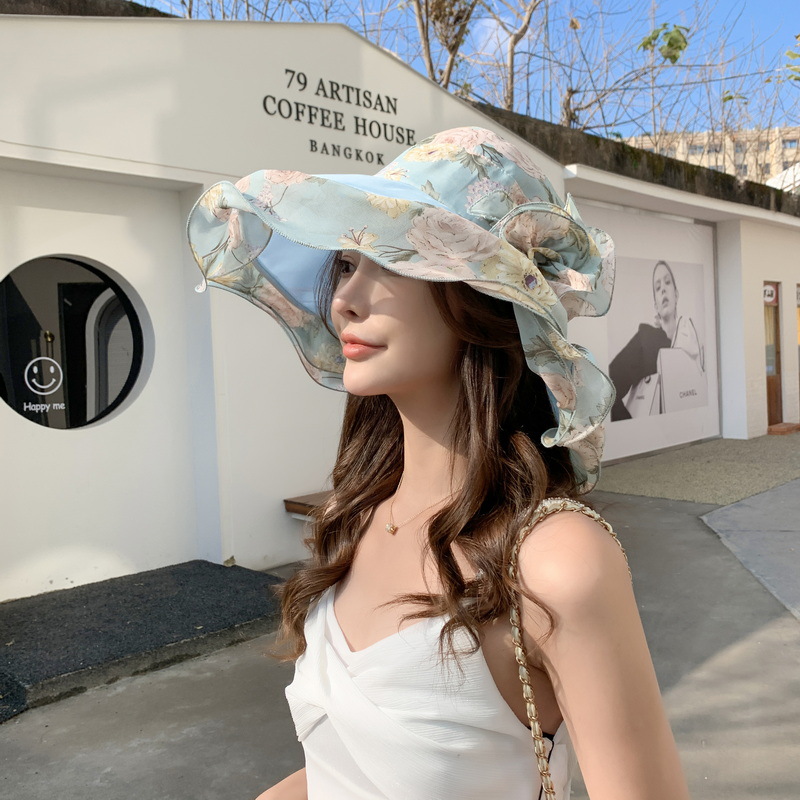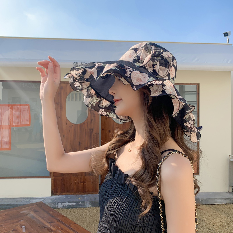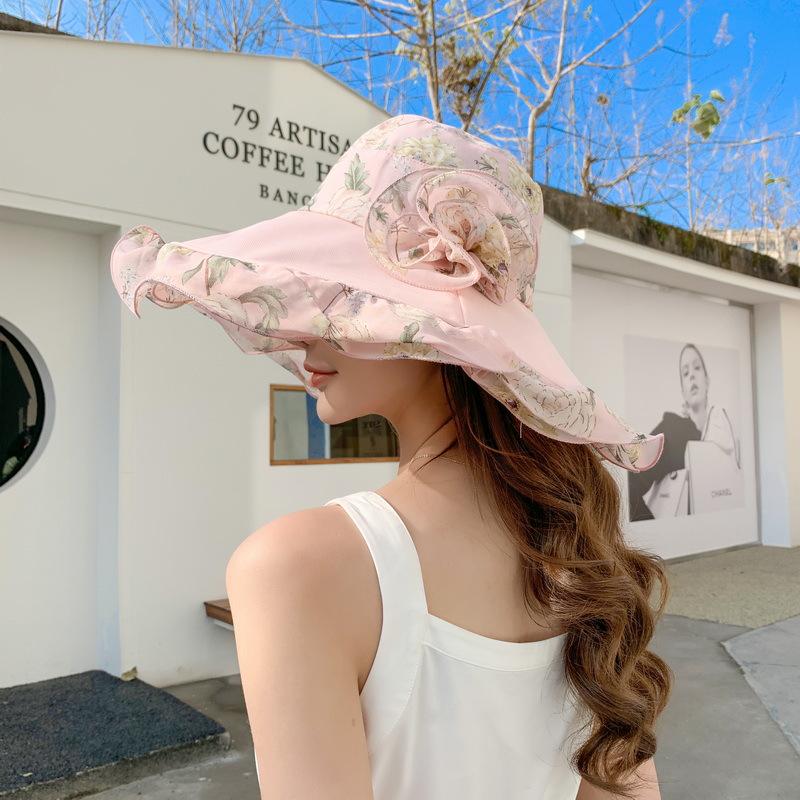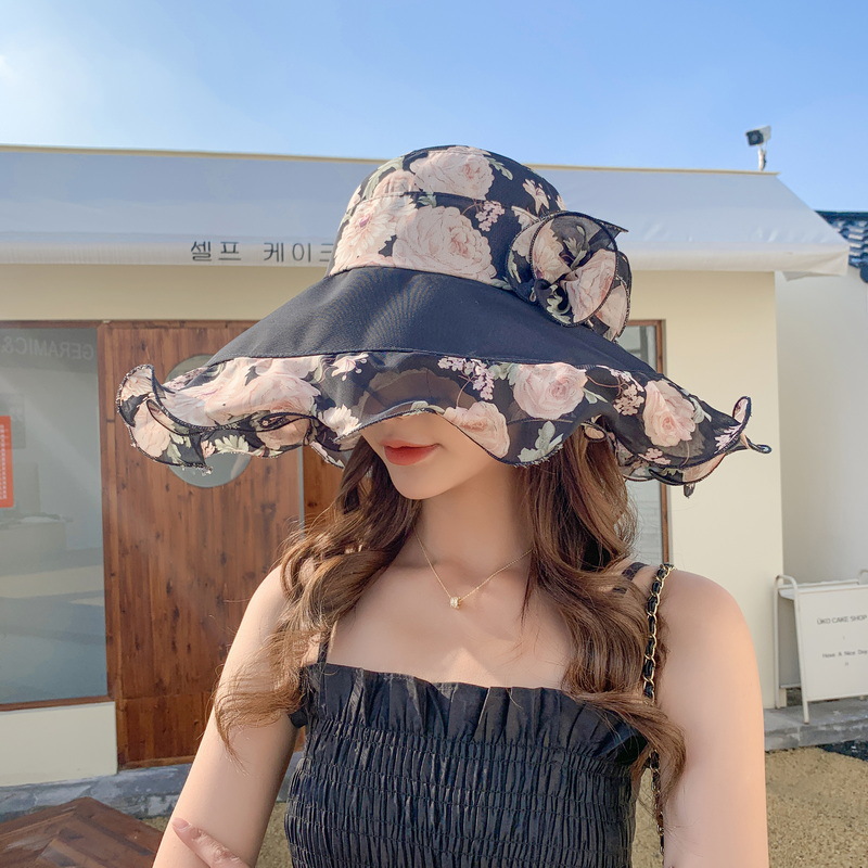 QM-QM0000707(xfy)沙滩遮阳帽子女 波浪边大檐太阳帽 花朵渔夫帽夏季出游大沿帽