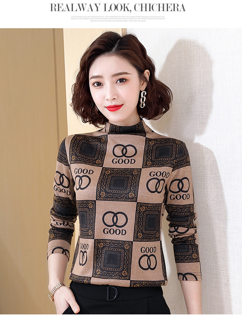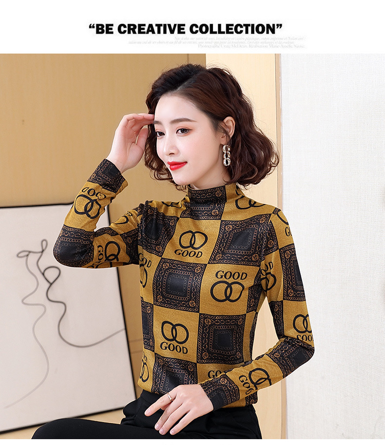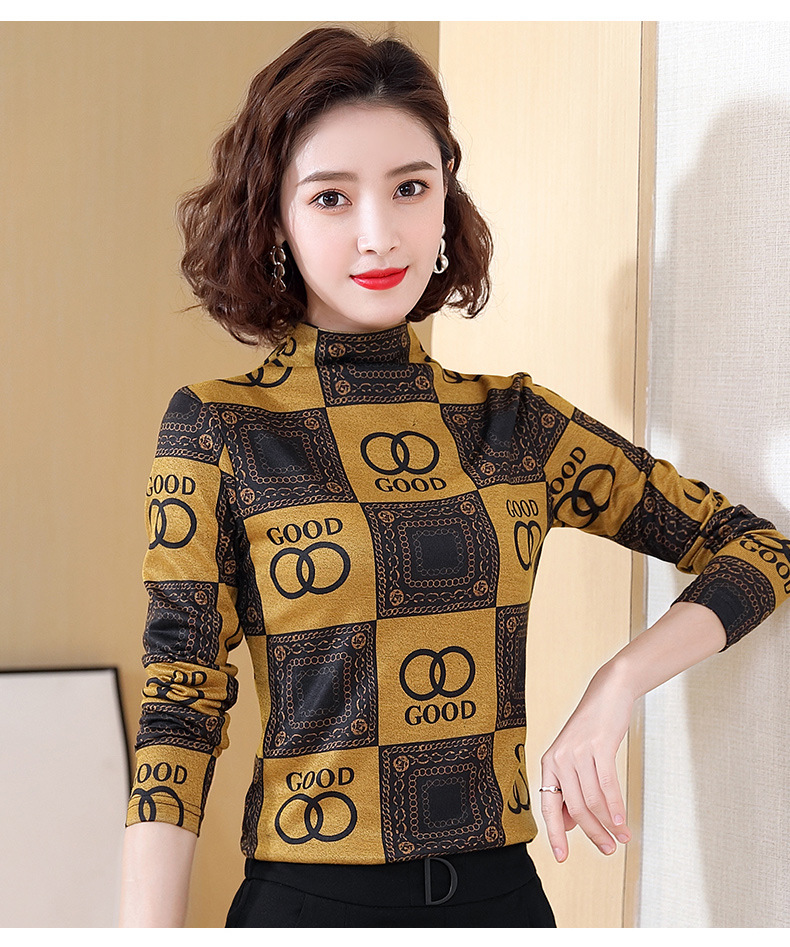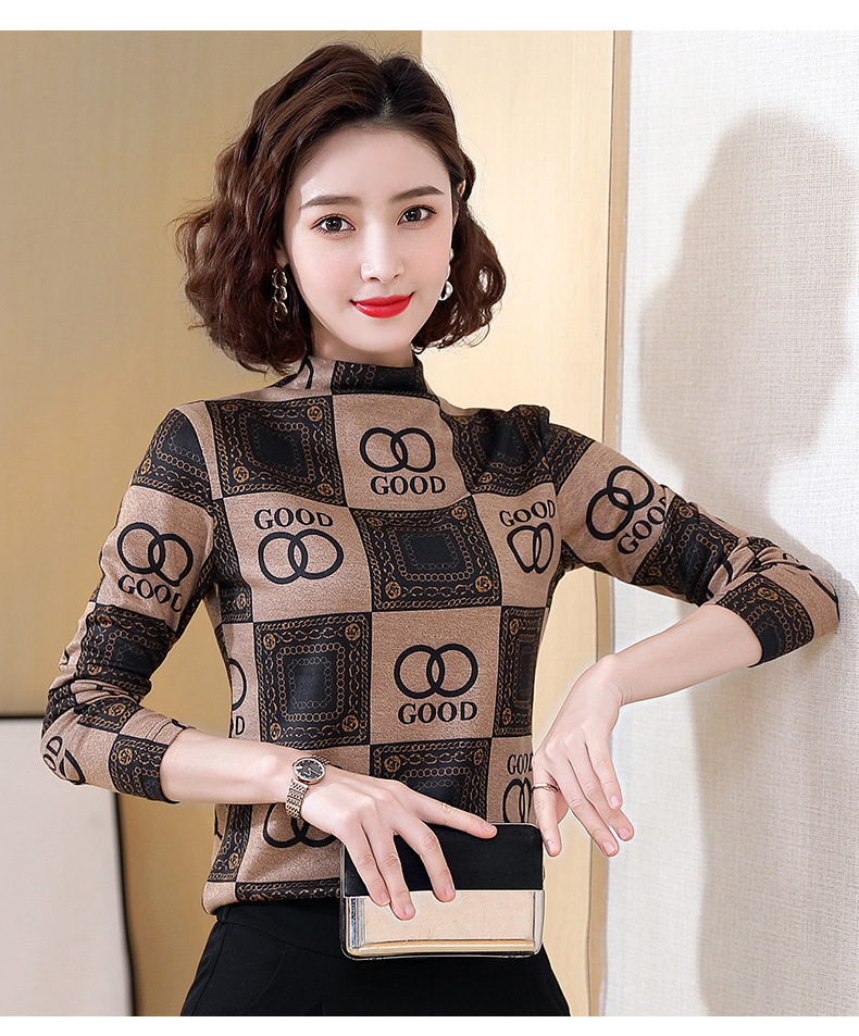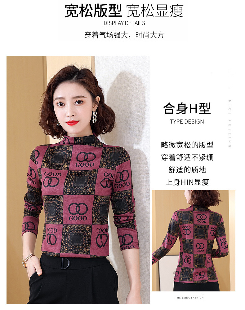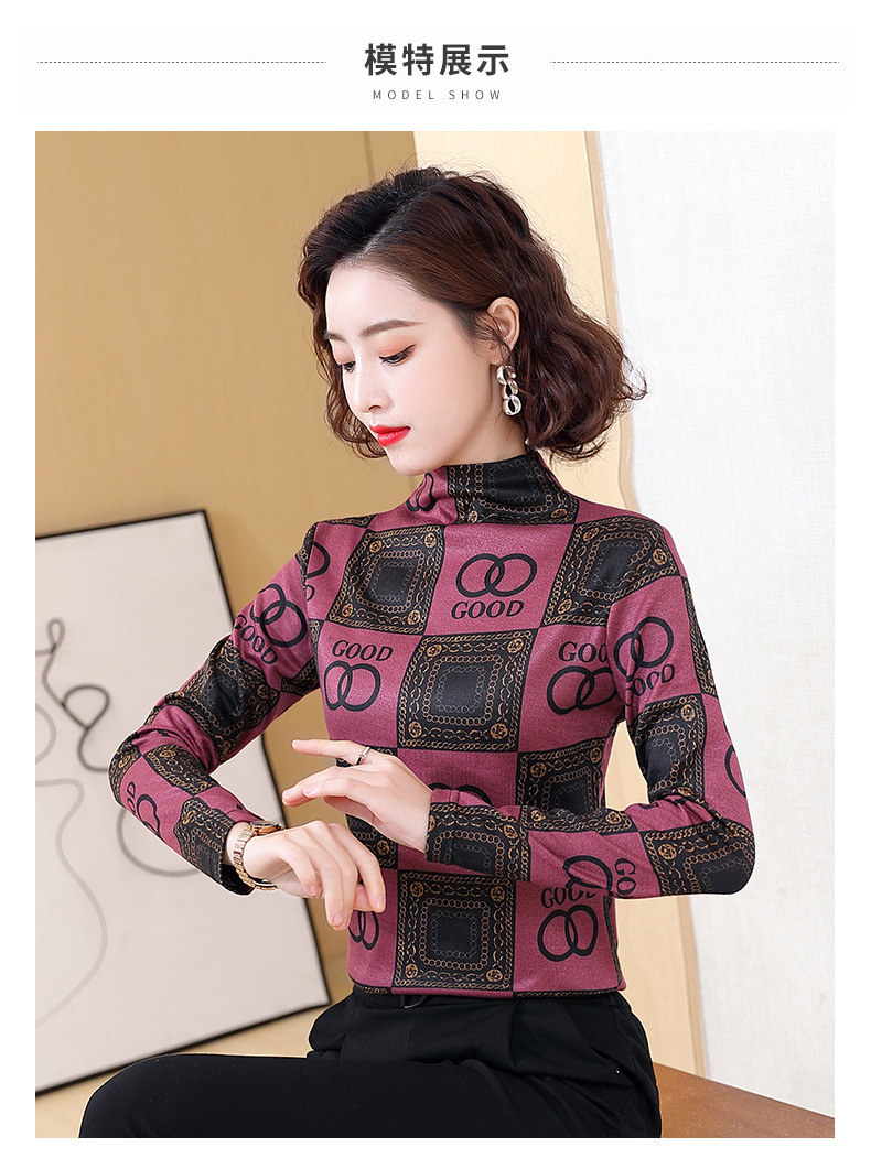 半高领打底衫,复古印花长袖洋气加绒内搭上衣TR-6879