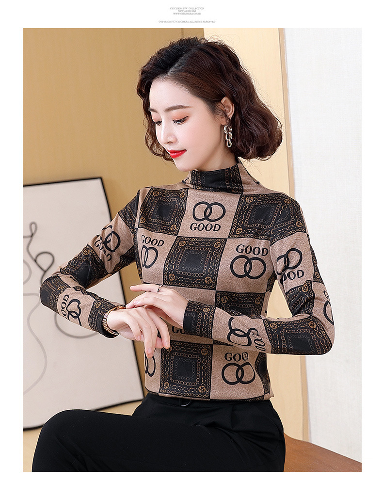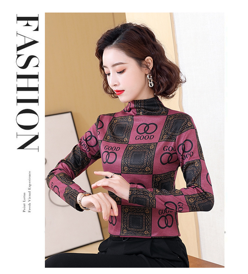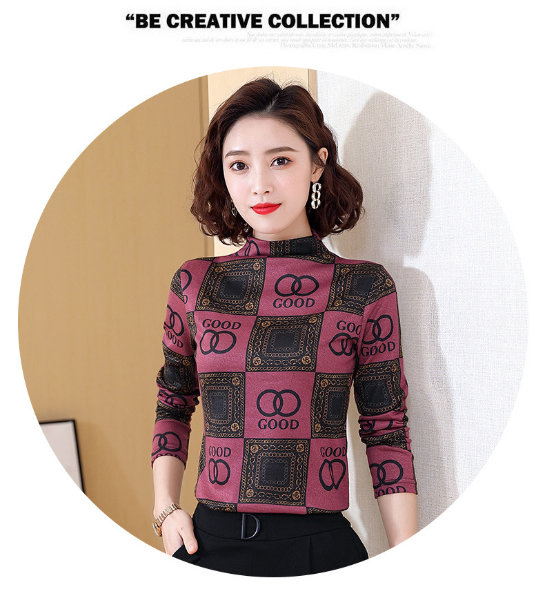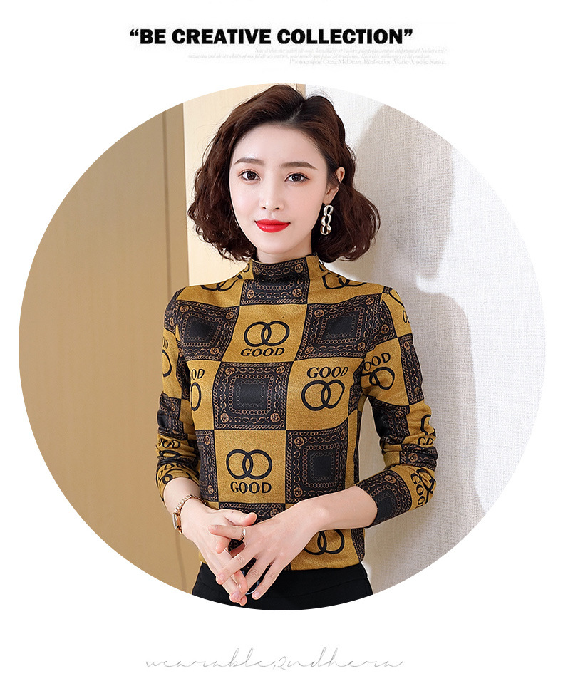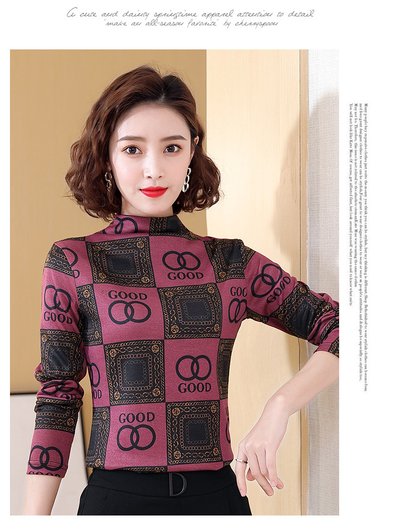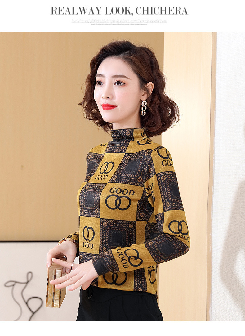 半高领打底衫,复古印花长袖洋气加绒内搭上衣TR-6879