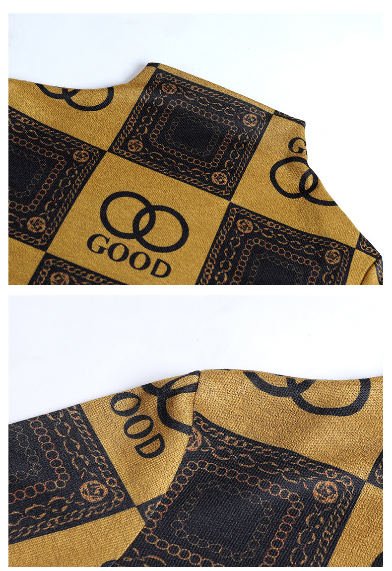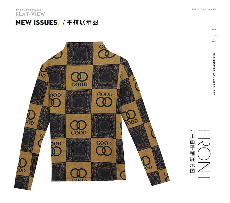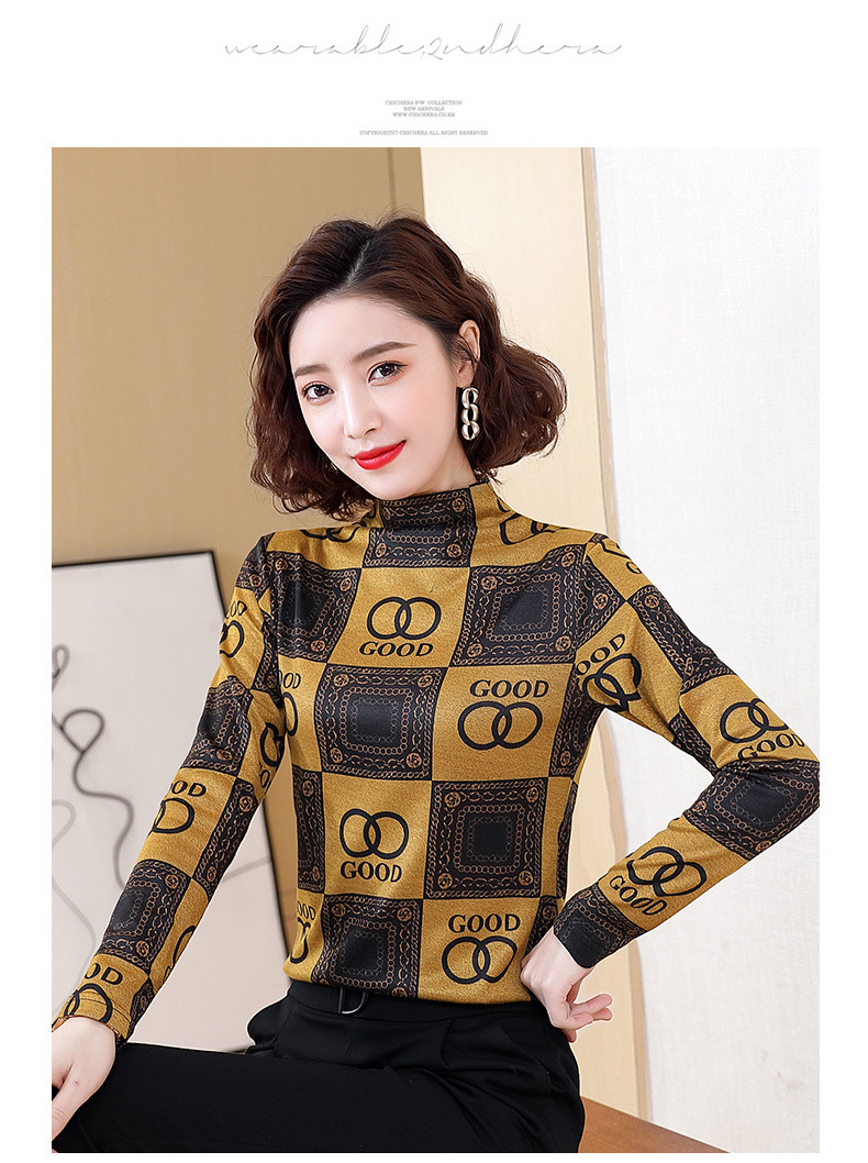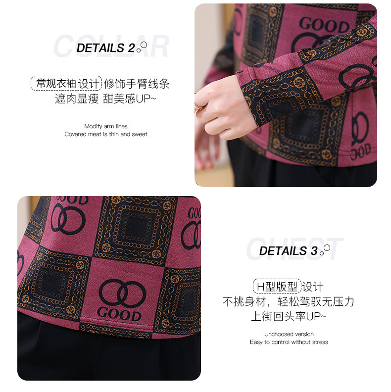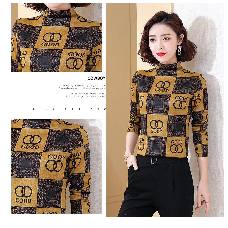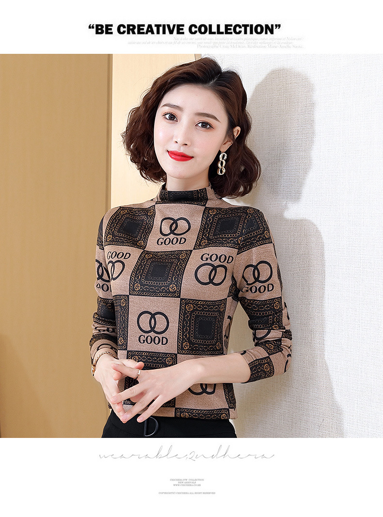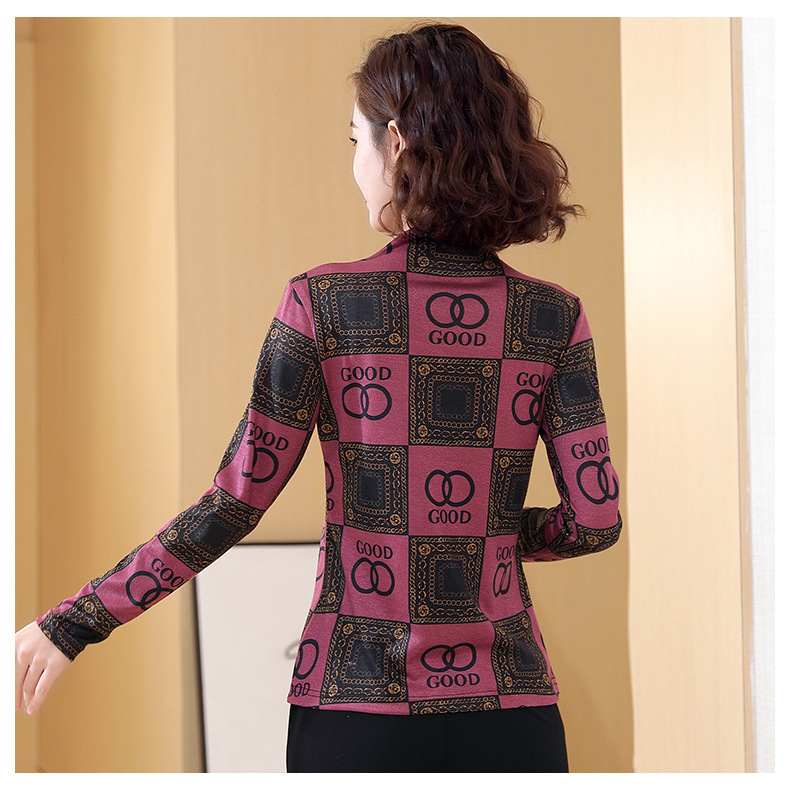 半高领打底衫,复古印花长袖洋气加绒内搭上衣TR-6879
