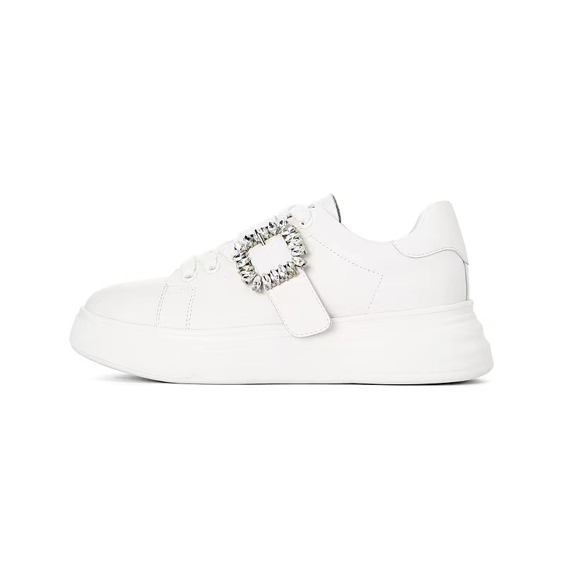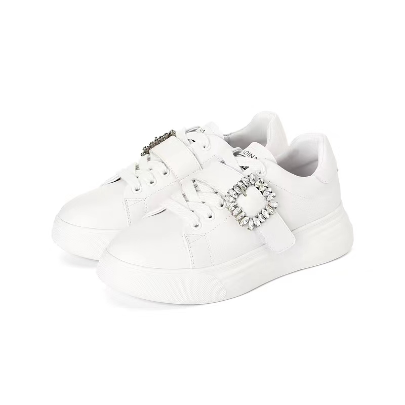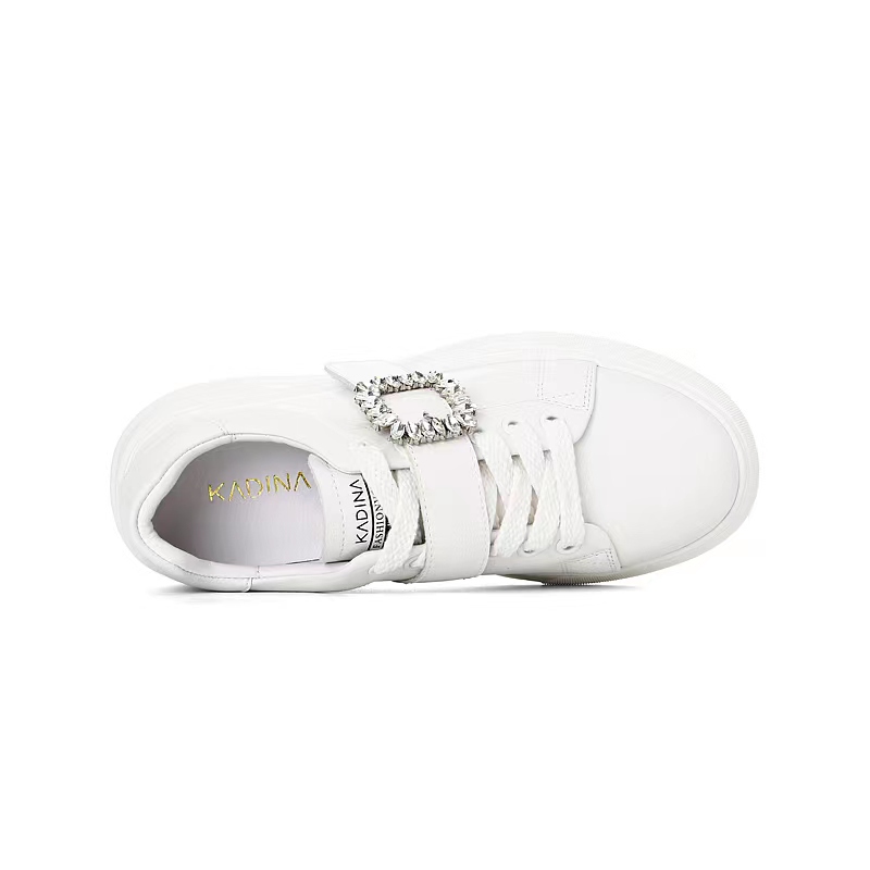 卡迪娜23年春季新款方形钻扣小白鞋平跟深口运动休闲鞋KC232405