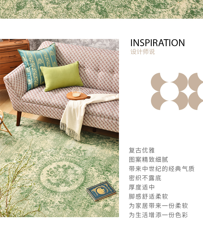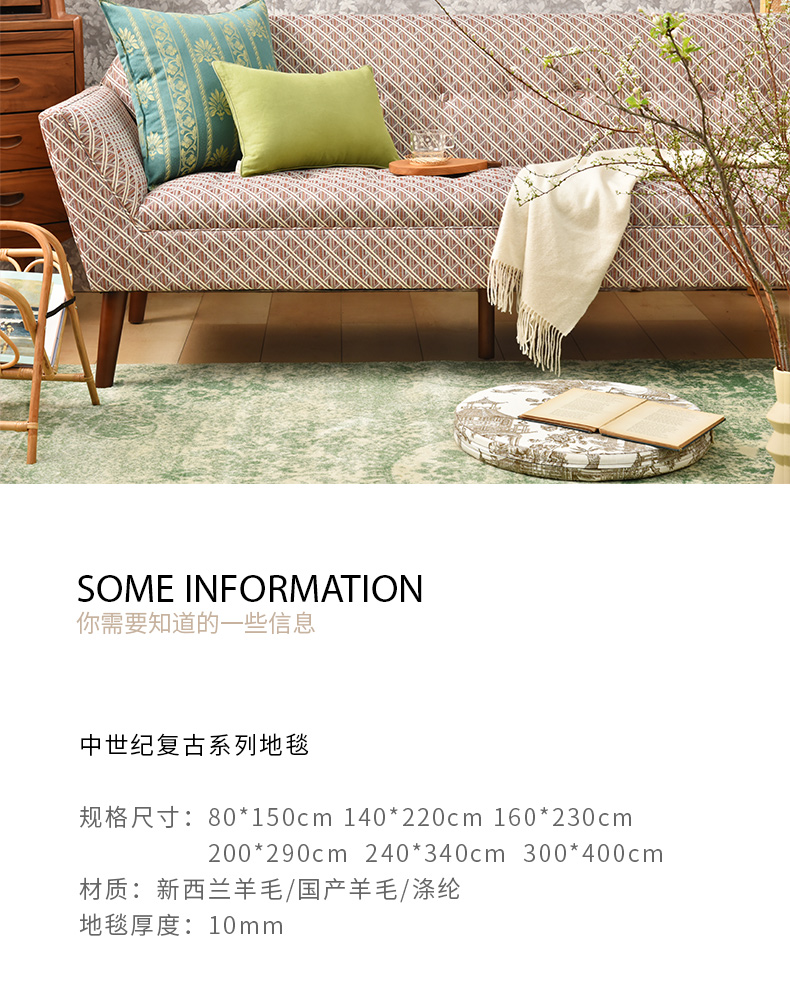 中世纪复古系列地毯新西兰羊毛地毯茶几客厅防滑地垫