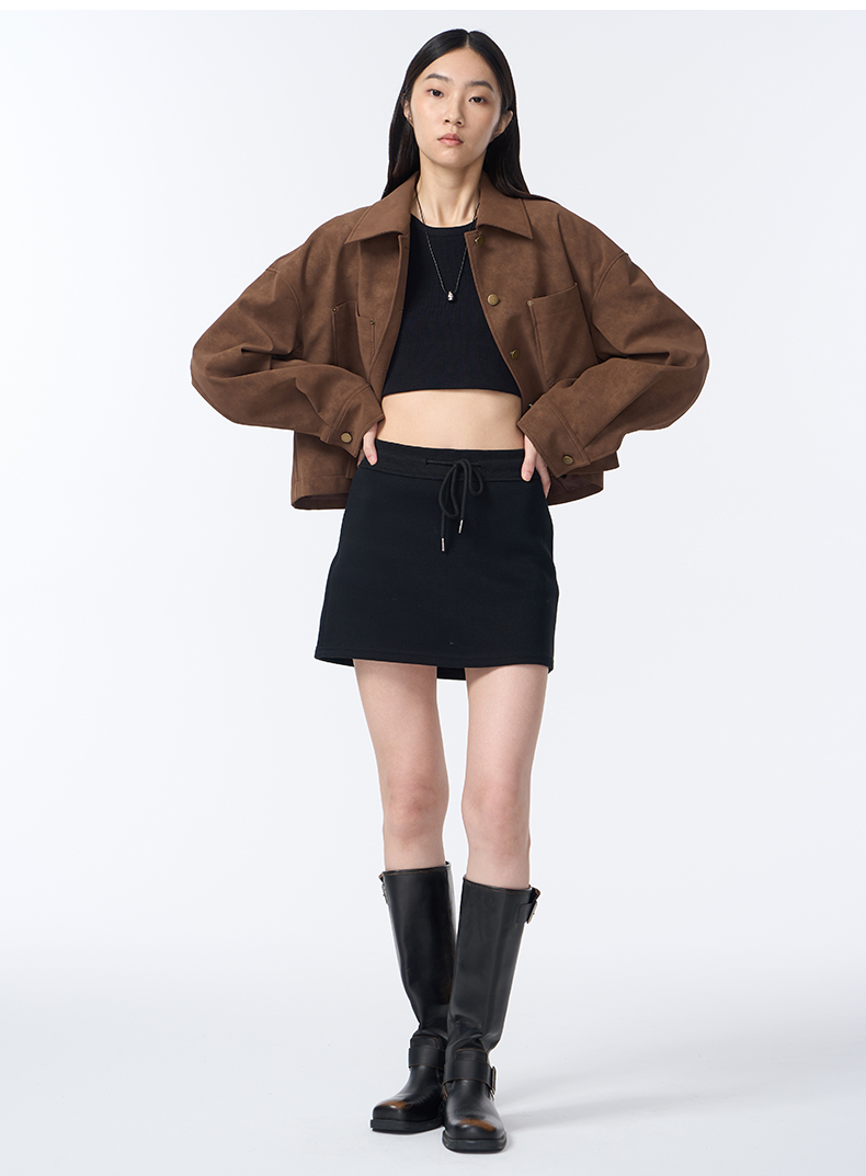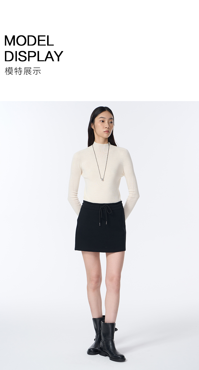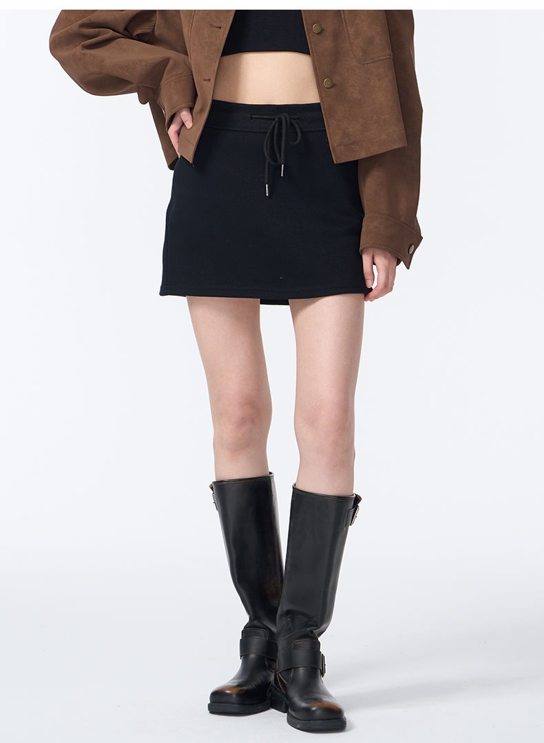 VIMAGE纬漫纪时尚抽绳系带松紧腰设计短裙V2406119