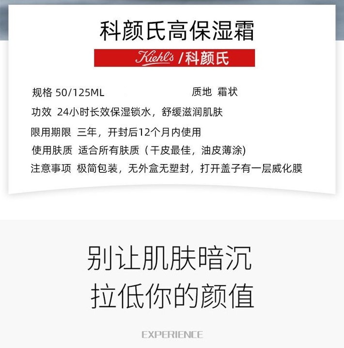 【保税仓】Kiehl's科颜氏第三代高保湿面霜125ml(效期27年4月)