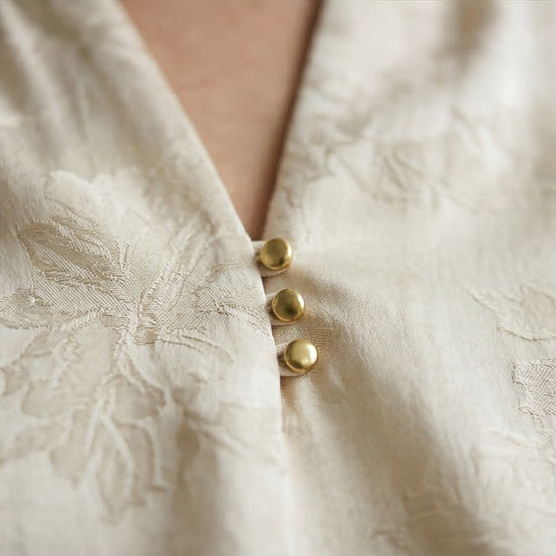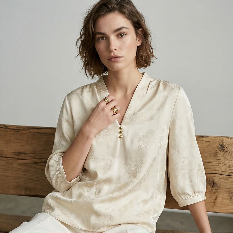 PALUOPO/PL桑蚕丝V领时尚暗纹提花宽松重磅真丝衬衫ES250765Z帕罗