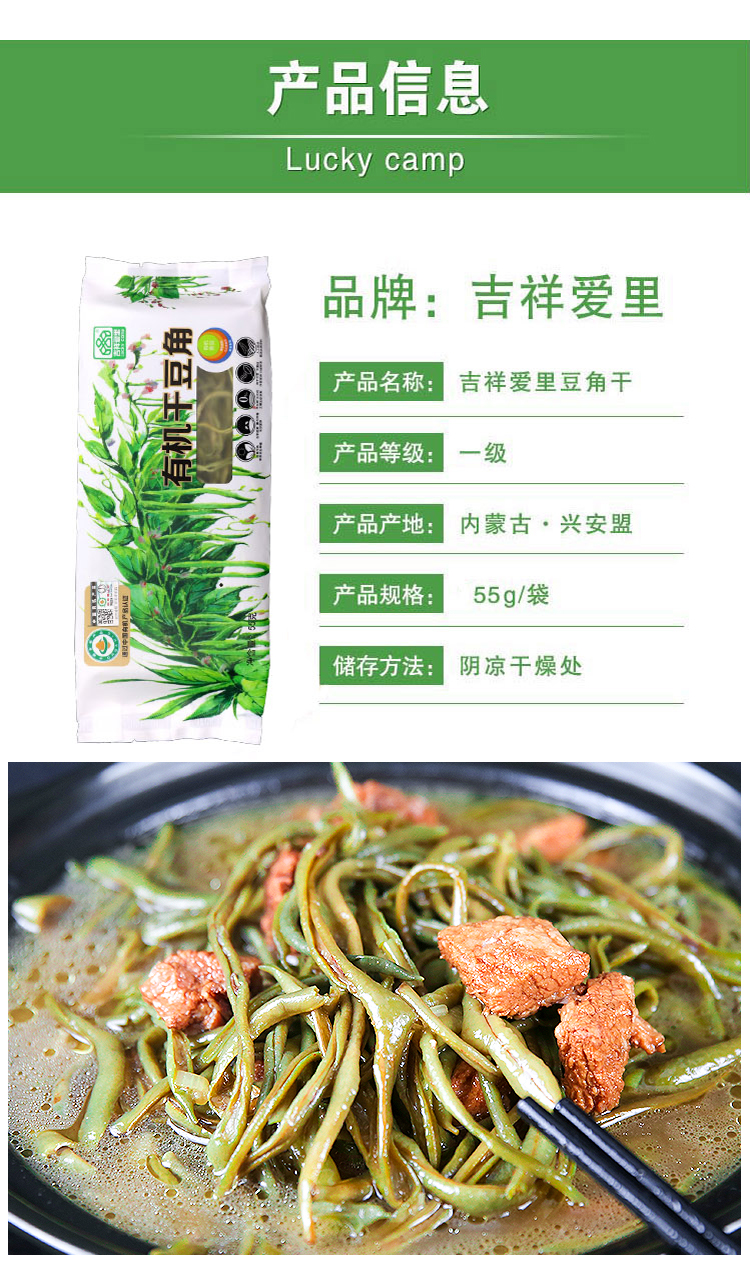 内蒙有机干豆角四季豆脱水蔬菜干货食材吉祥爱里55g /袋