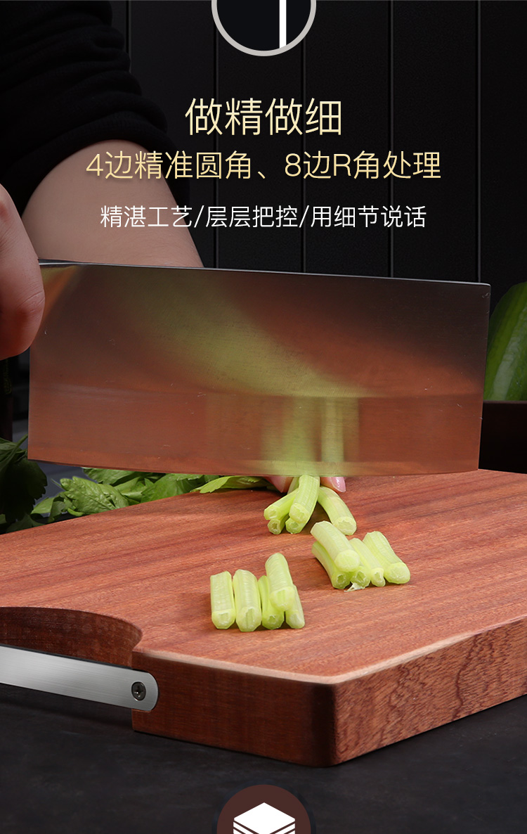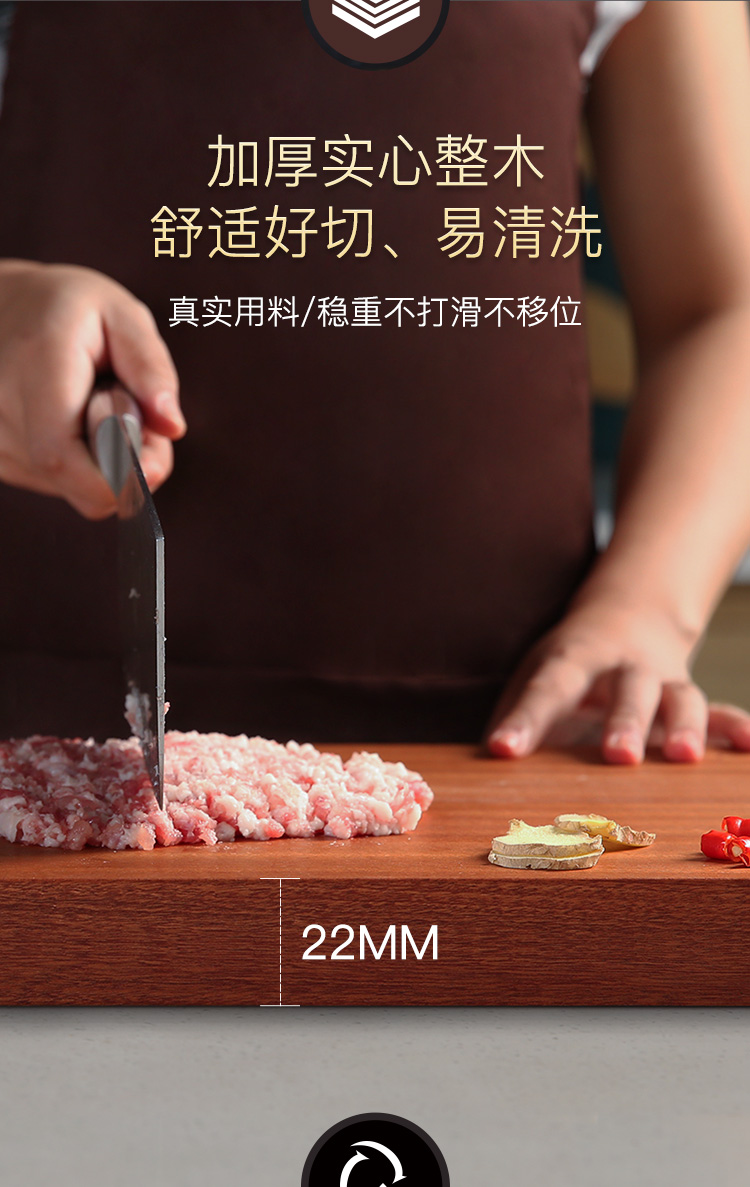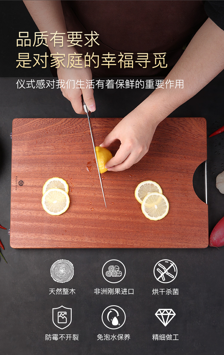4.优质乌檀木独特的自有刀痕修复功能,日常食用油护理,更耐剁耐用!