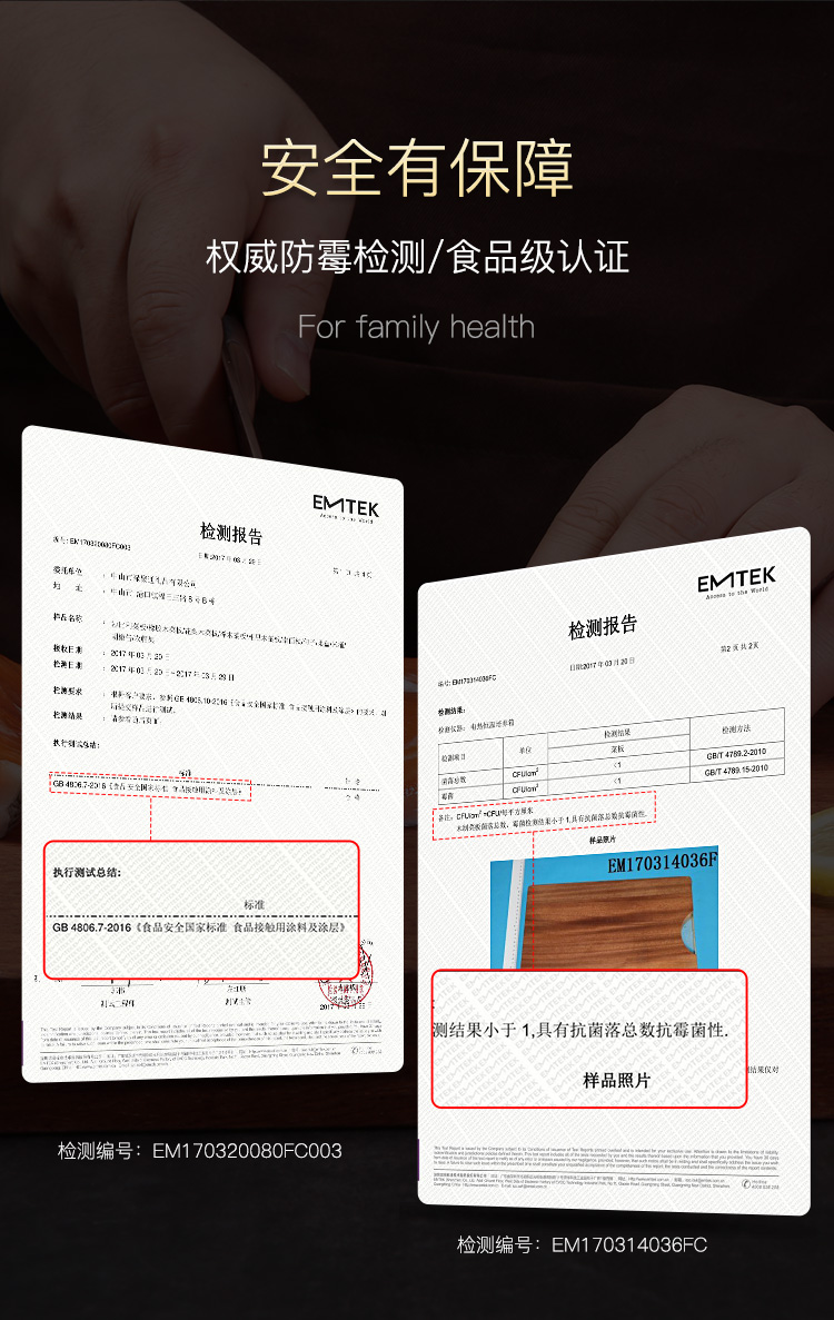 5.实木送检(非防霉抗菌溶液或涂层)通过食品级品质认证!