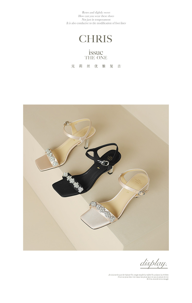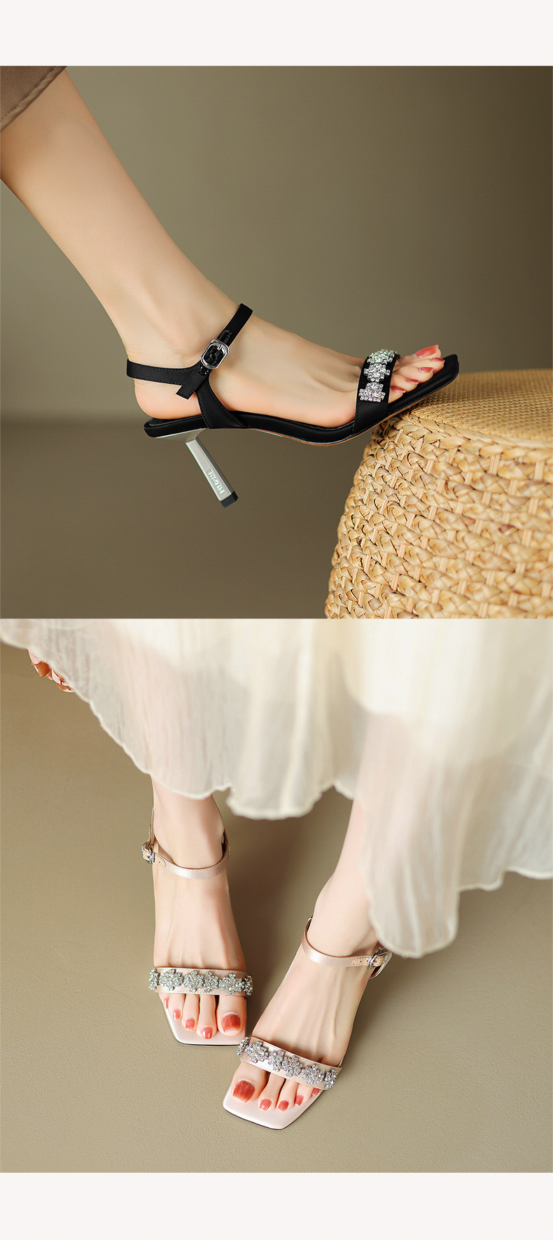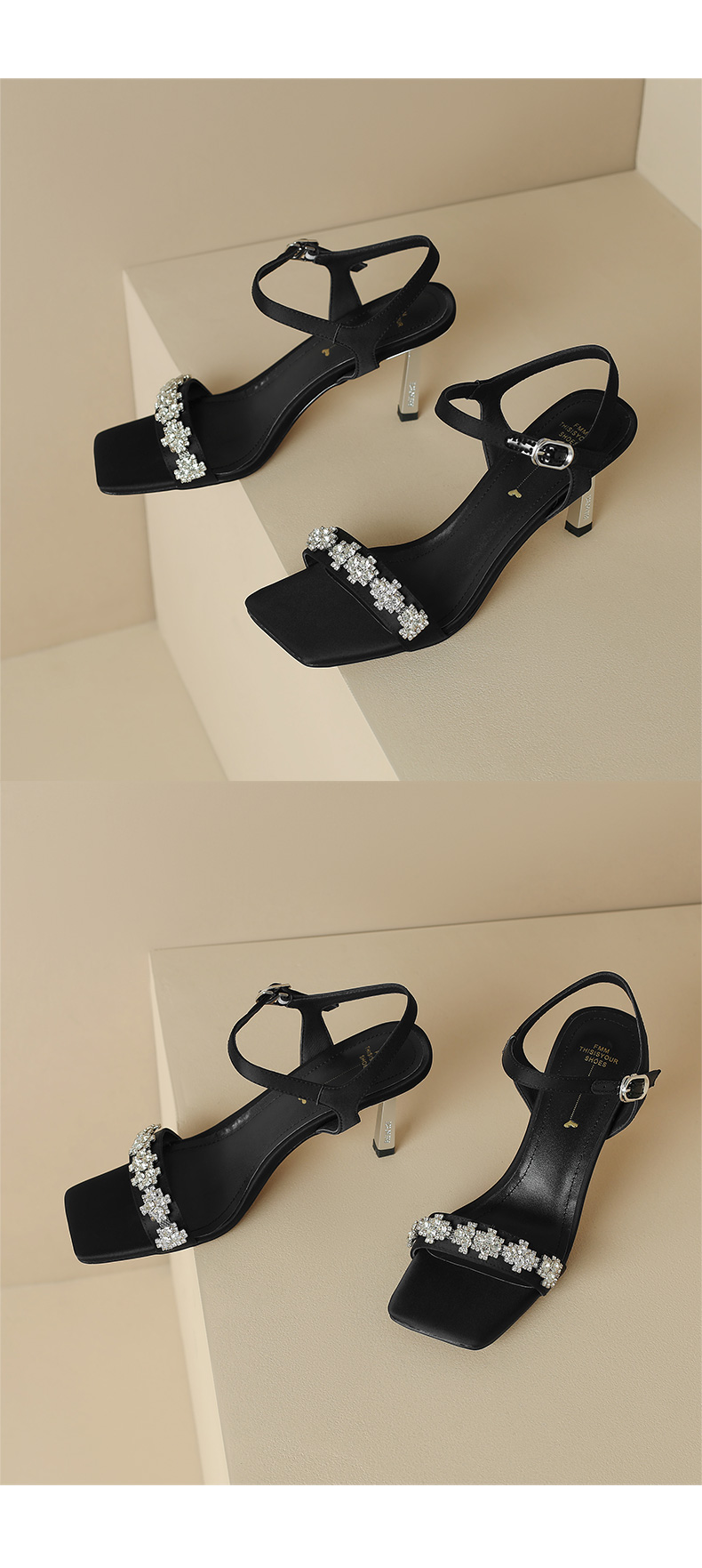 夏季新款,一字带钉珠高跟凉鞋HCY-3541
