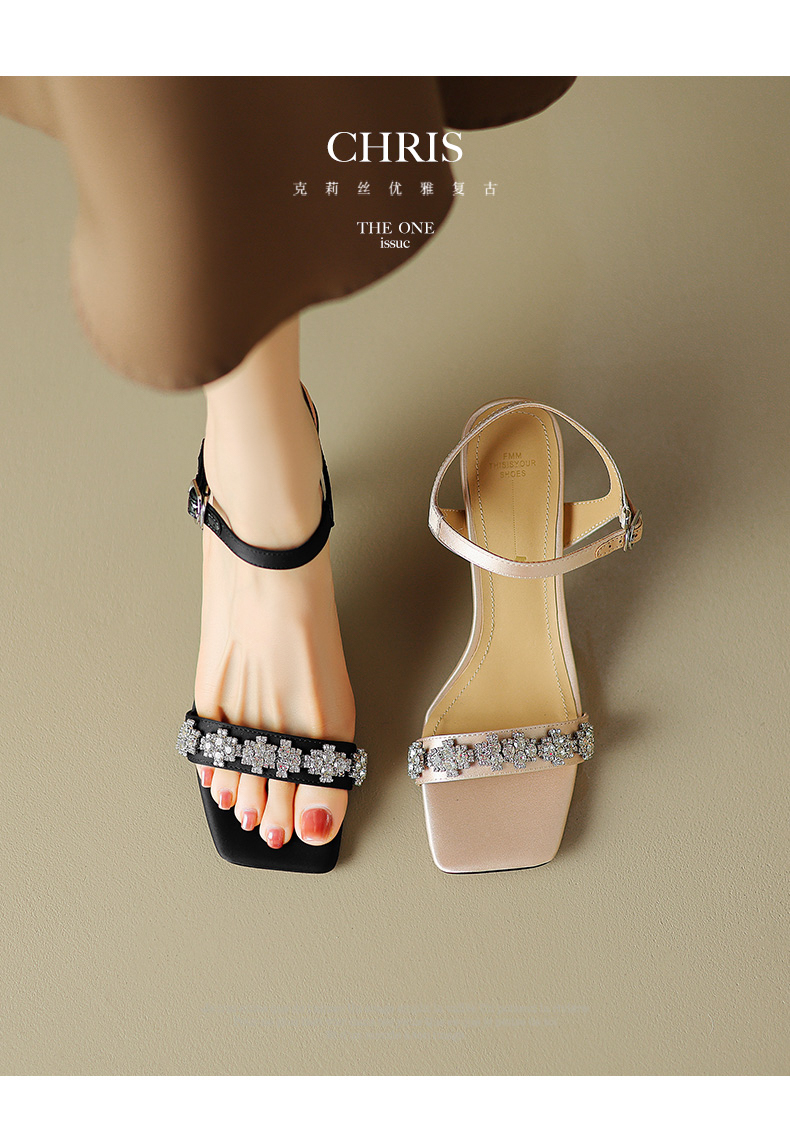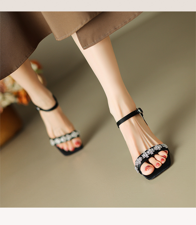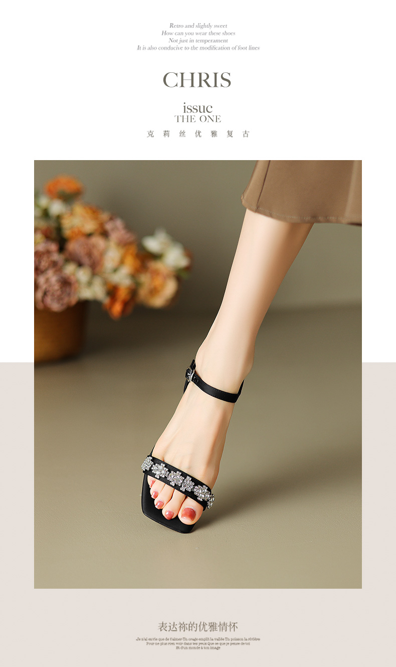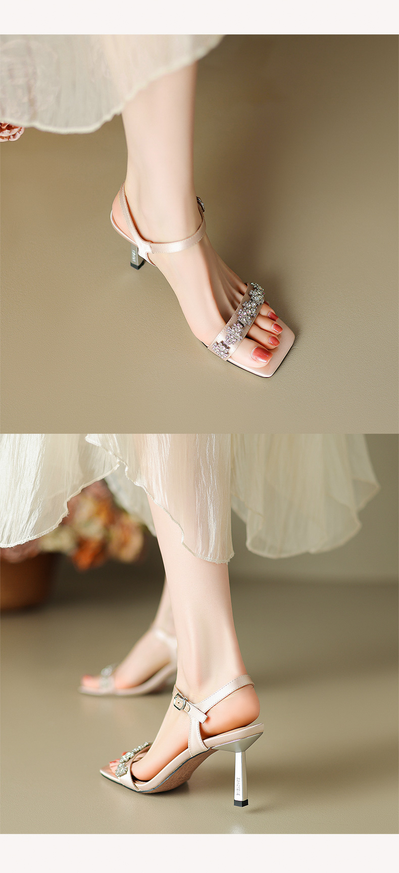 夏季新款,一字带钉珠高跟凉鞋HCY-3541