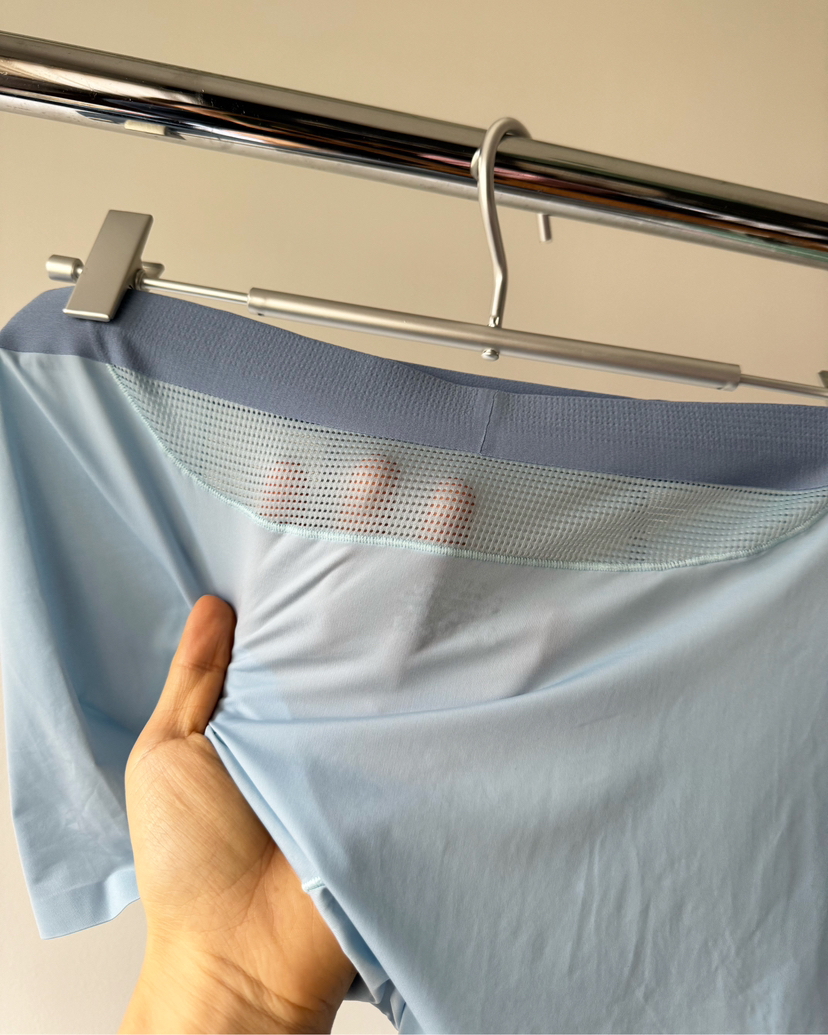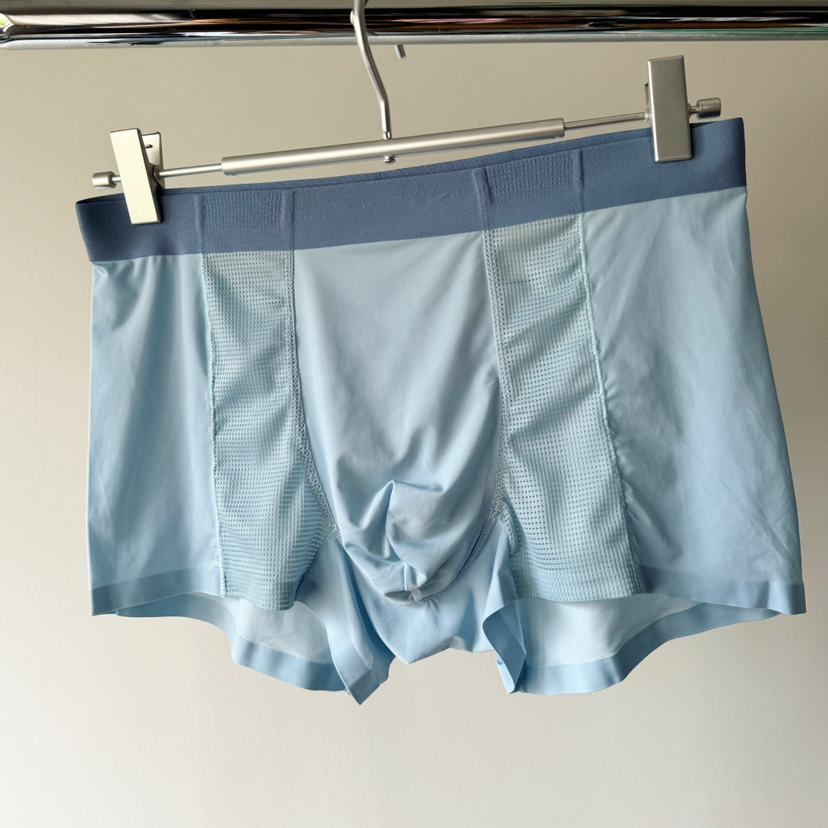 是专门为男士设计的凉感无痕内裤 ,体感的背后是科学,它又轻又薄 比普通内裤干的快 因为面料只有 100g/m2轻,减轻夏天的闷热感 清爽一整天,除了凉爽和抗菌 还能吸湿排汗,自带凉感 吸湿排汗 长效抗菌,里贴采用天丝和蚕丝面料 富含18氨基酸 天然纤维透气亲肤 洗涤100次以上 依然抗菌 ,无痕腰头 无痕裸边 平整贴合,采用一片式的剪裁 防跑位更防夹臀,凉感技术 把热传递到更低温的面料上 身体就获得了持续的凉感,爱运动 易出汗 一条吸汗快的透气内裤是必备的