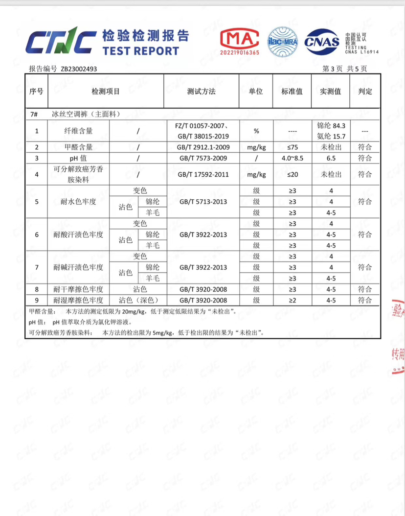 里裆:85.8%粘纤 8%蚕丝 4%氨纶 2.2%锦纶