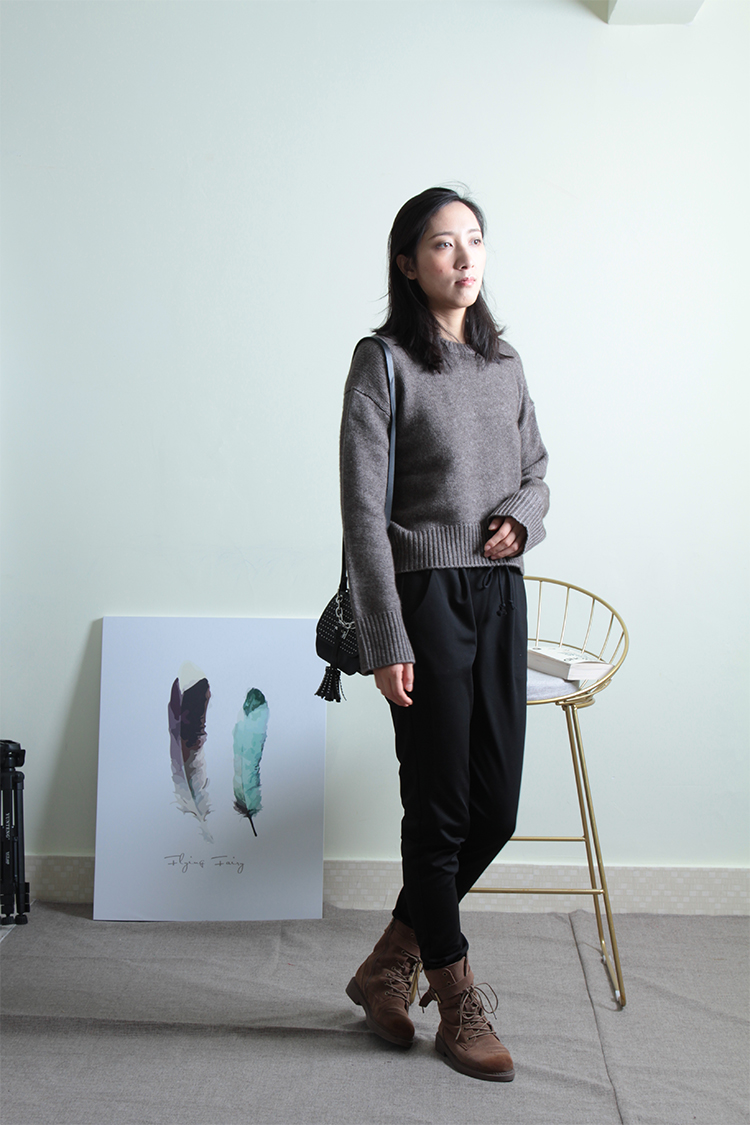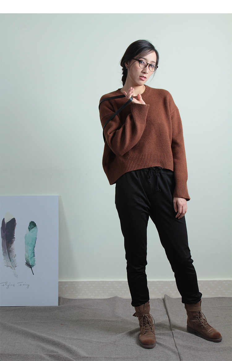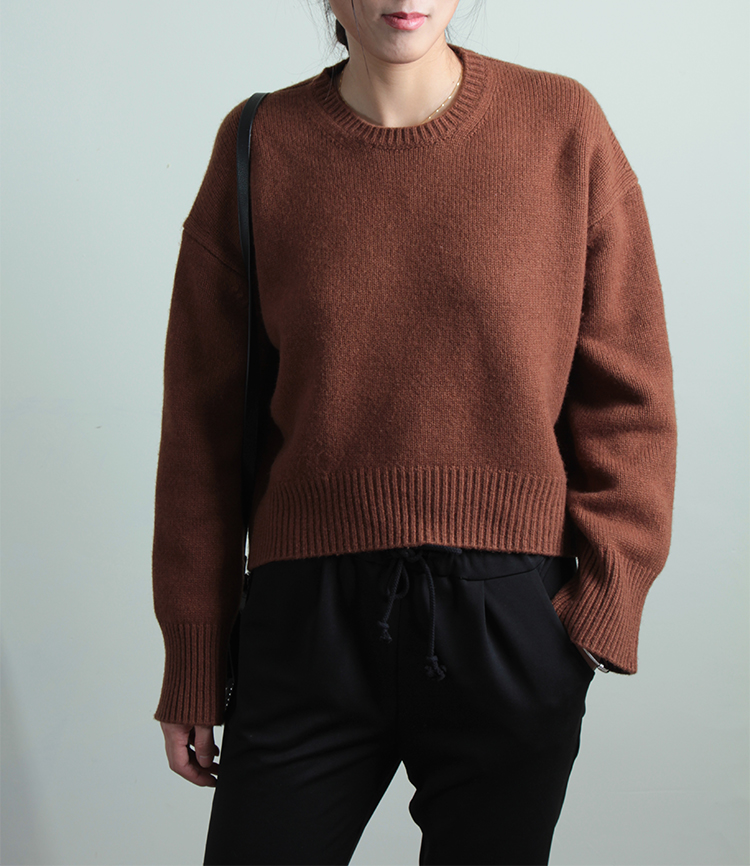 丁摩 牦牛绒低圆领厚实高绒宽松有型针织衫1001WX-145