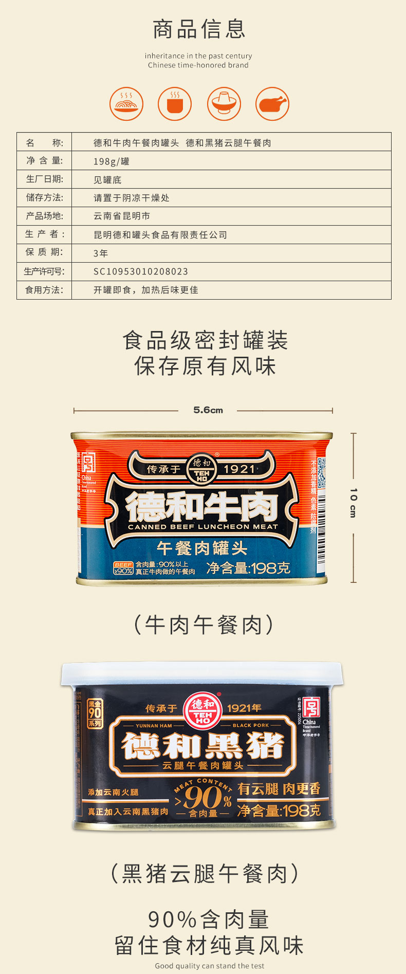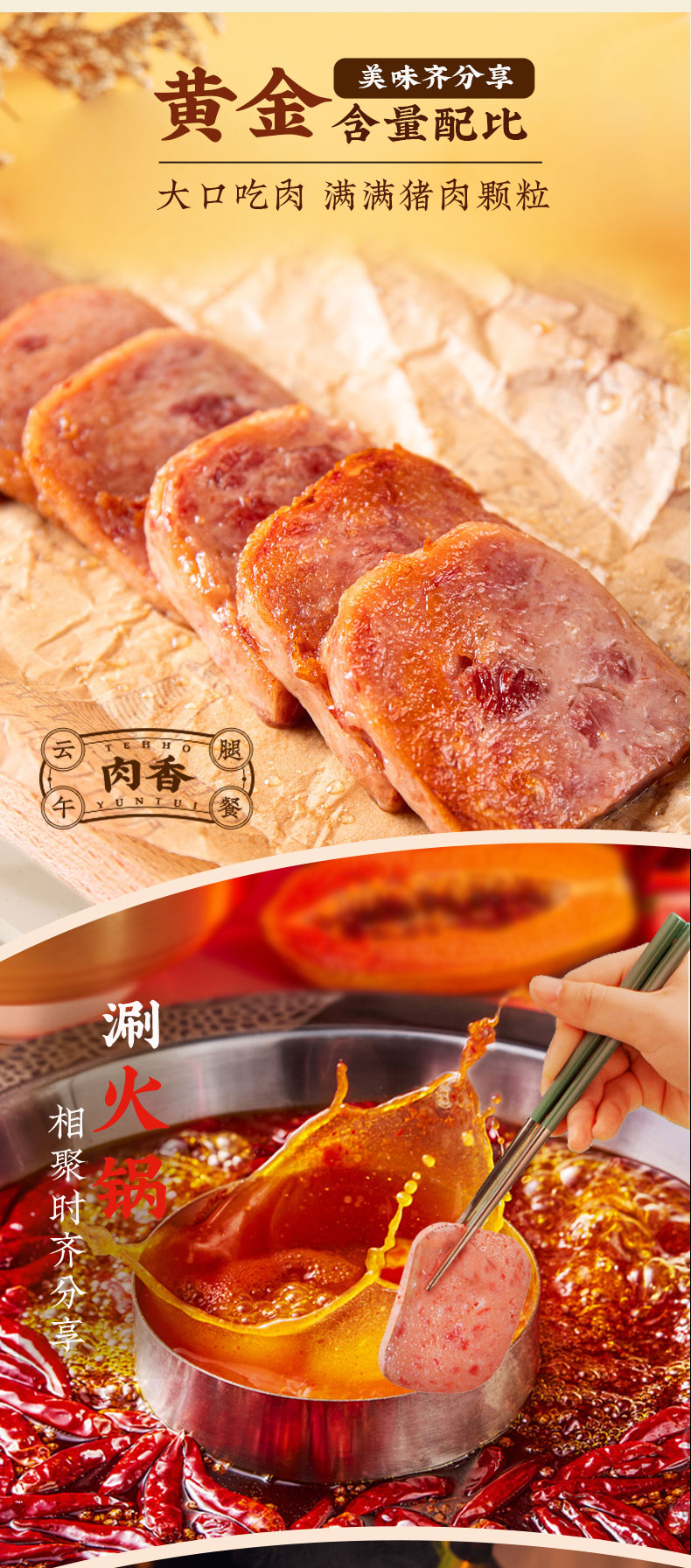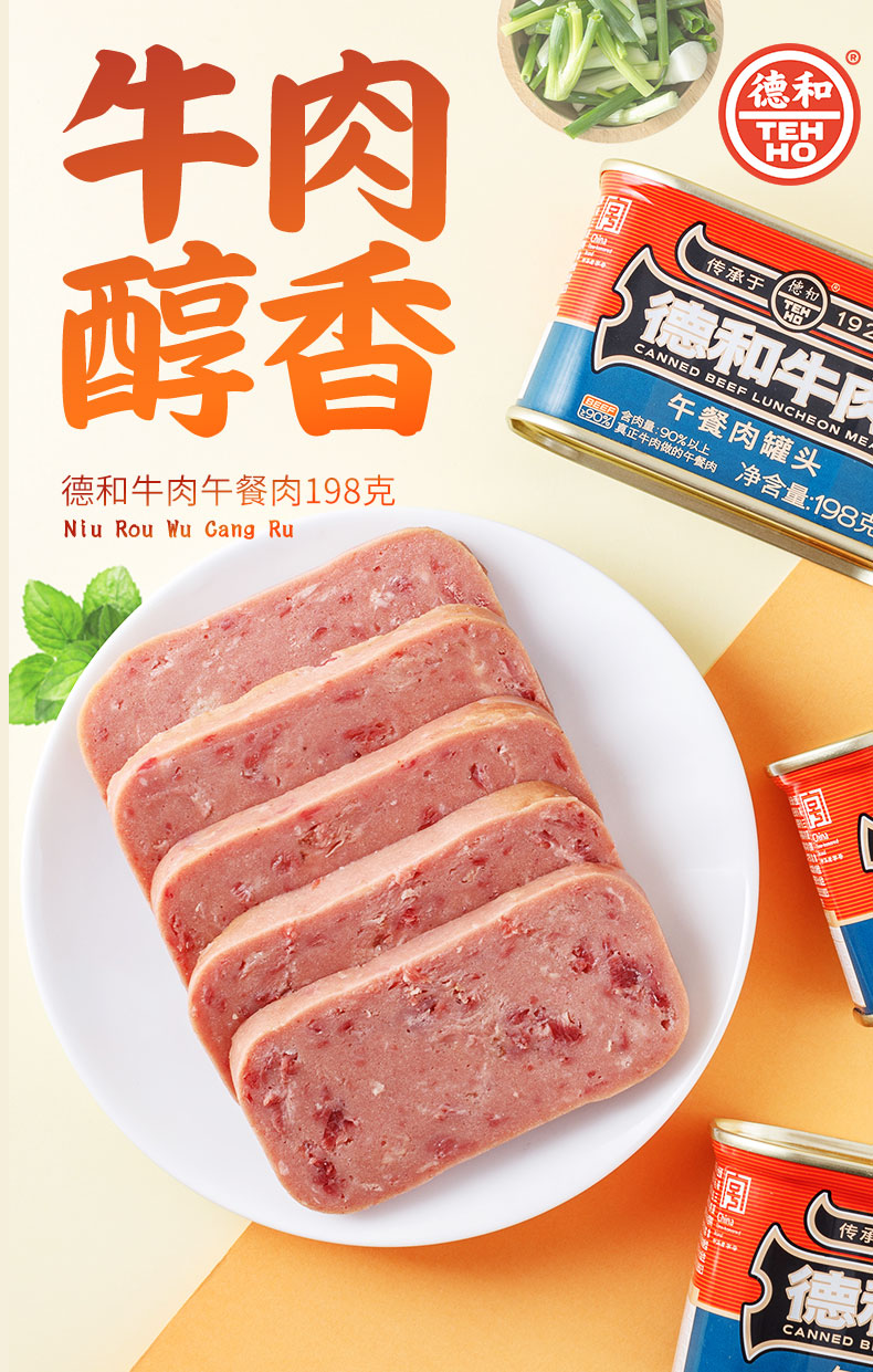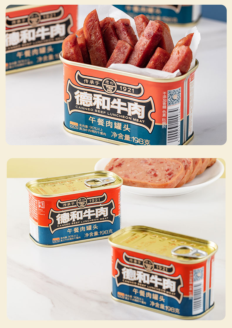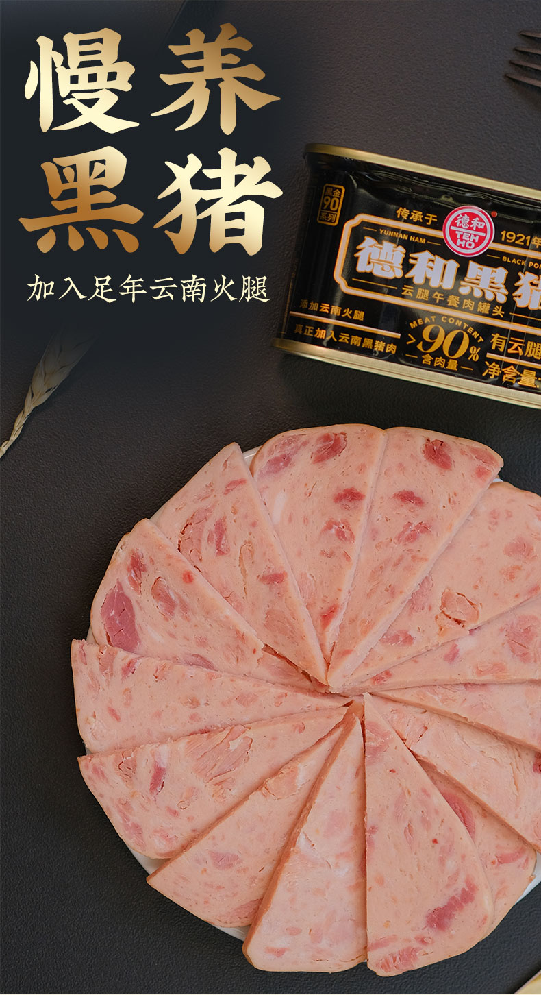 【XFun吃货俱乐部】德和午餐肉罐头 黑猪云腿午餐肉 牛肉午餐肉方便速食火锅螺蛳粉食材搭档#午餐肉