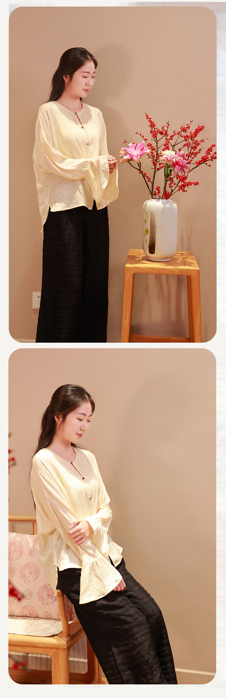 【直播间专属】蜀锦紫霞飞•新中式衬衣(25710021白玉-高定款)