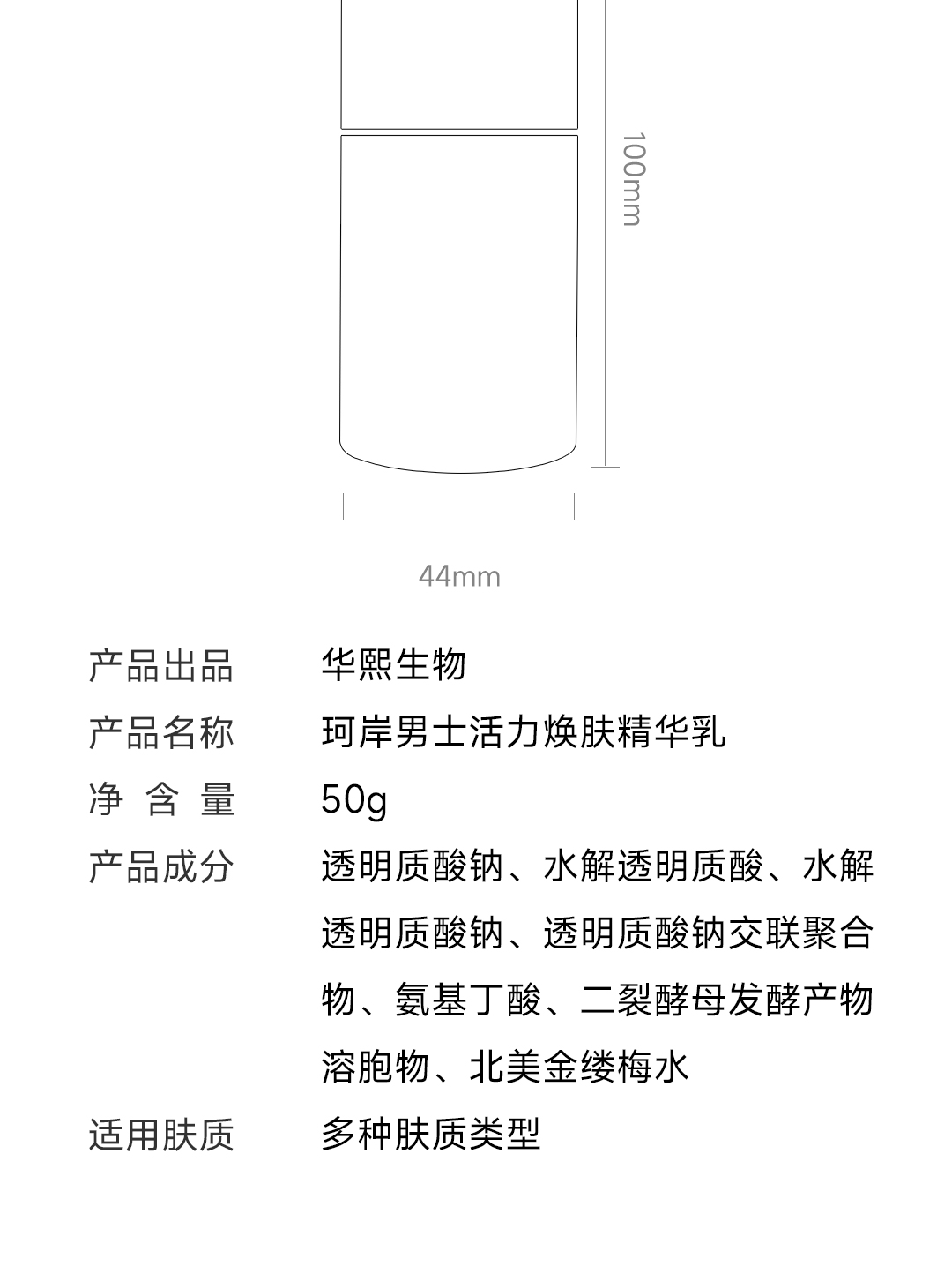 【华熙生物】小米华熙生物珂岸男士面霜智慧玻尿酸滋润三合一精华乳保湿控油乳液50g*1