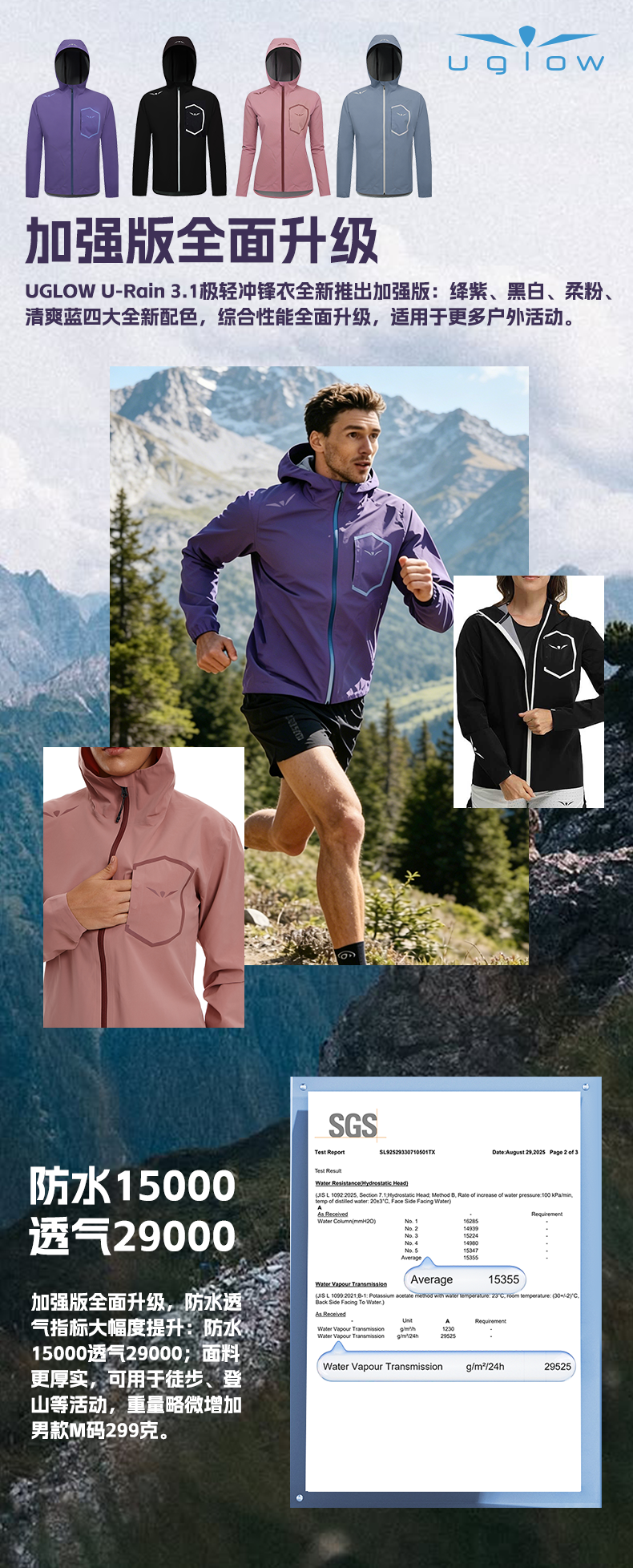 UGLOW极轻冲锋衣 U-Rain 3.1新款面料升级男女款跑步运动户外健身跑马拉松比赛训练越野跑装备上衣(双兜款、渐变款有赠品)