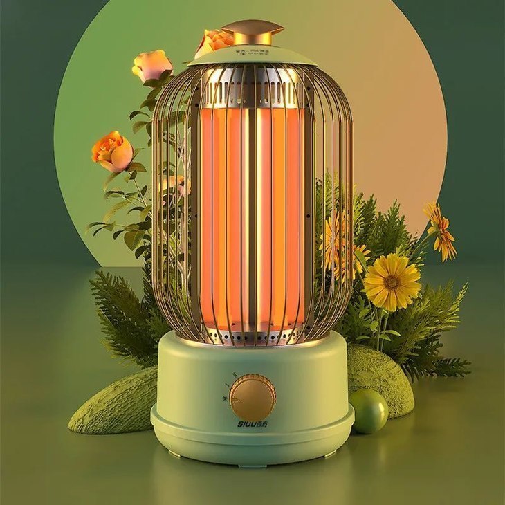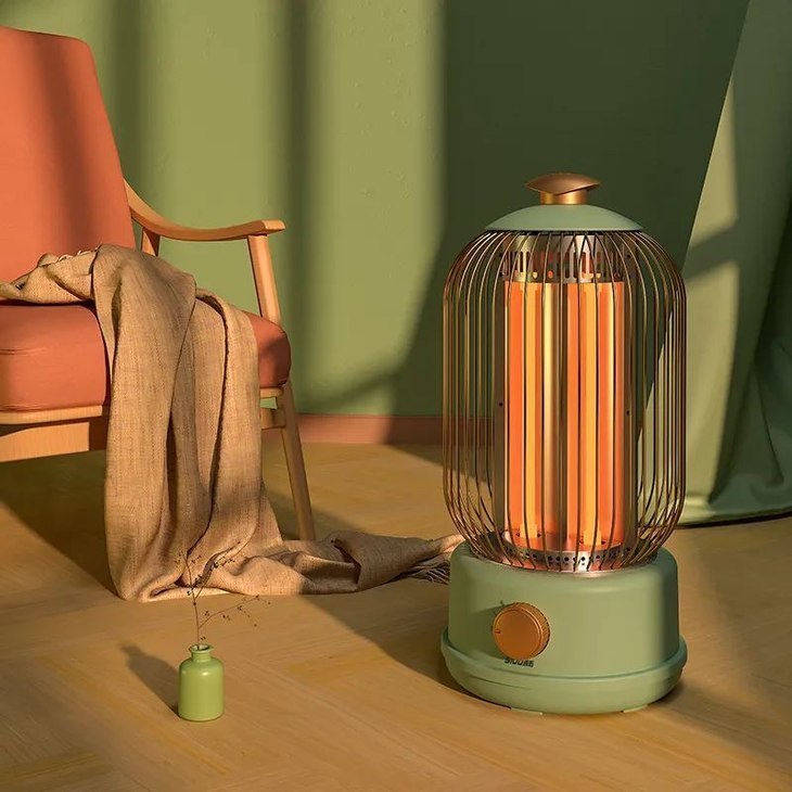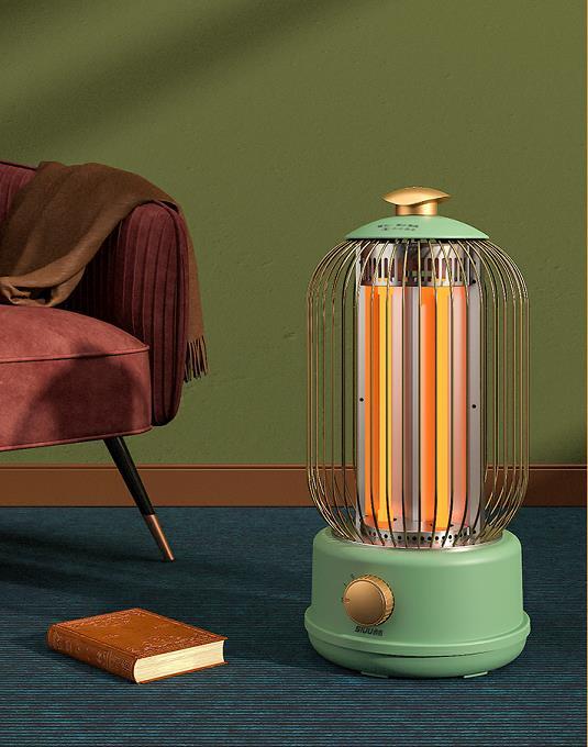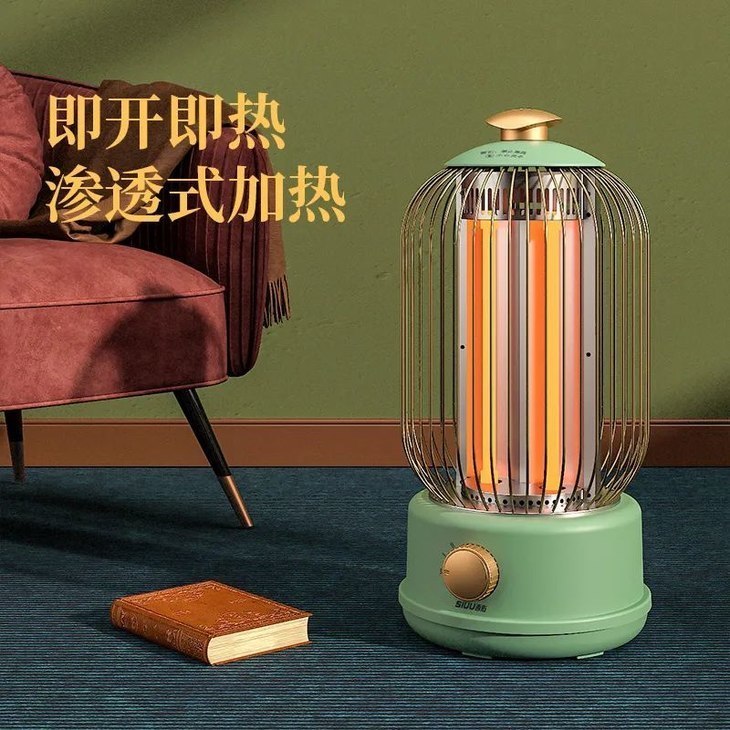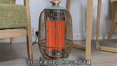 西佑这款鸟笼取暖器采用「红外碳纤维发热」,靠和人体一致的辐射波长被吸收之后加剧细胞振动,让人体温度上升。