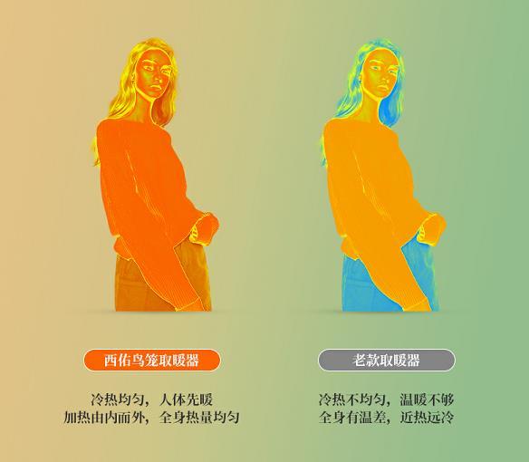 传统取暖器是把环境变热,再让环境把热量传递到人体,自然又慢又耗电。