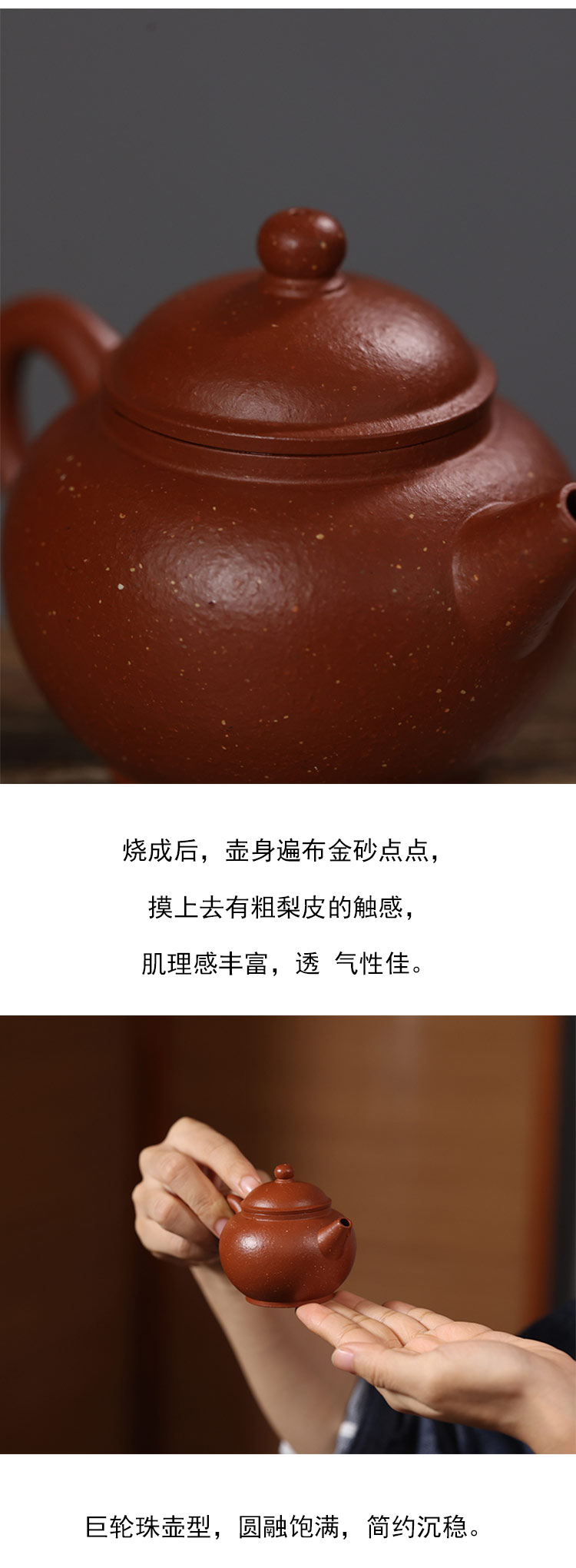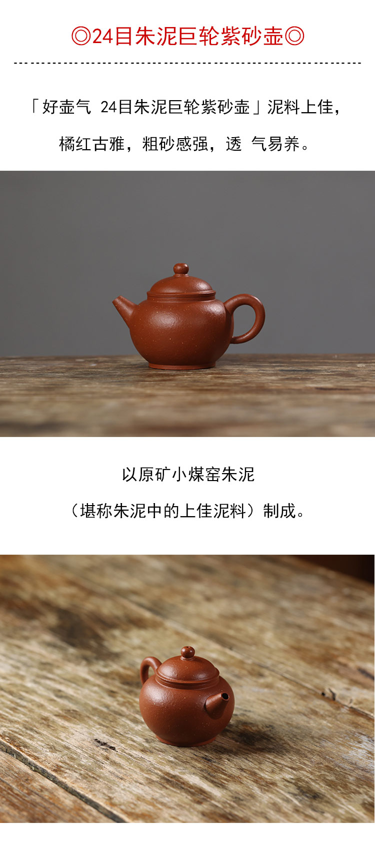 茶香记 好壶气 24目朱泥巨轮紫砂壶 茶壶 小煤窑朱泥 橘红古雅 简约实用