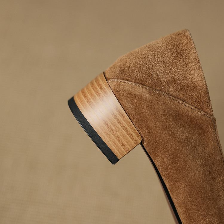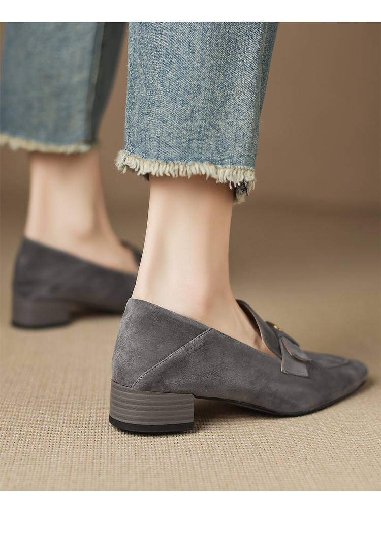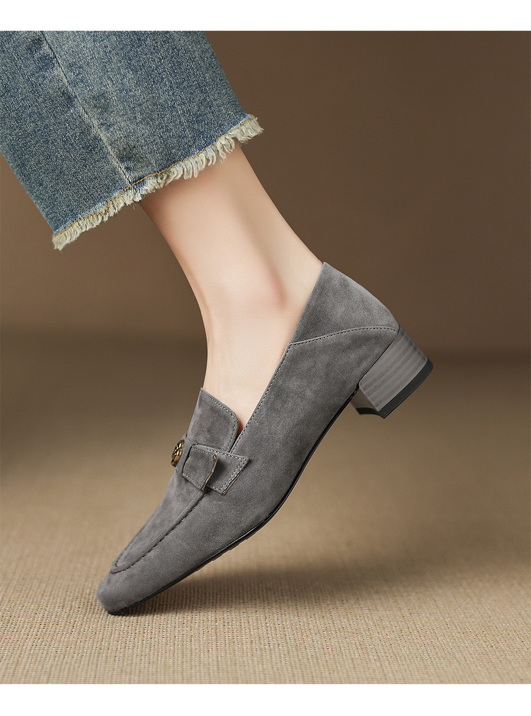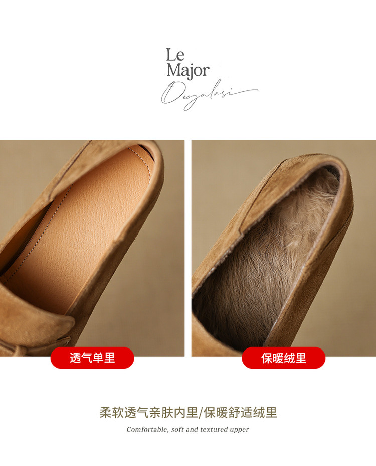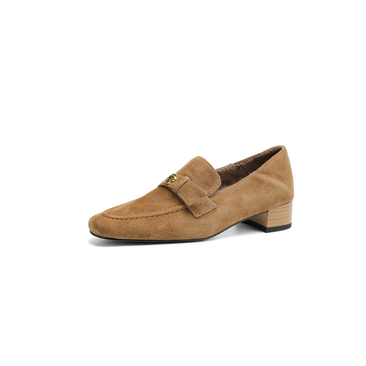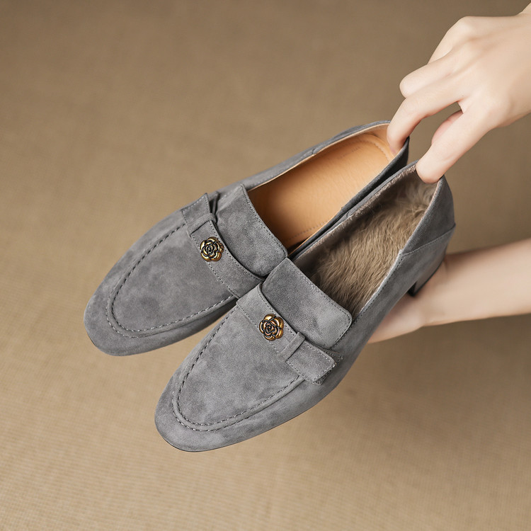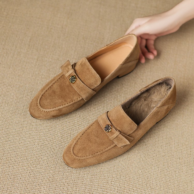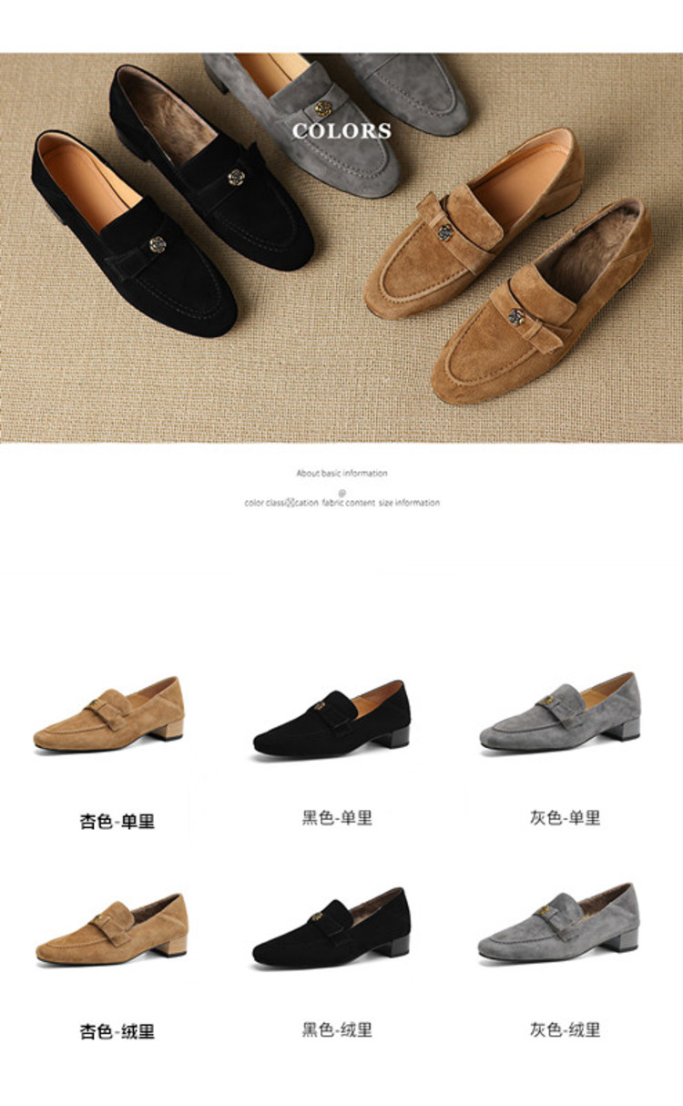 【预售5天】羊皮版~复古法式美拉德山茶花乐福鞋女一脚蹬粗跟浅口单鞋小皮鞋NGMZR&72-237
