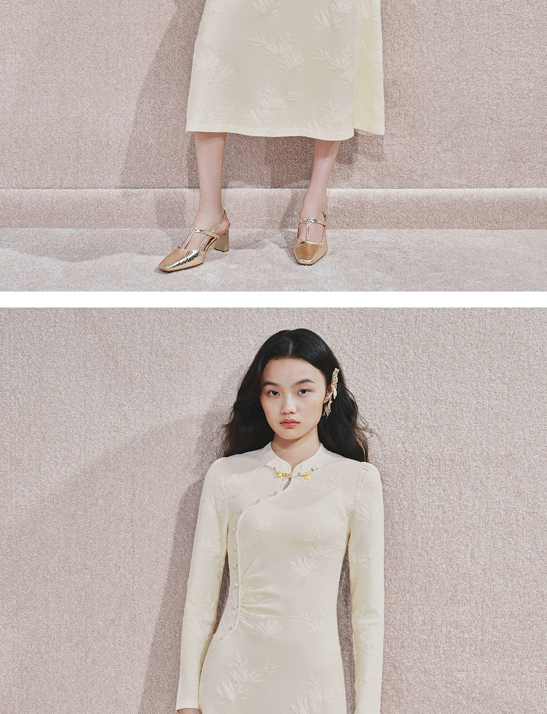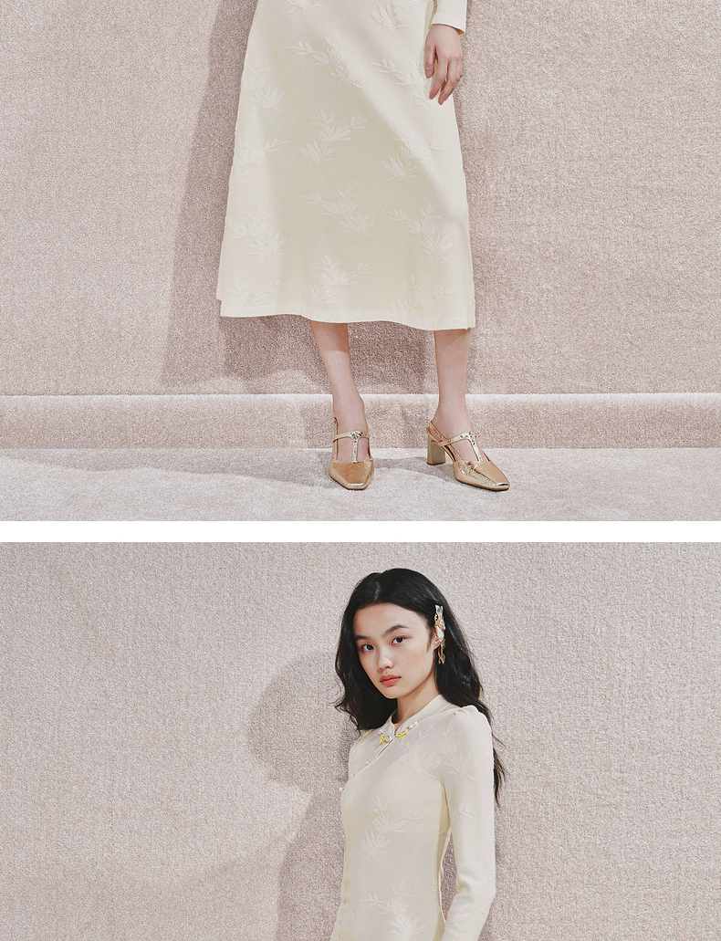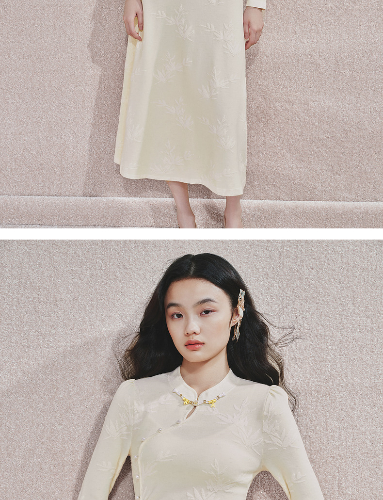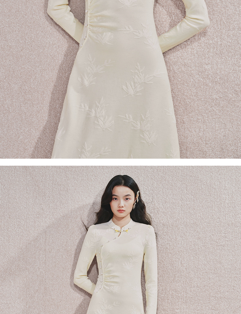 [东方新摩登]MAXRIENY雪竹针织裙贵雅新中式提花长裙2024秋冬新款(货号:MS85DR510)