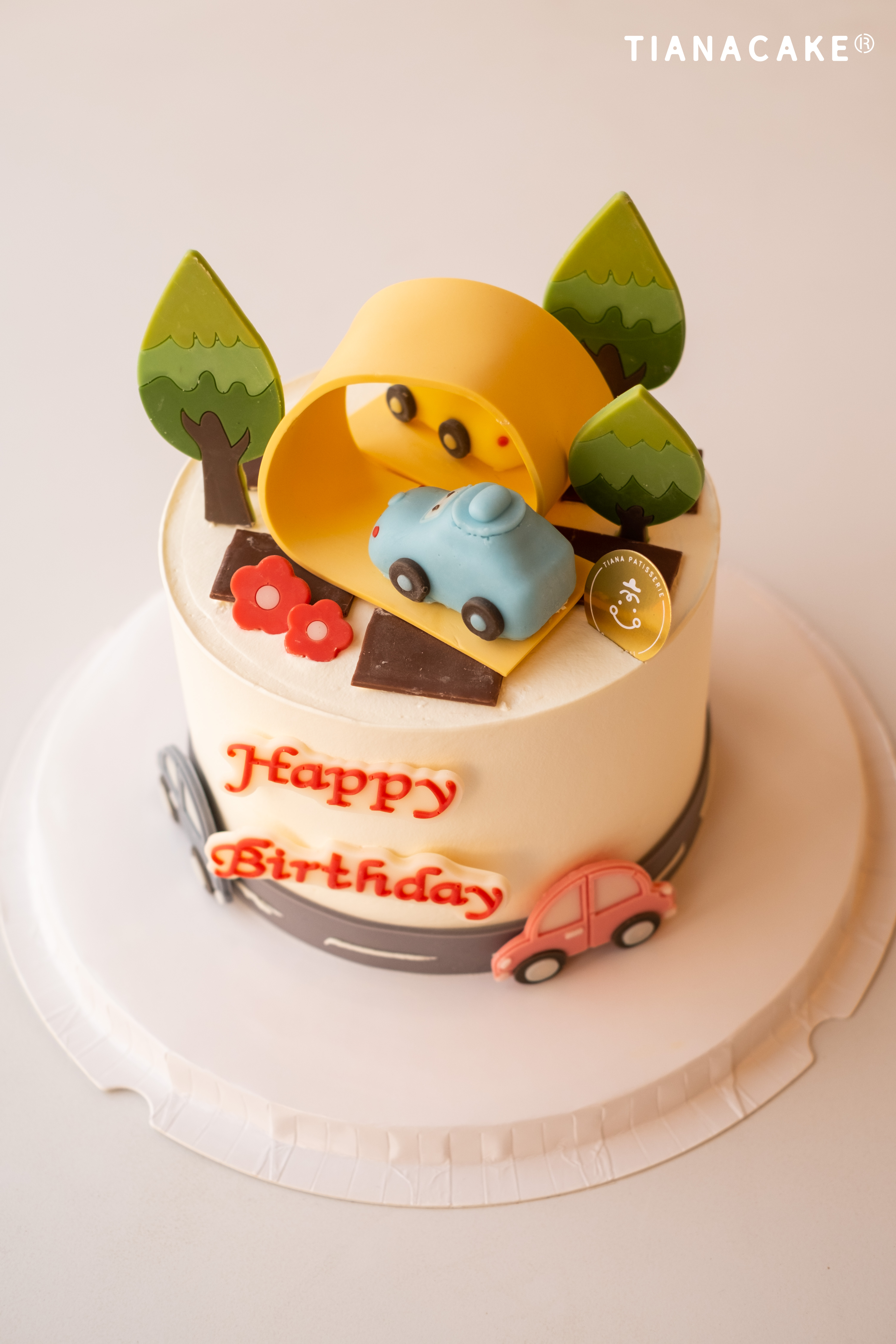 此款蛋糕装饰是巧克力插牌和翻糖