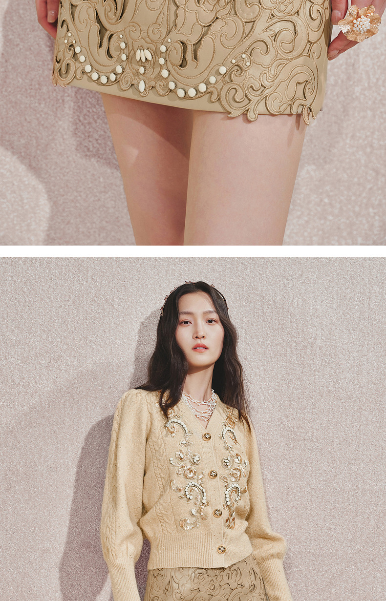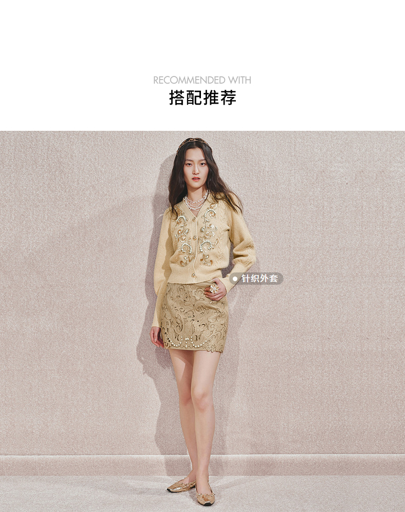 【宫廷巴洛克-商场同款】MAXRIENY华丽宫廷钉珠半裙24冬新款短裙(货号:MC85SK552)