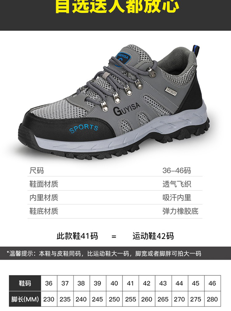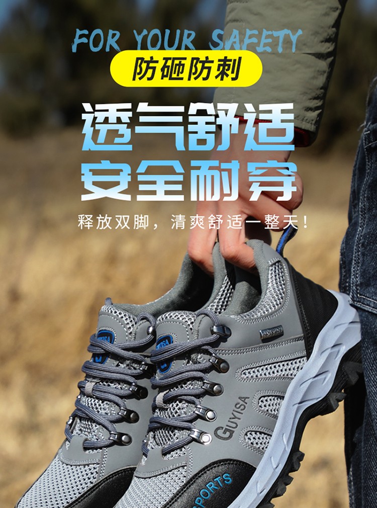 夏季透气劳保鞋男安全工作鞋防砸钢包头防刺穿耐磨运动休闲登山款防护功能鞋 【舒适百搭】【防砸防刺穿】