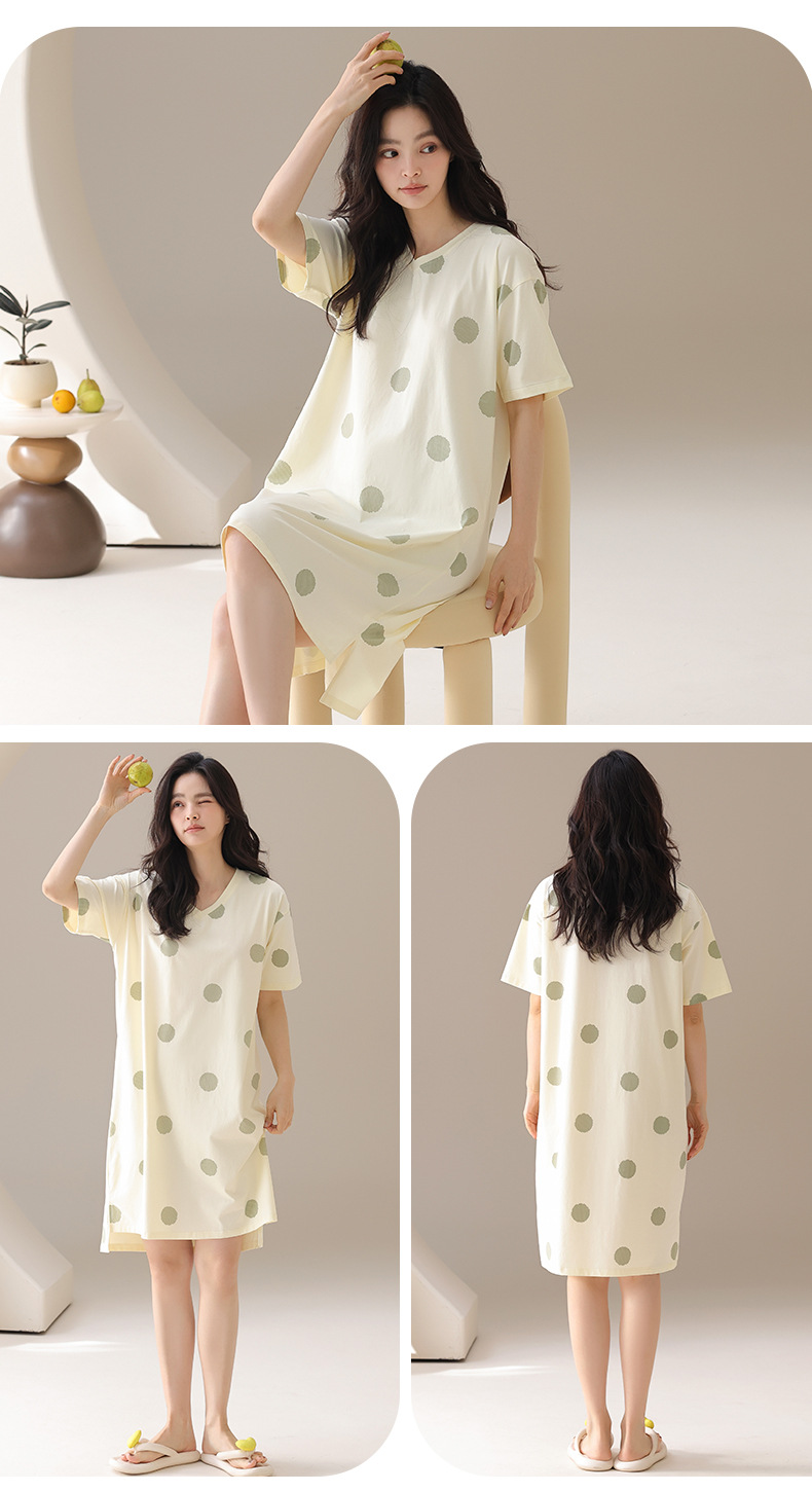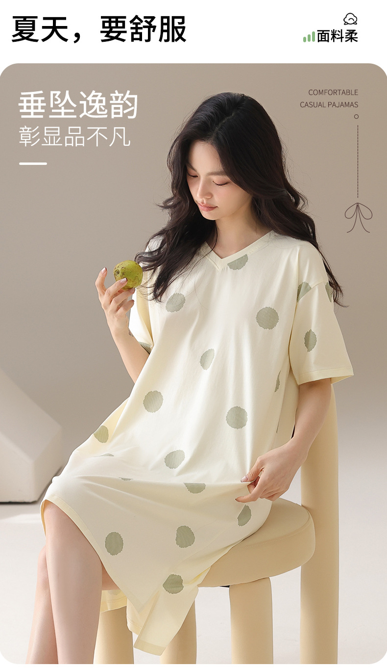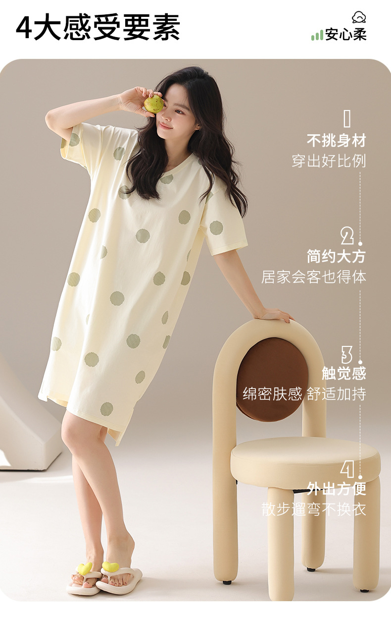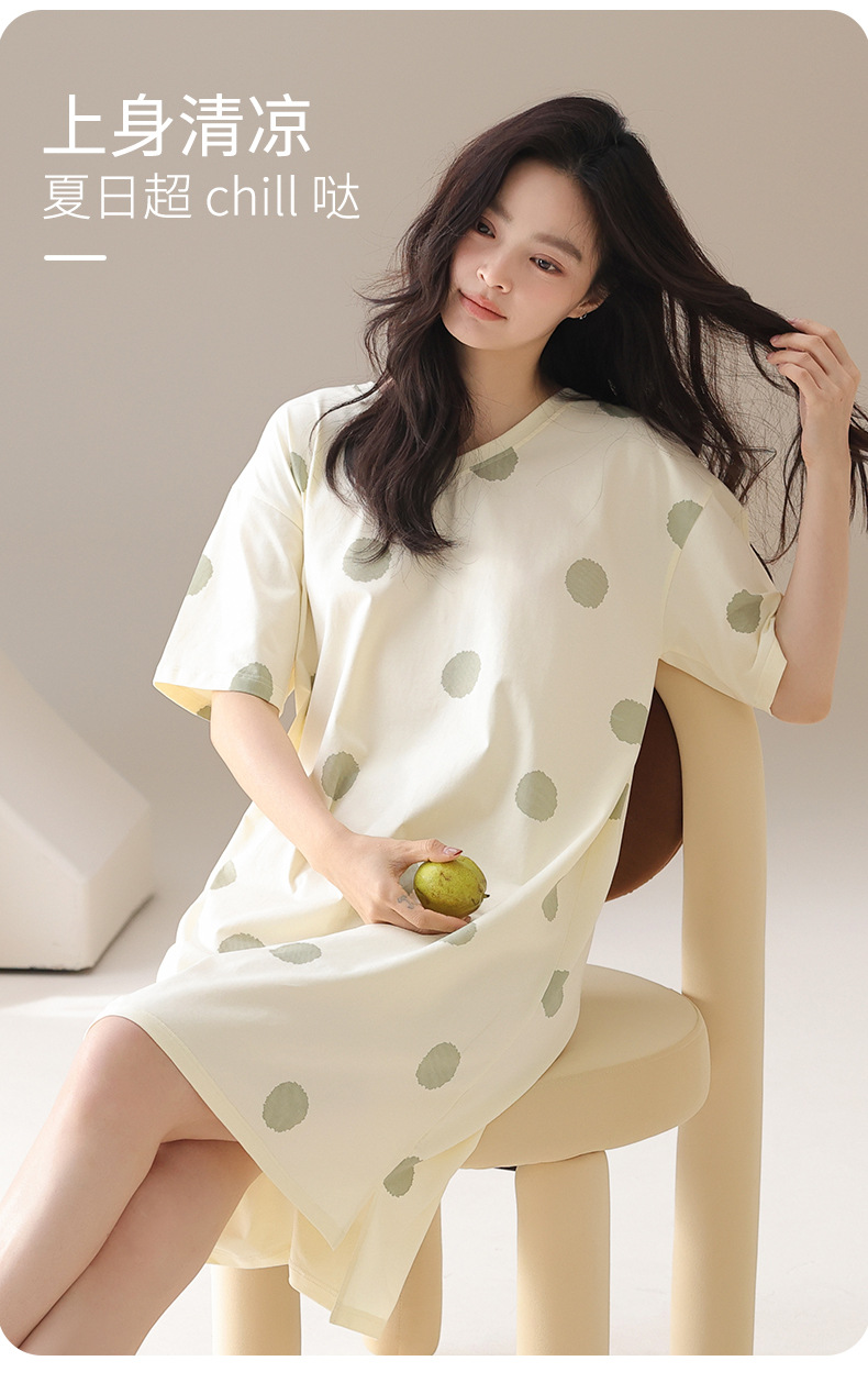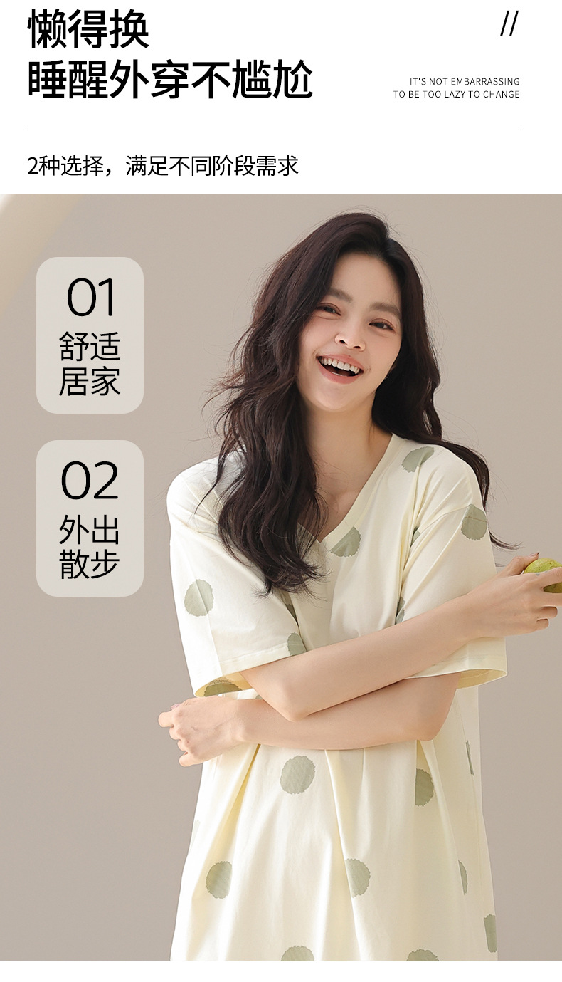 丁摩 大码睡裙女夏季薄款半袖波点中长裙外穿甜美可爱女士【棉+莫代尔】睡裙5ZF- 22581
