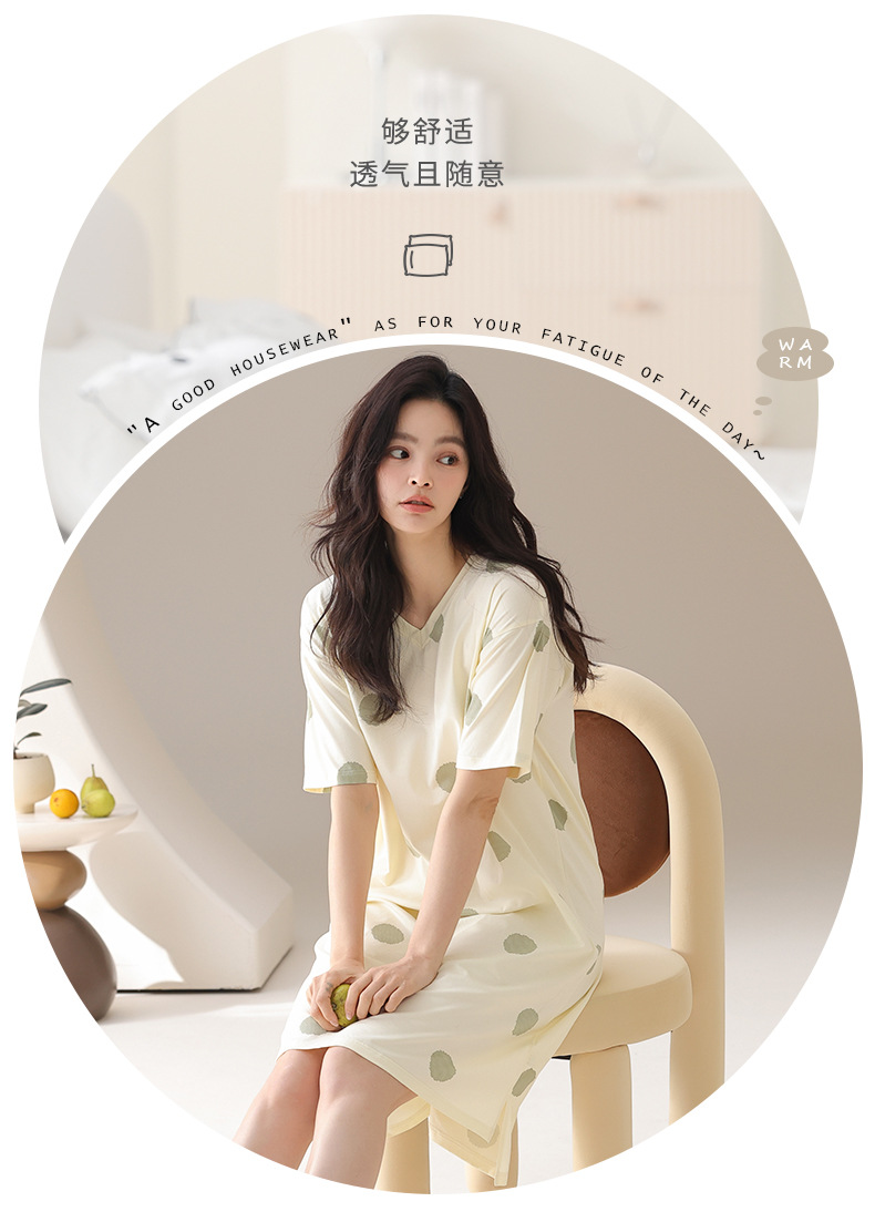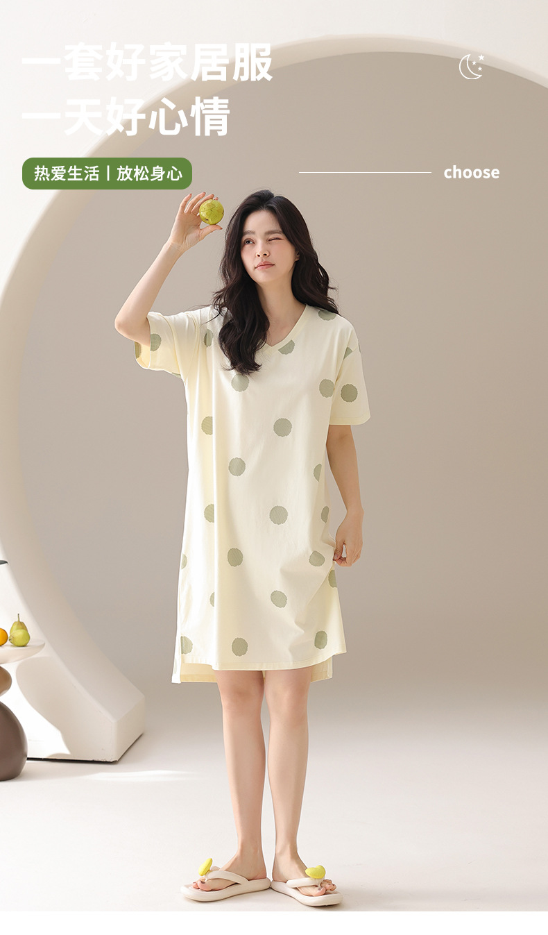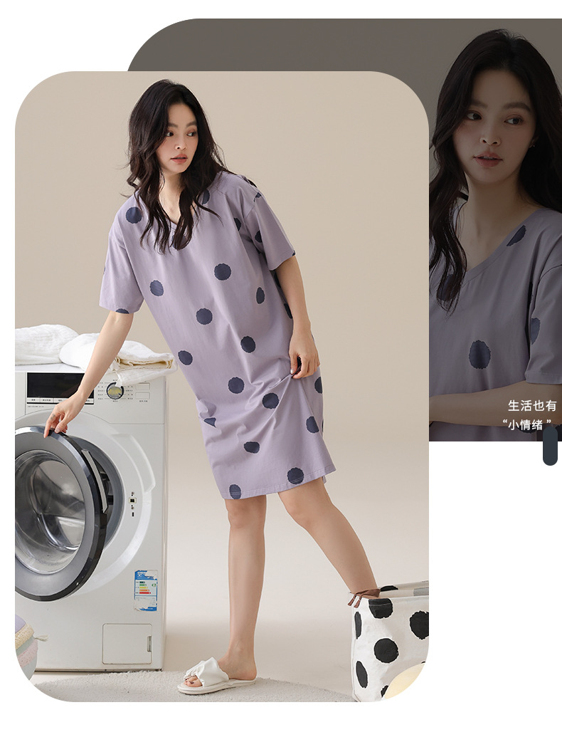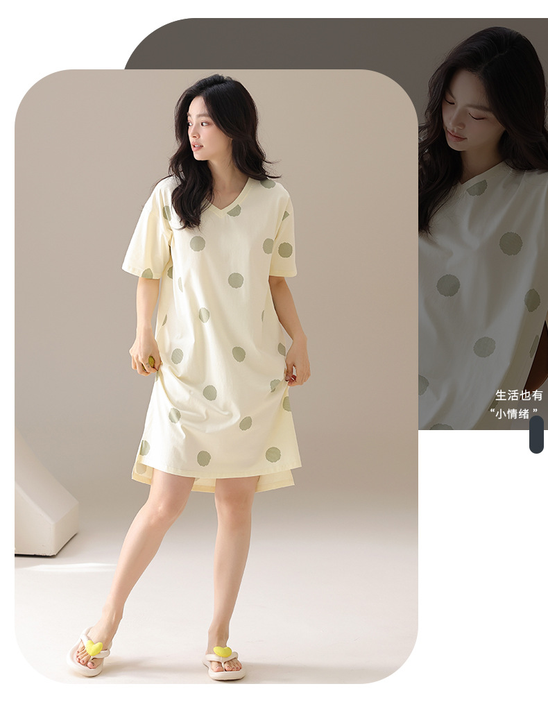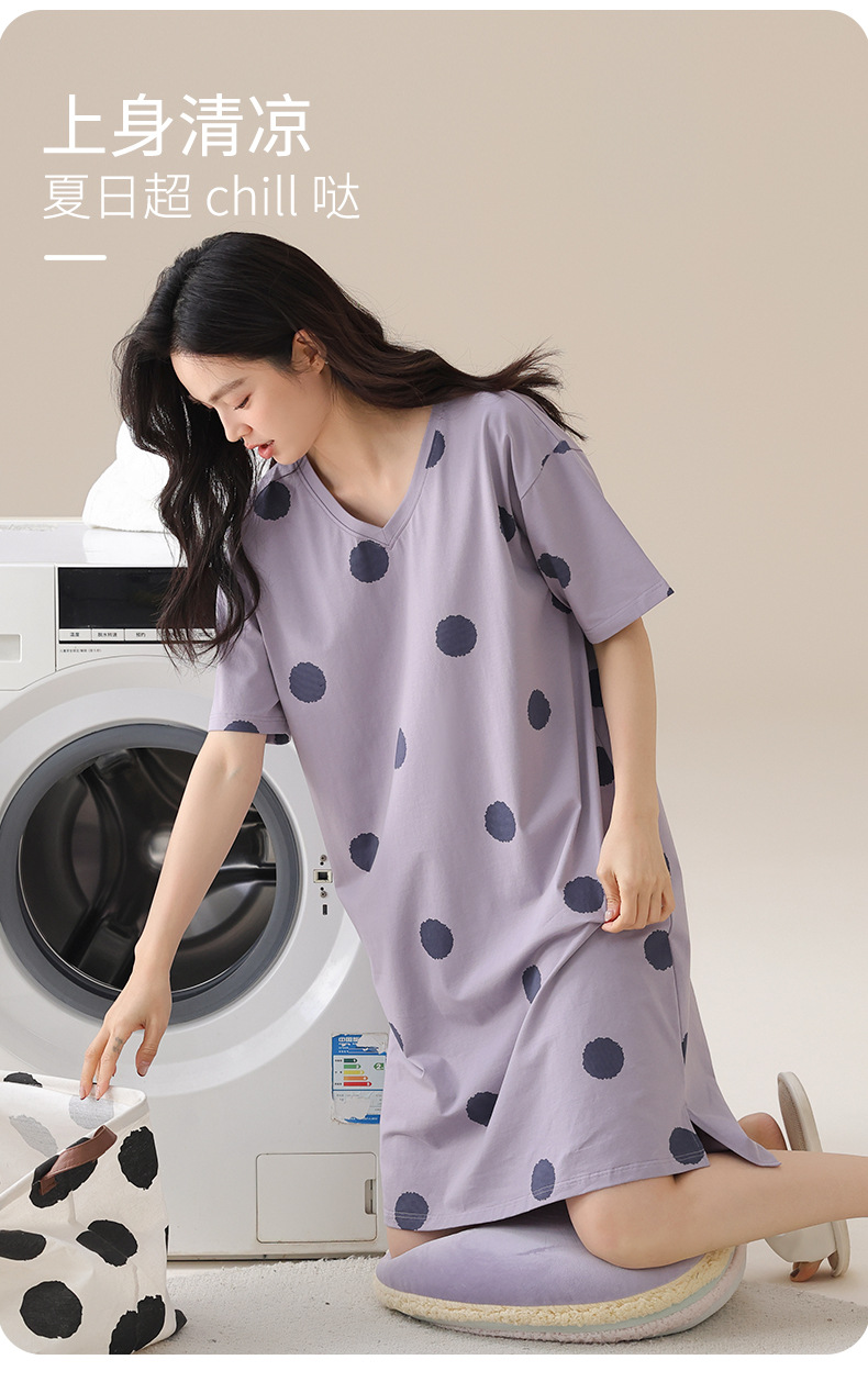 丁摩 大码睡裙女夏季薄款半袖波点中长裙外穿甜美可爱女士【棉+莫代尔】睡裙5ZF- 22581