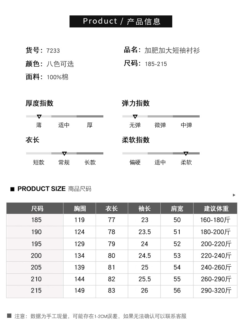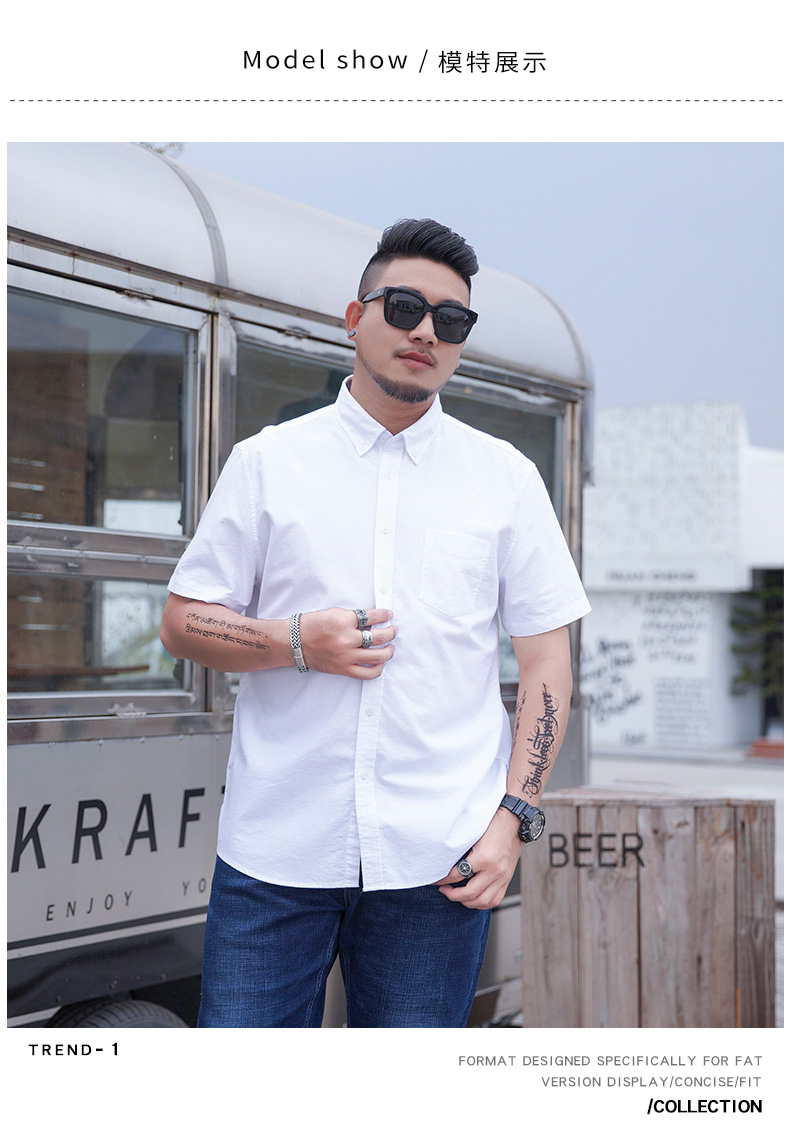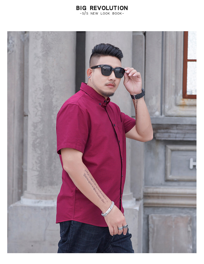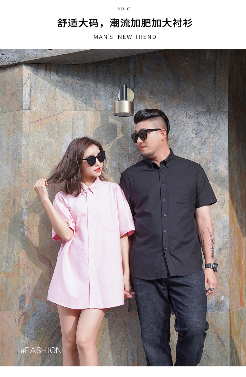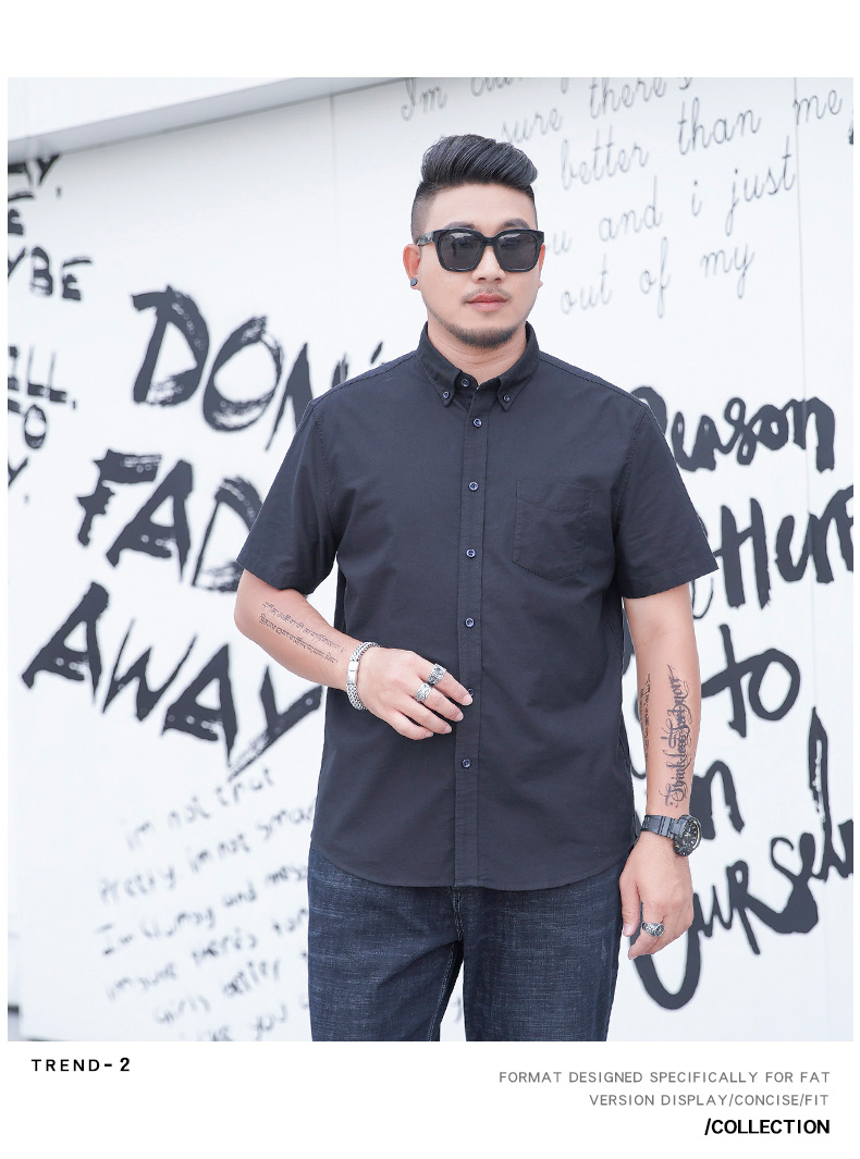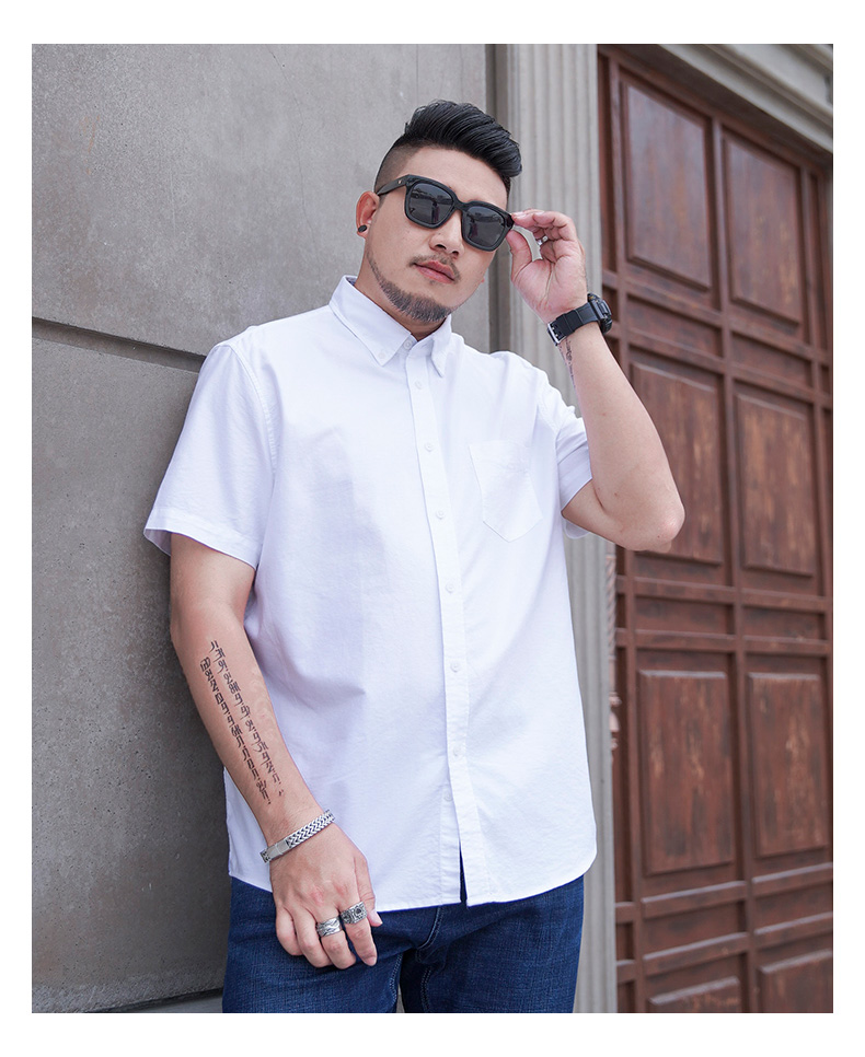 【100%棉】【新款DM】大依优型大码男装短袖衬衫牛津纺加肥加大半袖衬衣上衣夏季男士