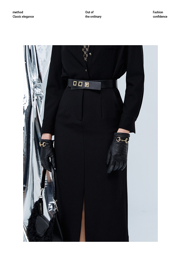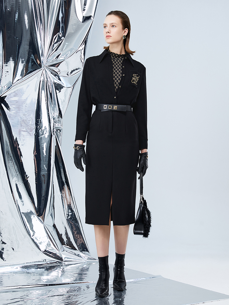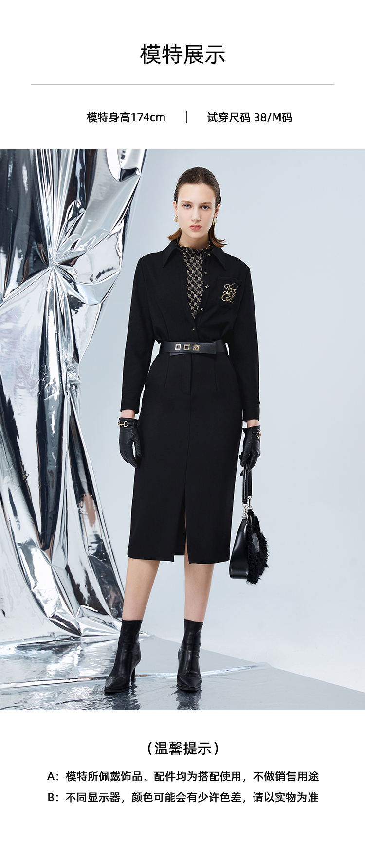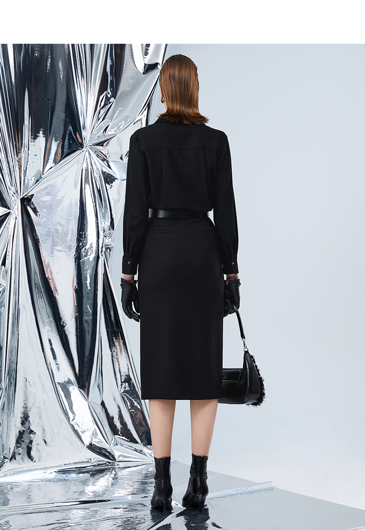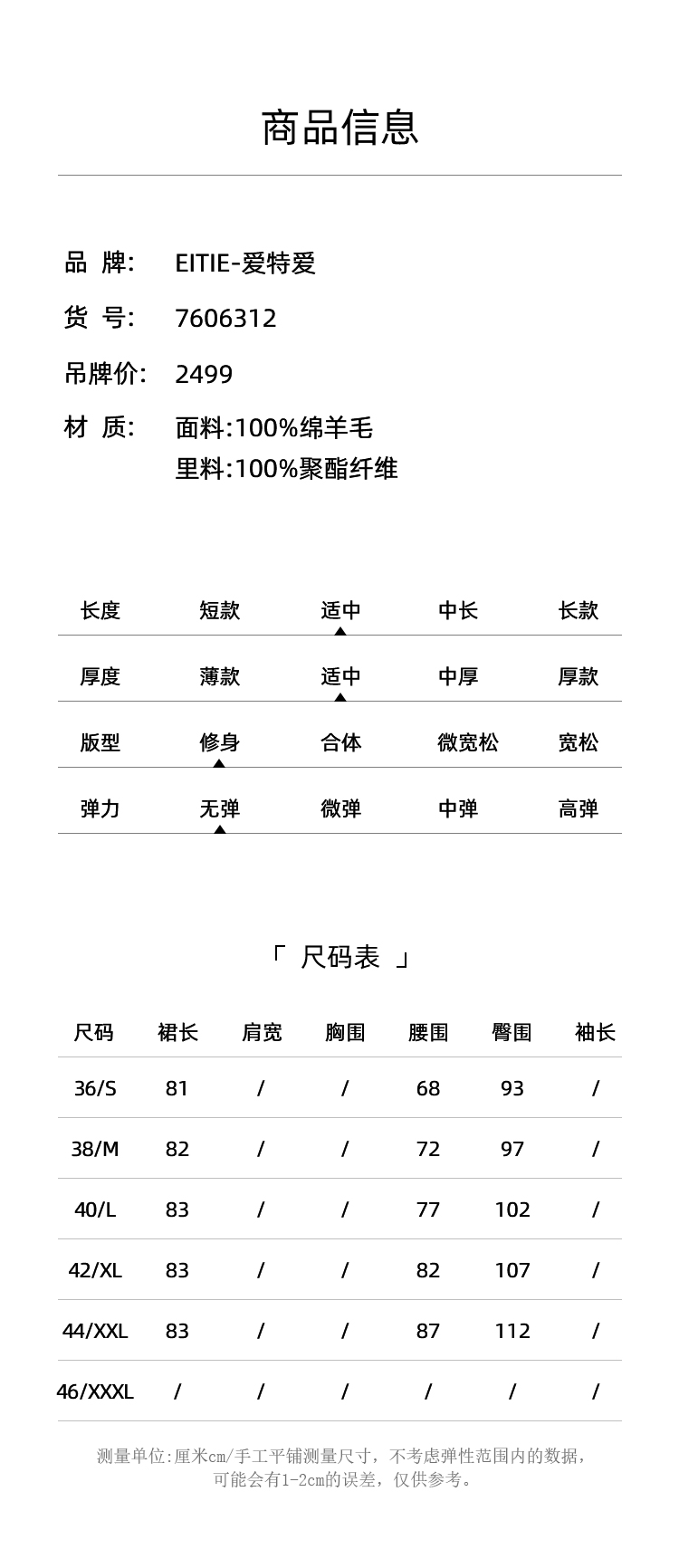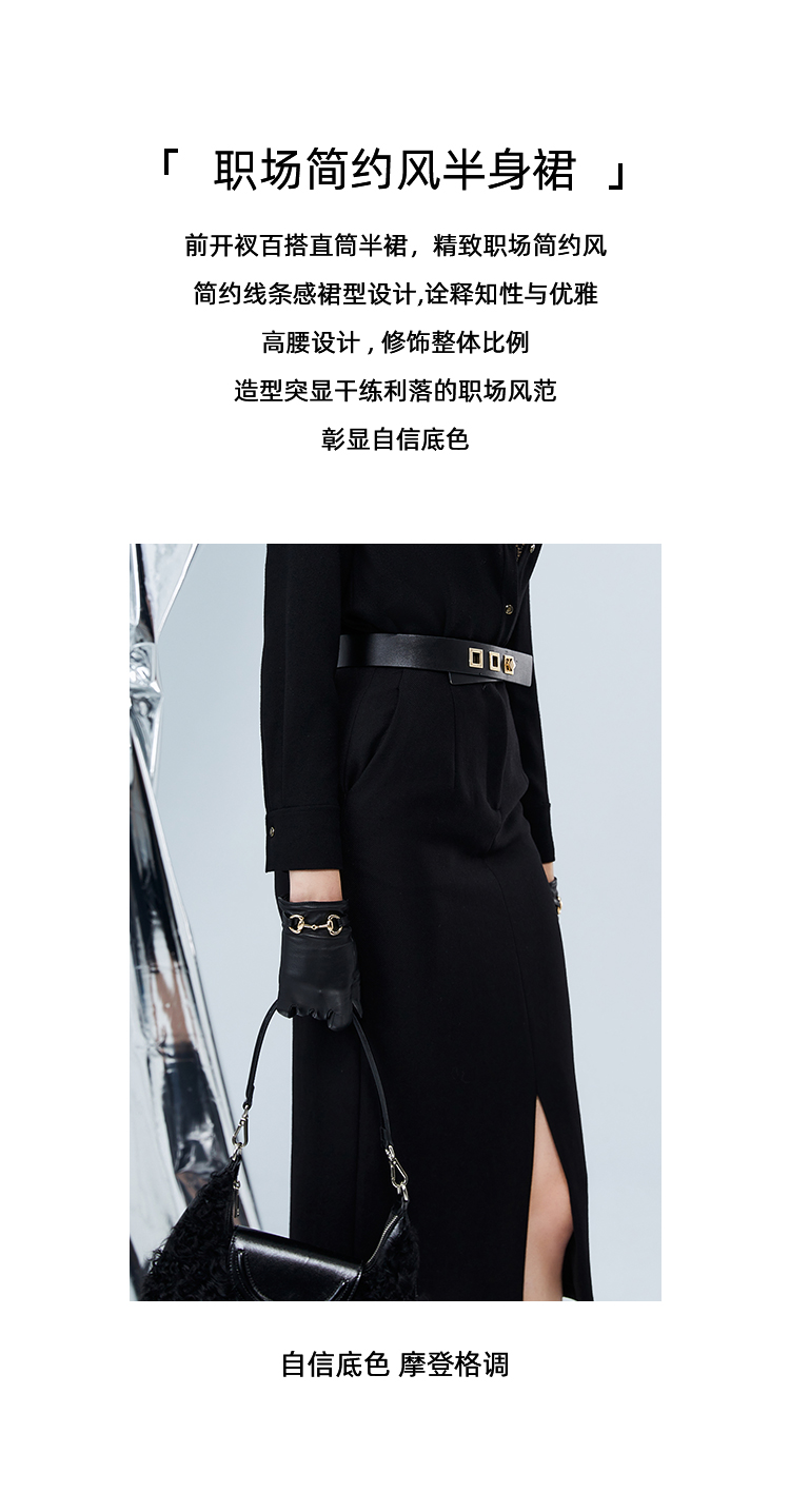 EITIE爱特爱冬季新款时尚气质显瘦高腰开叉半身裙7606312